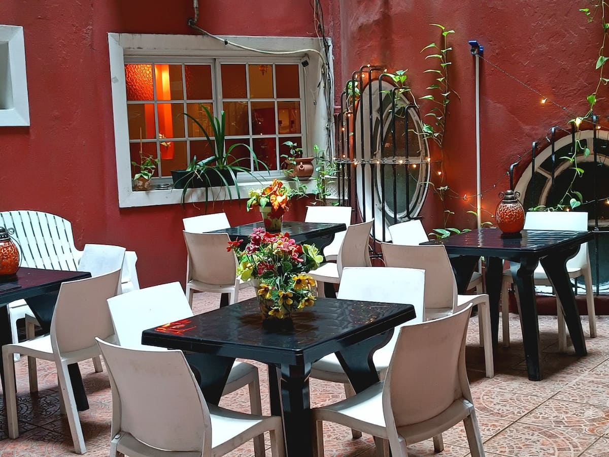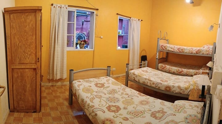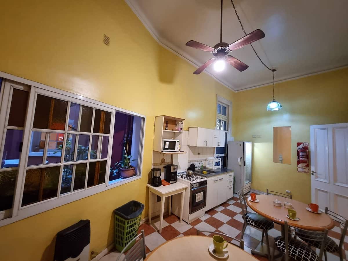 Habitación compartida en un cuarto de 4 camas en Hostel Estoril, con baño externo privado. Incluye WiFi y acceso a patio. Ubicación en el centro de Buenos Aires.