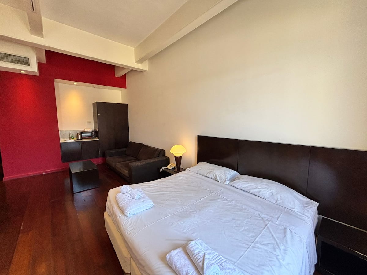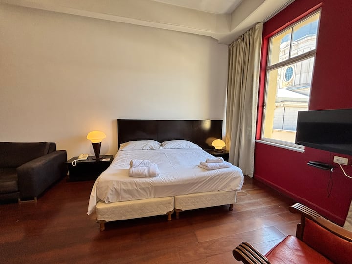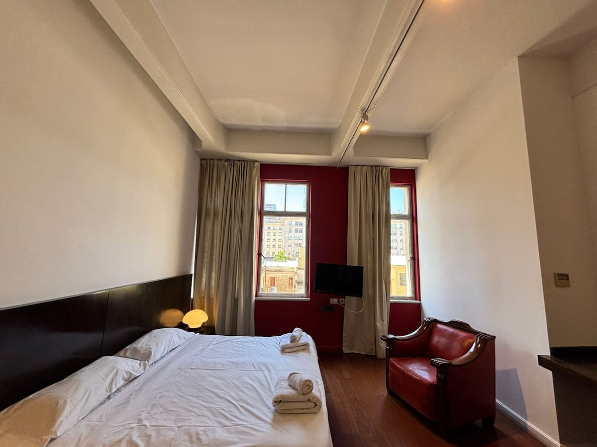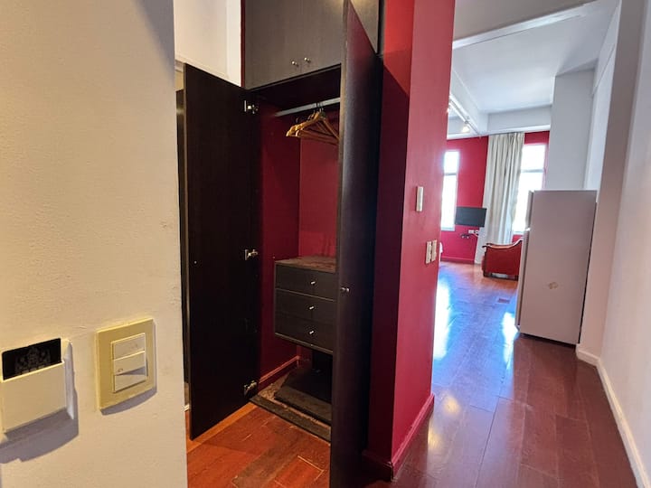 Loft en un edificio patrimonial de la Ciudad de Buenos Aires, que funcionó anteriormente como Hotel Moreno. Está a 2 cuadras de Plaza de Mayo y Casa Rosada, y a media cuadra de Calle Defensa, donde se realiza la Feria de San Telmo los domingos. El acceso al departamento se realiza mediante una APP (TT lock), que se descarga en el teléfono, y el ingreso al edificio también se efectúa con la app; se requiere batería suficiente. El alquiler es por la unidad completa y admite hasta 2 personas. Para