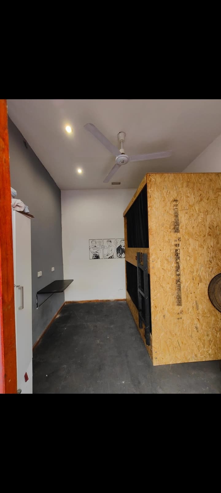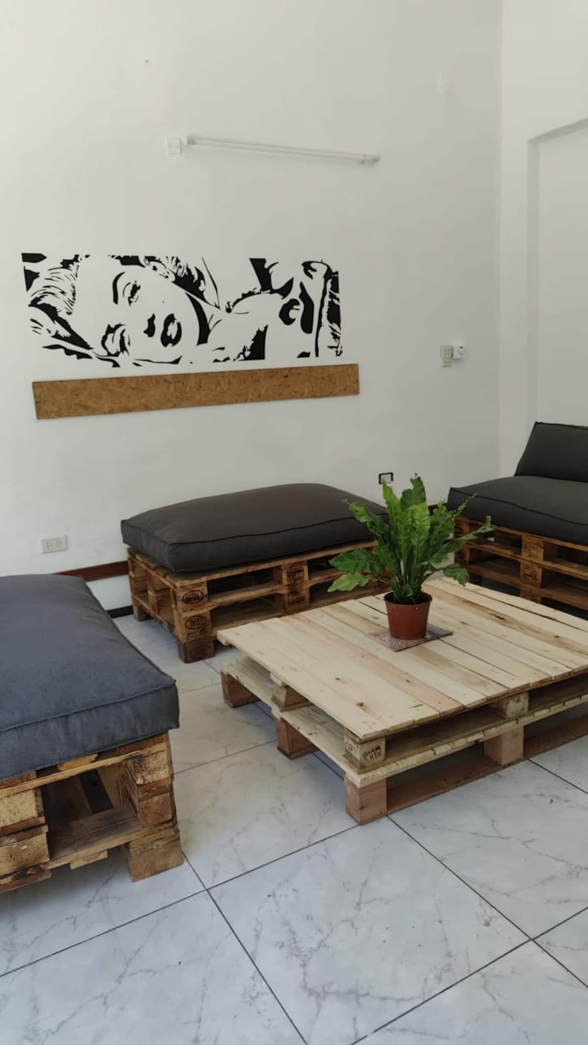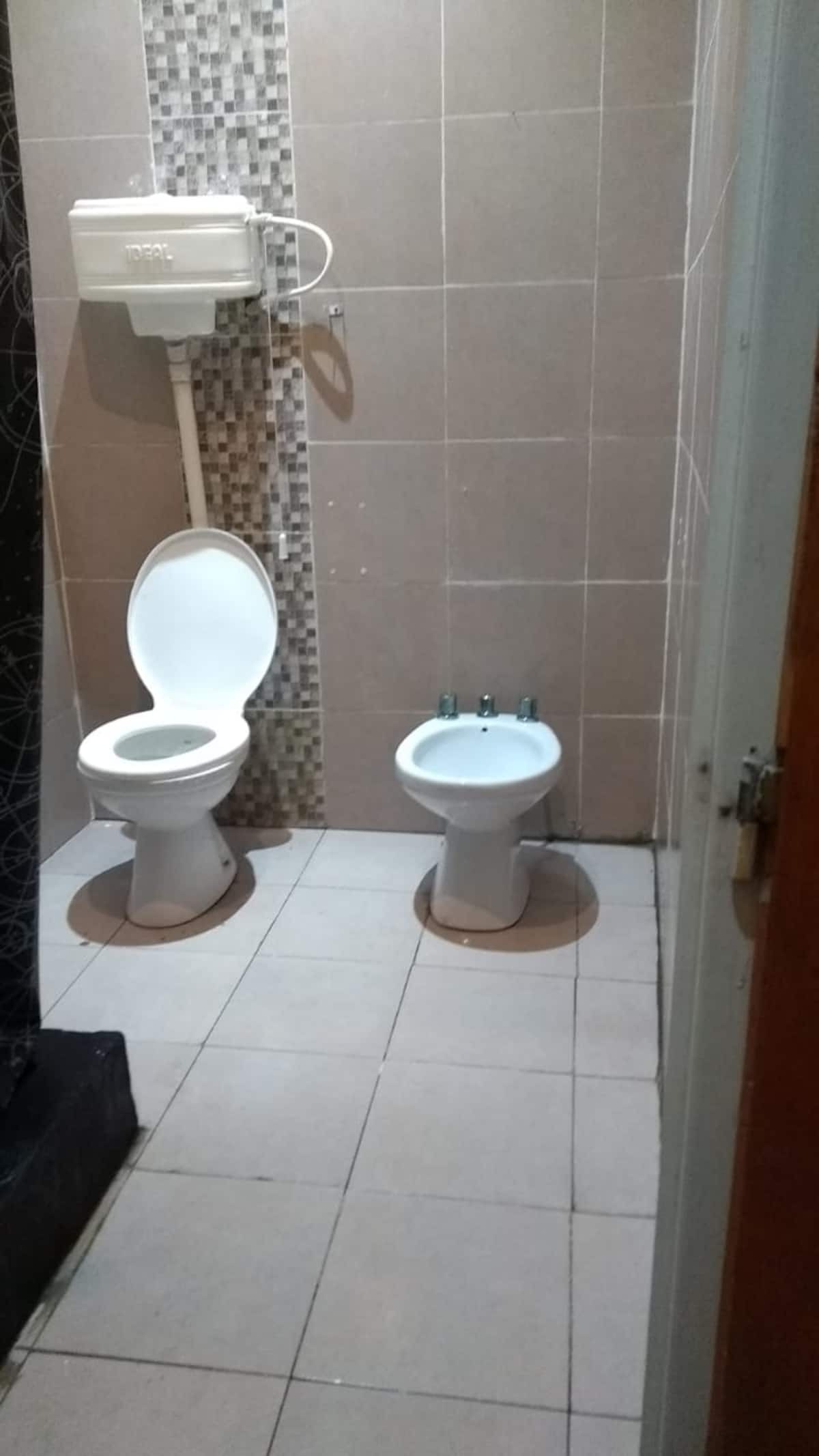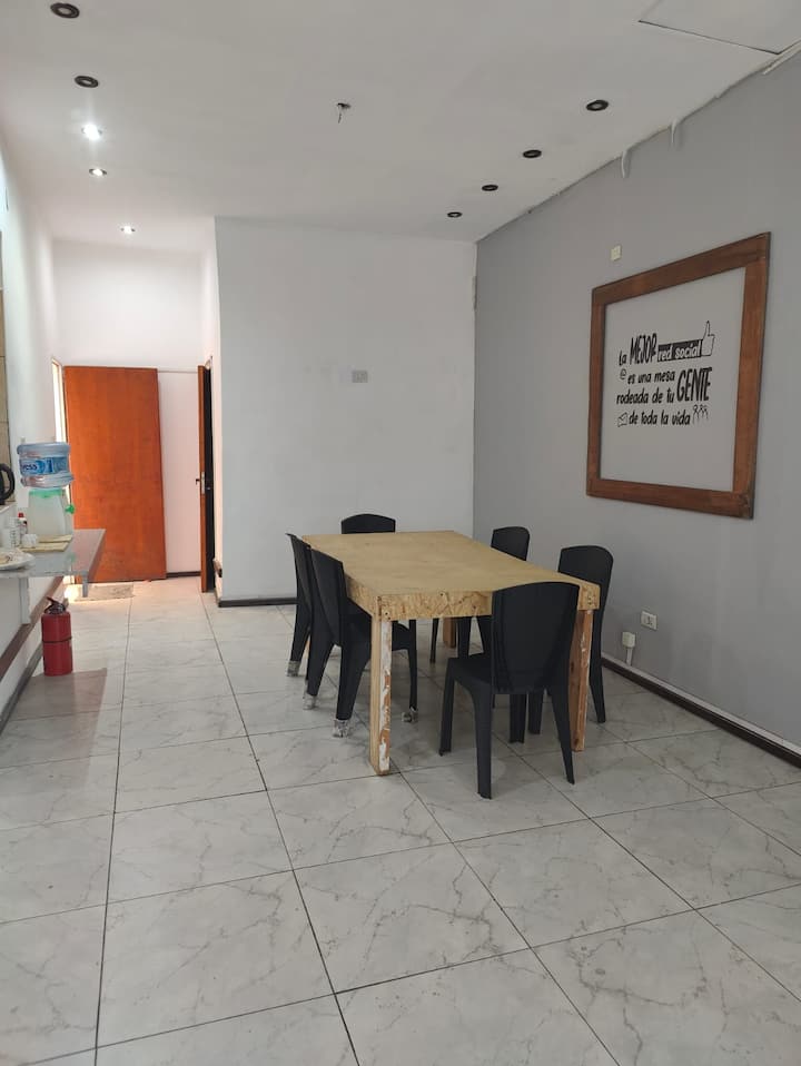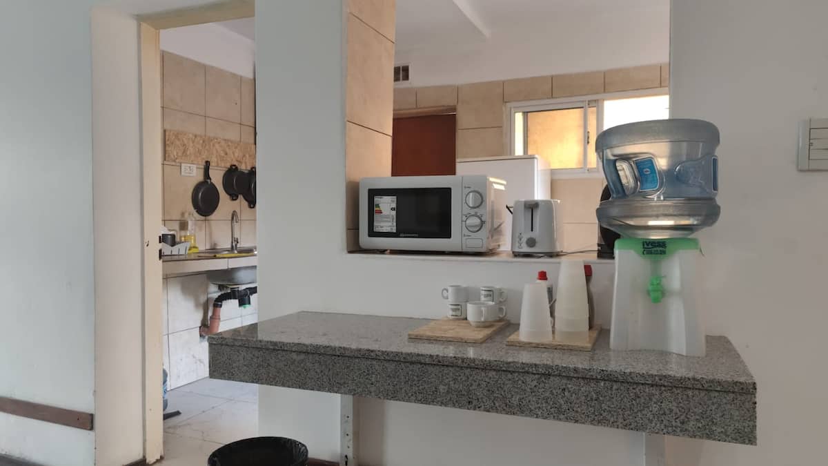 Ambiente en Monserrat con cama doble y baño compartido. Incluye placard y ventilador. El alojamiento ofrece Wi‑Fi de alta velocidad.