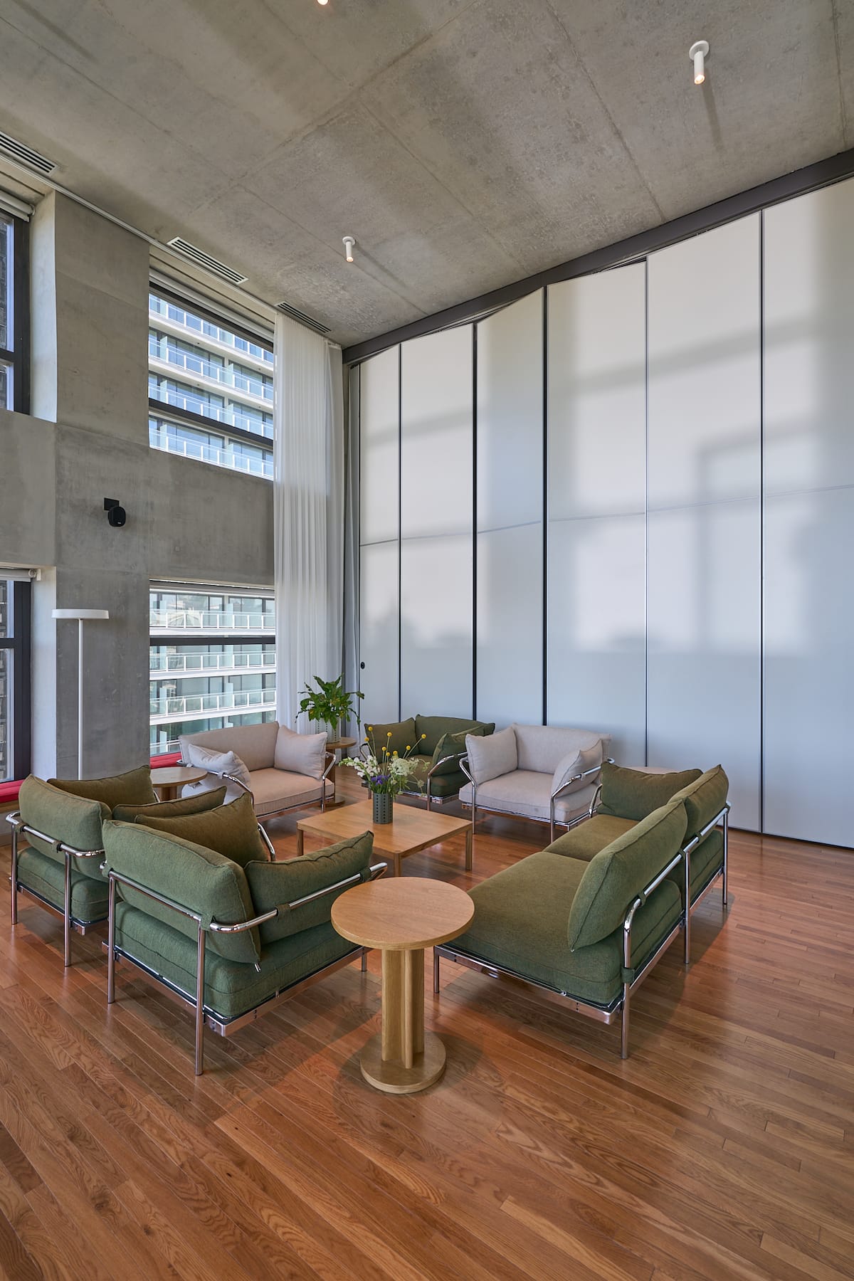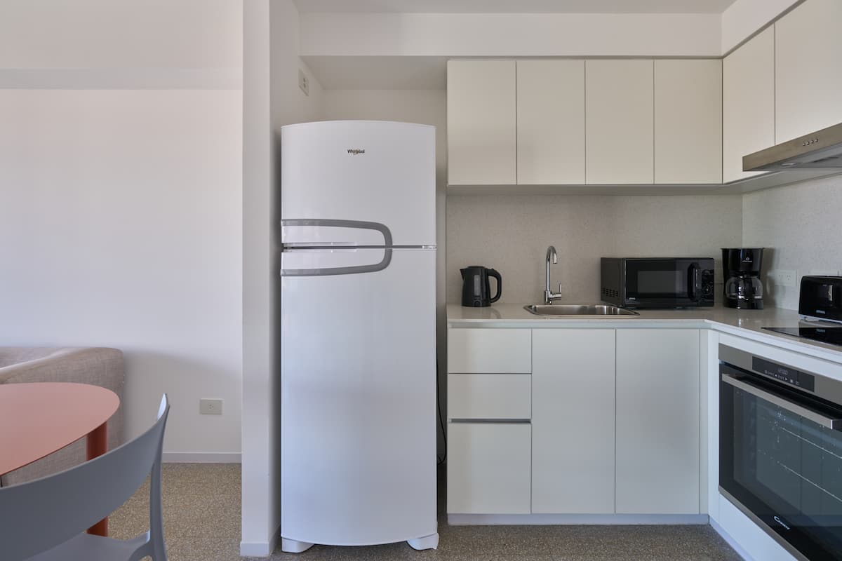 Monoambiente en edificio de 38 pisos en Huergo 475, con balcón privado y vistas abiertas. Incluye cocina integrada y baño completo. El edificio cuenta con pileta climatizada, gimnasio, coworking, SUM, áreas con parrilla y terrazas con vista 360°.