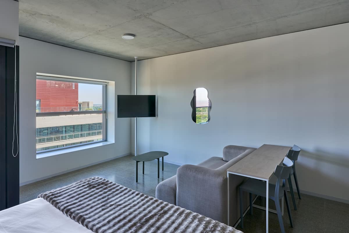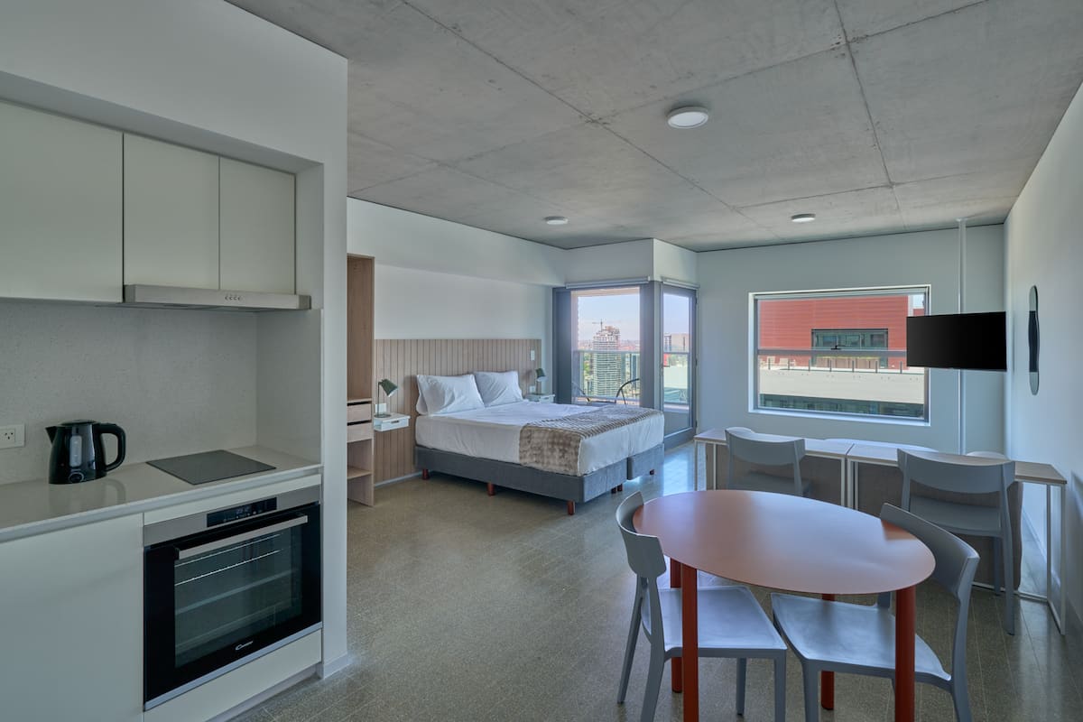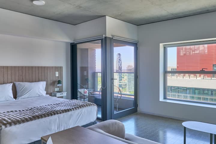 Departamento monoambiente en edificio de 38 pisos en Monserrat, con balcón privado y vista abierta. Tiene cocina integrada y 1 baño completo. El edificio ofrece pileta climatizada, gimnasio, espacio coworking, áreas de parrilla y terrazas en la azotea con vistas de 360°, además de sala de usos múltiples. Ubicado sobre Huergo, a distancia cercana de Puerto Madero y San Telmo.