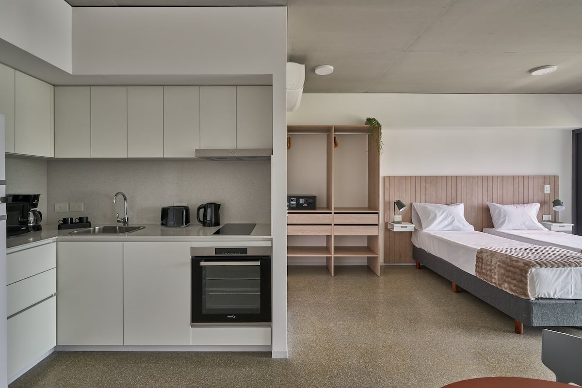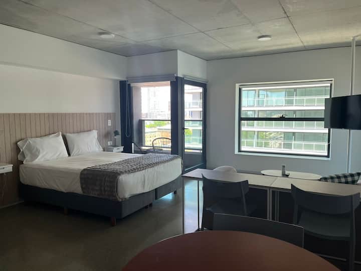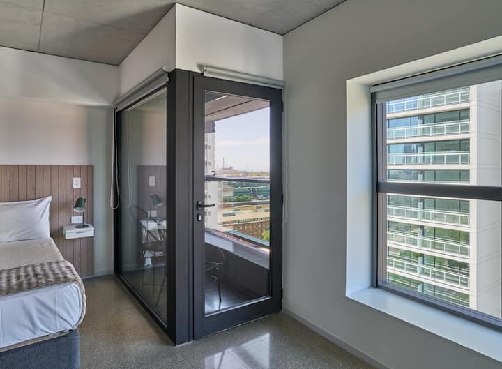 Monoambiente en el edificio Huergo 475, en Monserrat. Cuenta con cocina integrada, 1 baño completo y balcón privado con vista abierta. El edificio tiene acceso a pileta climatizada, gimnasio, coworking, SUM, parrillas y terrazas con vistas 360°.