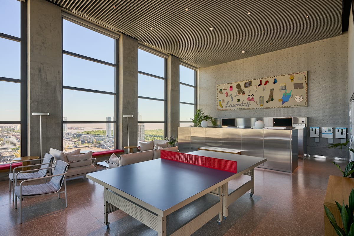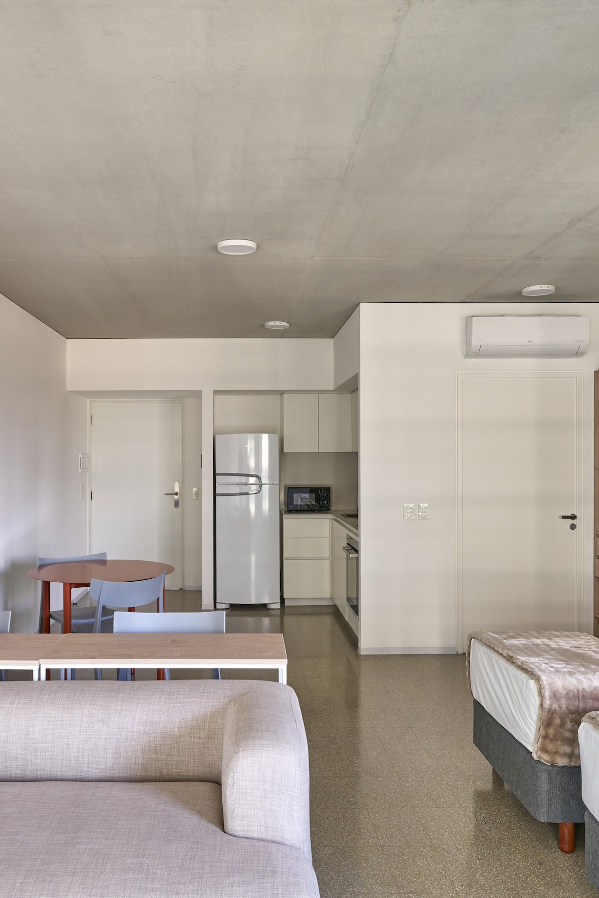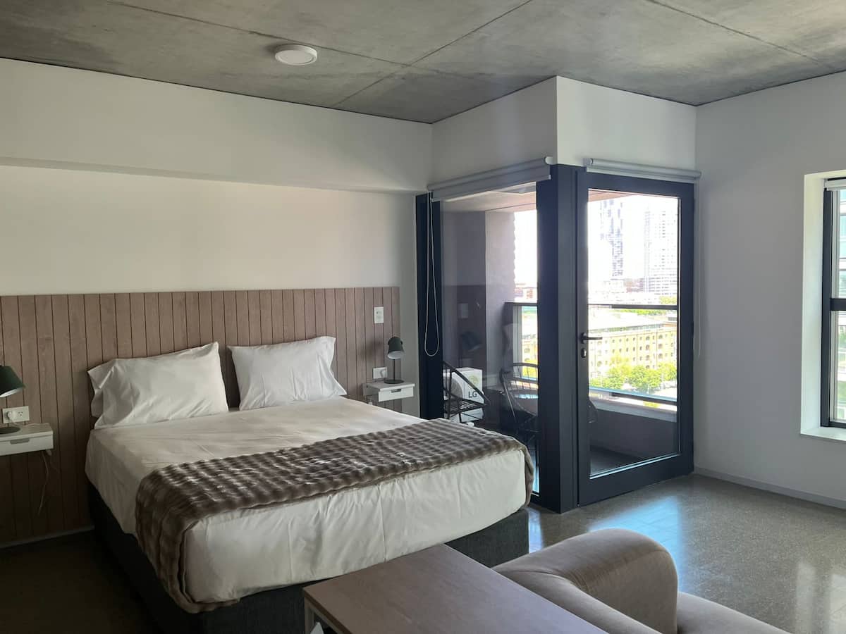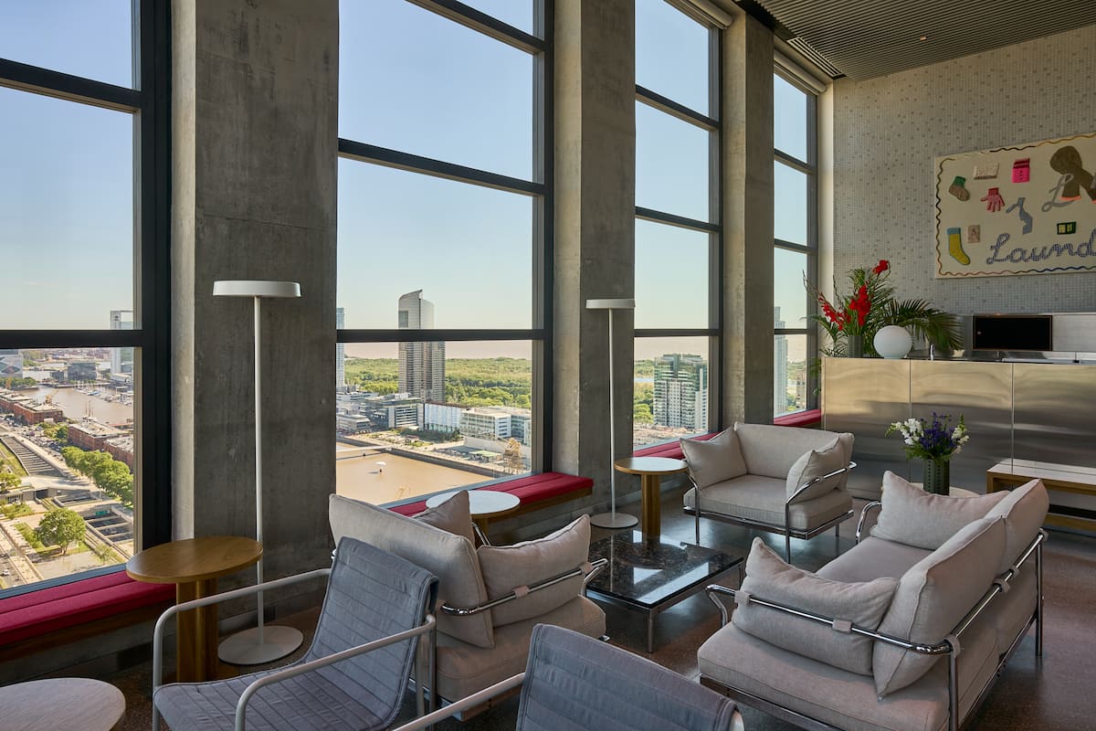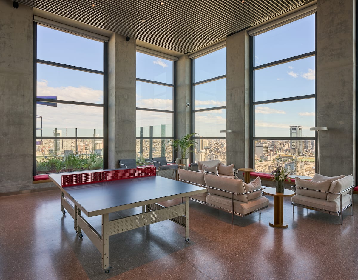 Monoambiente en el edificio Huergo 475, con balcón privado y vistas abiertas. Tiene cocina integrada y baño completo. El edificio cuenta con piscina climatizada, gimnasio, coworking, SUM, parrillas y terrazas con vistas 360°.