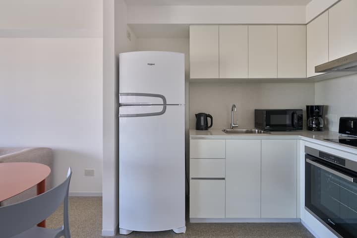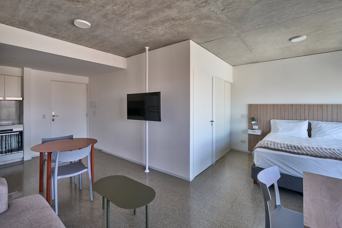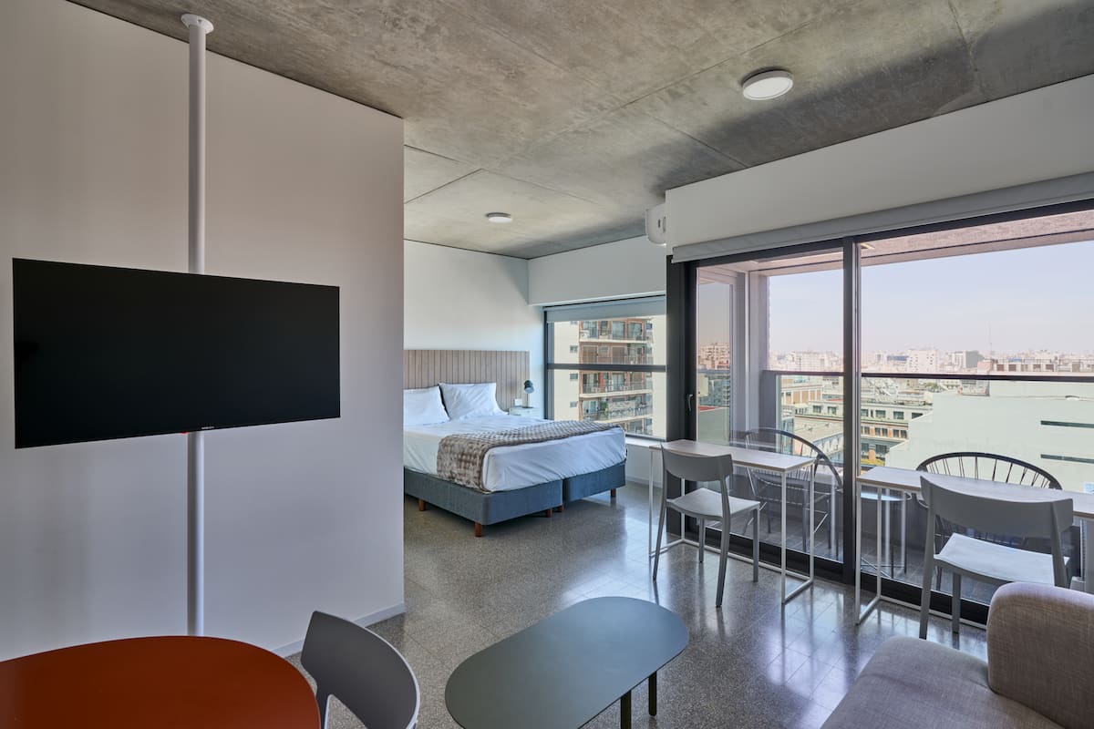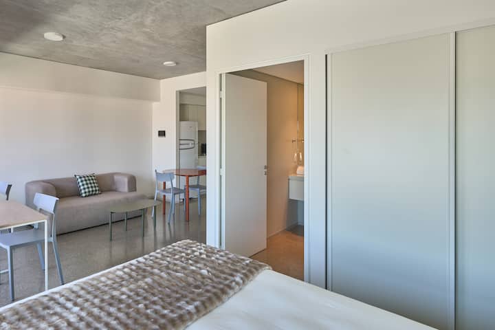 Monoambiente en un edificio de 38 pisos. Cuenta con cocina integrada, 1 baño completo y balcón privado con vista abierta. El edificio ofrece pileta, gimnasio, coworking y terrazas en la azotea con vista 360°.