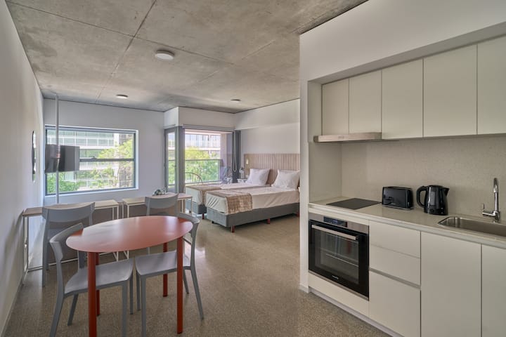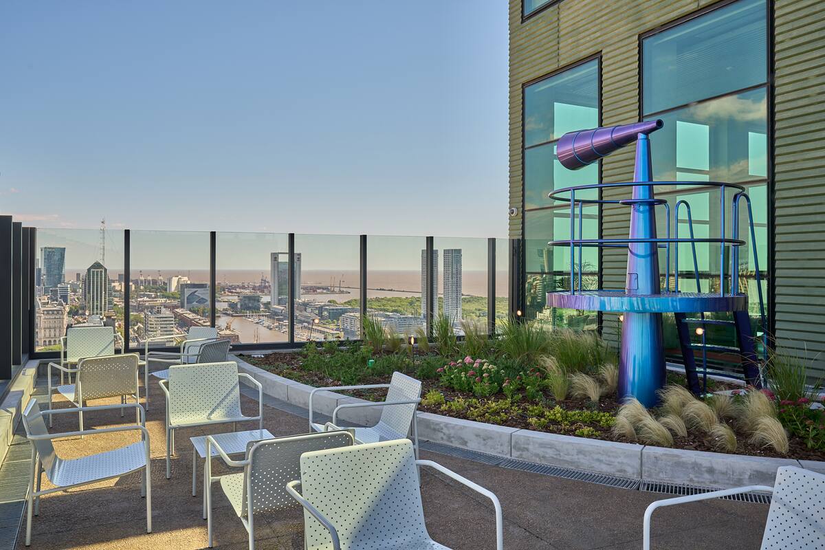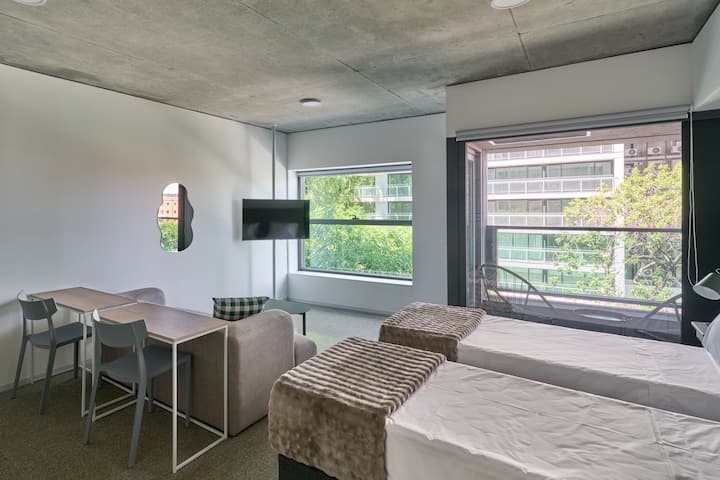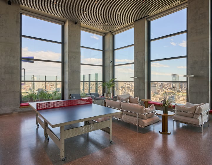 Departamento tipo monoambiente en Monserrat. Cuenta con cocina integrada, 1 baño completo y balcón privado con vista abierta. Está en un edificio de 38 pisos con acceso a pileta, gimnasio, coworking y terrazas en la azotea con vistas de 360°. Por razones de seguridad, no se permite el ingreso de visitantes; el acceso al edificio es para huéspedes.