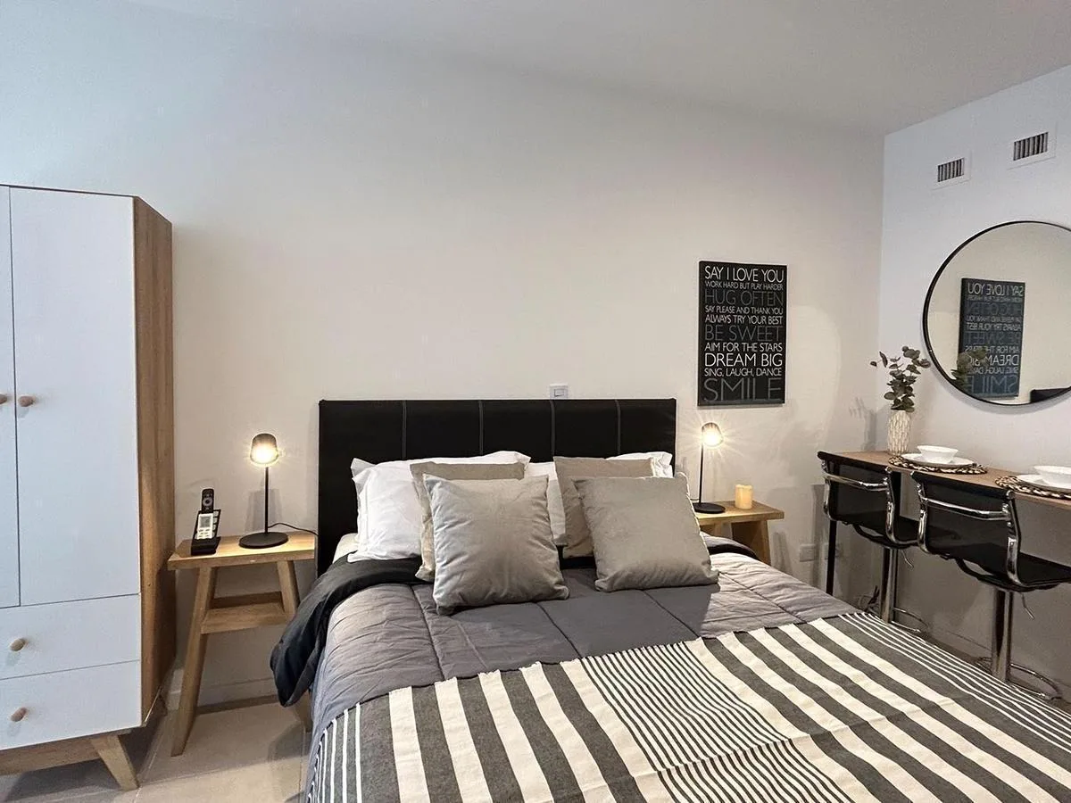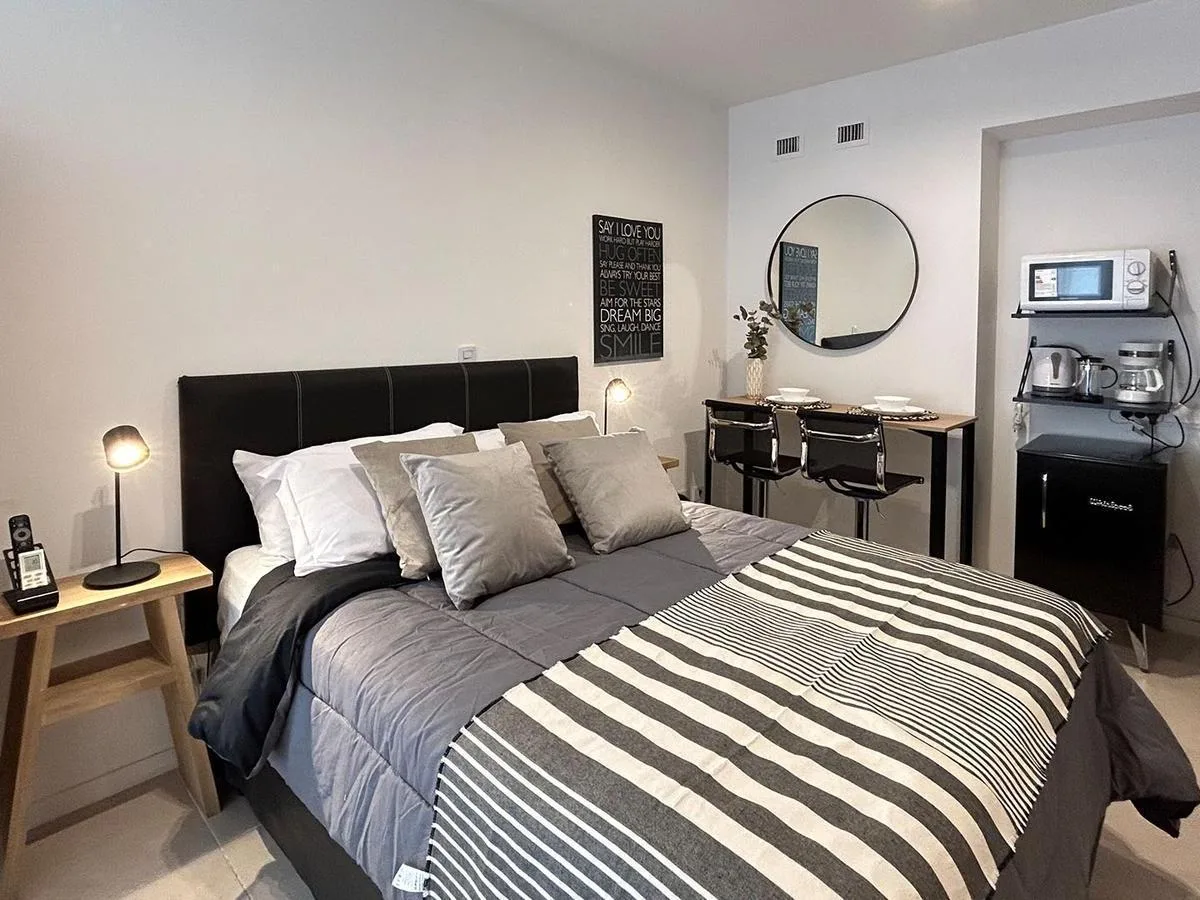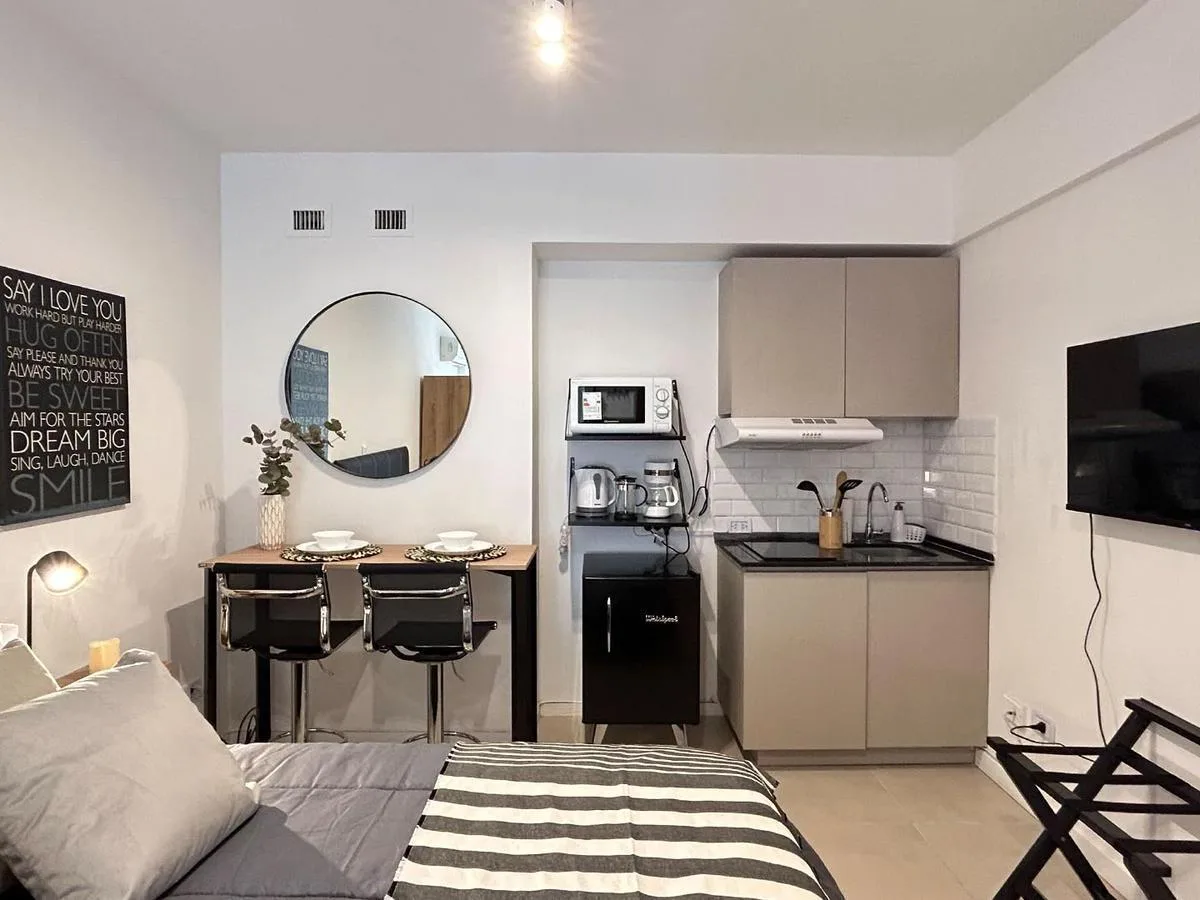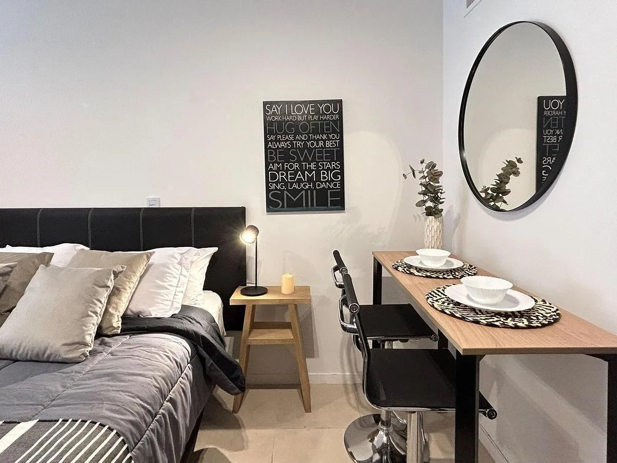 Monoambiente de 1 ambiente en Monserrat, 6to piso. Cuenta con área de descanso con cama queen, living integrado, cocina completa y baño completo. Incluye un espacio con escritorio para home office. El edificio tiene laundry, terraza con pileta y espacio de coworking en la recepción. Se ubica en Balcarce 379.
