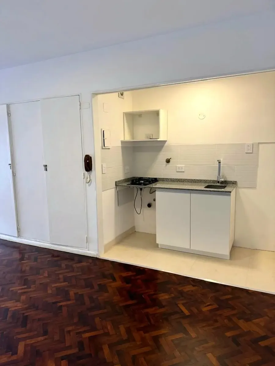Monoambiente de 1 ambiente al frente en Quesada, entre Moldes y Amenábar, hecho a nuevo. Cuenta con pisos de parquet, profusión de placards, cocina integrada con hornallas a gas y conexión para lavarropas, y baño completo con ventana. Tiene balcón amplio con vista a la calle Quesada. Servicios individuales con agua caliente por calefón y calefacción por estufa a gas; cocina eléctrica. Expensas bajas.