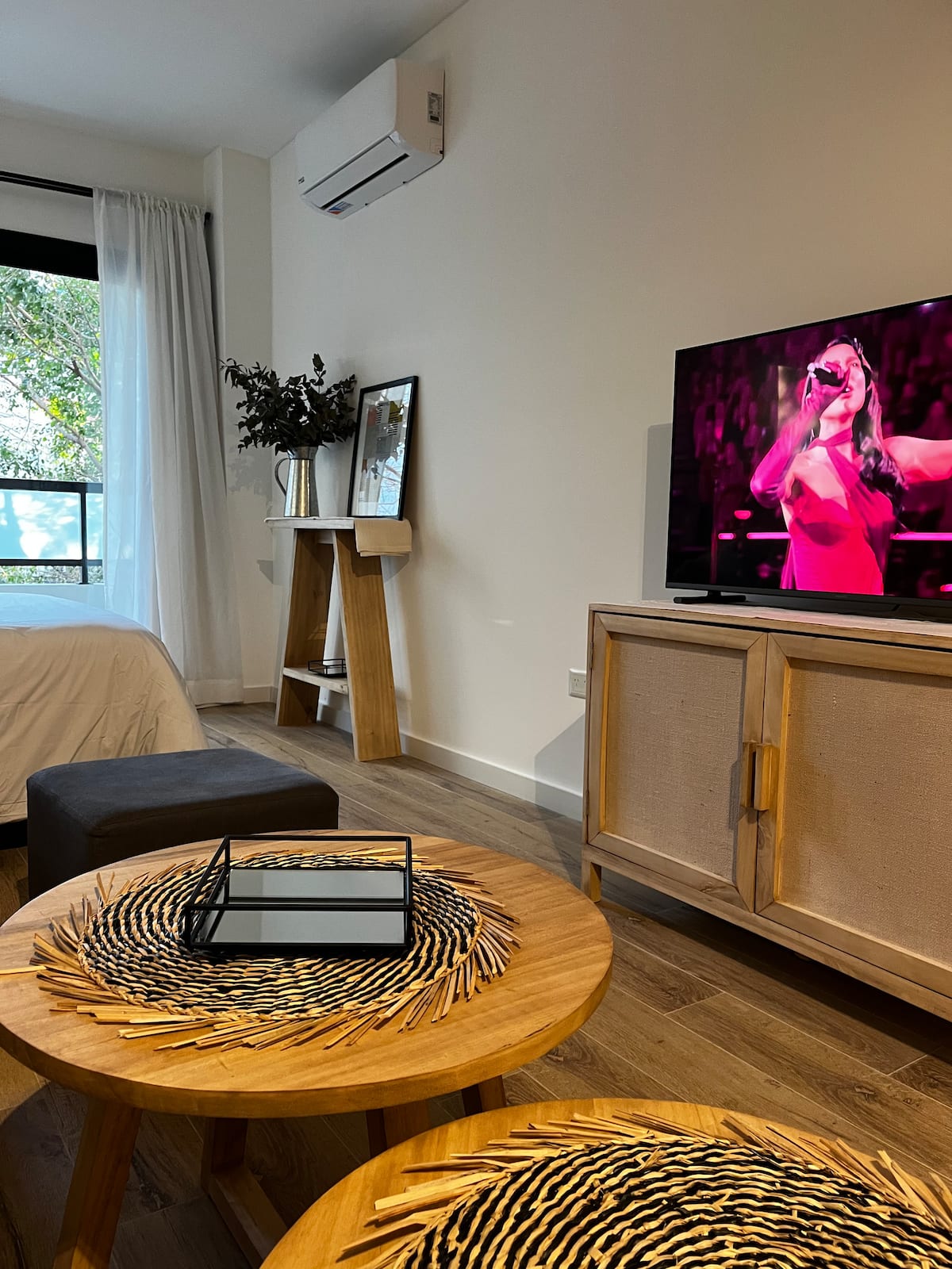 Monoambiente de 42 m² en Núñez. Cuenta con cocina totalmente equipada, cama doble, aire acondicionado y Smart TV con WiFi de alta velocidad. Tiene baño completo y balcón. El departamento es a estrenar, con estreno en agosto de 2025, y seguridad en el hall de entrada. Incluye lavasecarropas y provisión de sábanas y toallas, además de artículos de tocador. La limpieza y el recambio de ropa de cama no están incluidos durante la estadía.