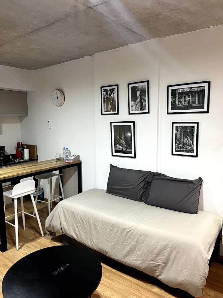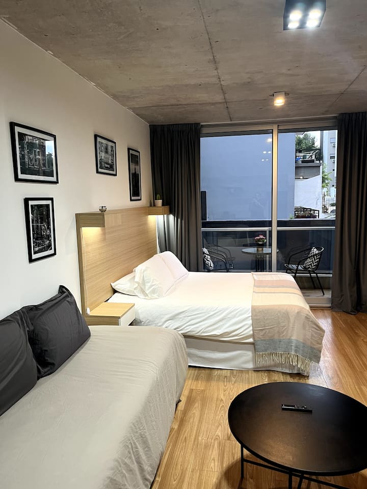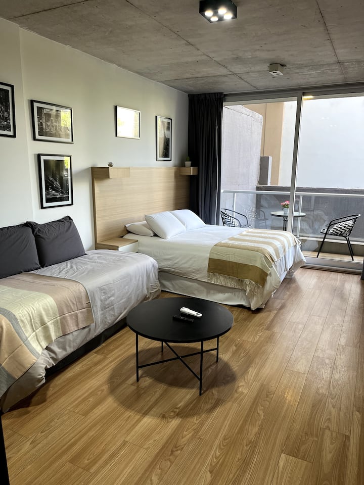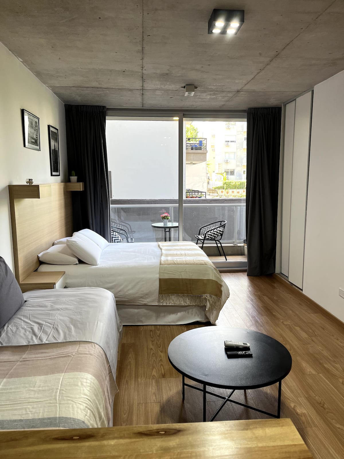 Departamento en Palermo con 2 camas: 1 cama doble y 1 cama individual, con capacidad para 3 personas. Cuenta con Smart TV de 50 pulgadas e internet. El ingreso es a las 15 h y la salida a las 11 h; se prohíbe fumar dentro del edificio, el departamento y las áreas de uso común.