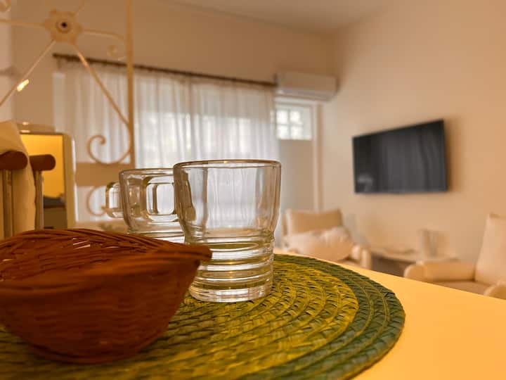 Monoambiente de estreno en Palermo. La unidad tiene cama de 2 plazas, ropa de cama, toallas, heladera, cocina, microondas, cafetera, pava eléctrica, vajilla y Wi-Fi. Incluye Smart TV y canales por cable. No dispone de cochera propia; hay un estacionamiento a 100 metros en Av. Cerviño al 3500, y el servicio de lavandería se ofrece a 50 metros sobre la misma avenida.