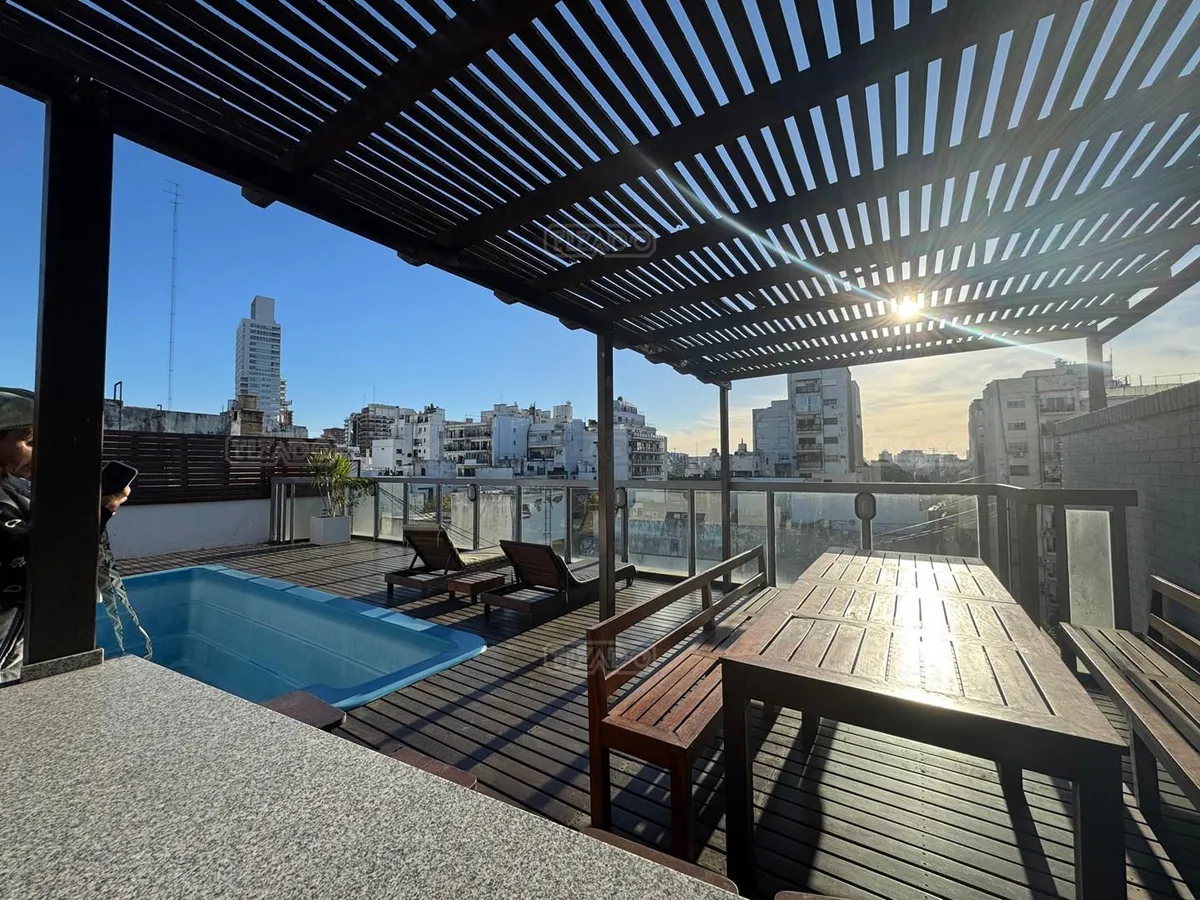 Monoambiente en Palermo, con balcón al frente. Se ubica en un edificio moderno de 10 pisos, con 4 departamentos por piso en dos cuerpos; el edificio cuenta con encargado con vivienda y seguridad 24 hs. Incluye cocina integrada con barra desayunadora, bodega, anafe y horno eléctricos, hall de distribución, baño completo con bañadera y vanitory, y vestidor con puerta corrediza. Los pisos son de madera flotante en el ambiente y de porcelanatto en el baño. El edificio dispone de gimnasio con vestuar