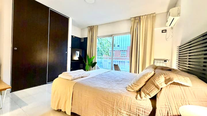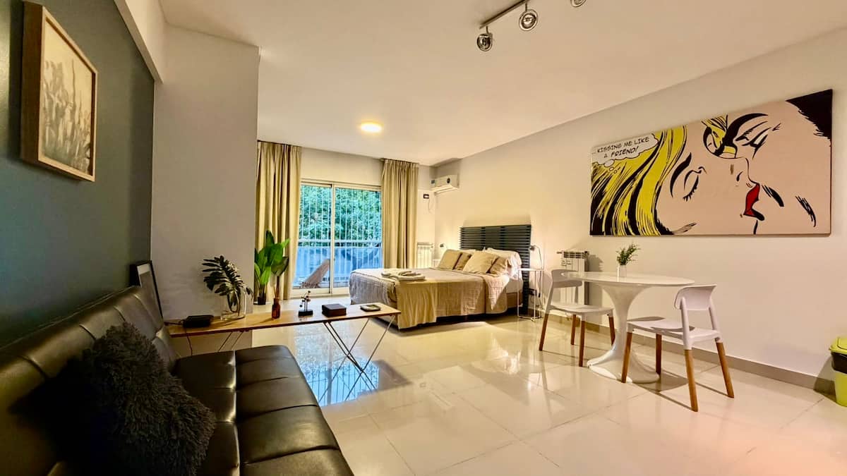 Monoambiente en Palermo. Cuenta con cama de 2 plazas y sofá cama. Cocina equipada y baño completo.