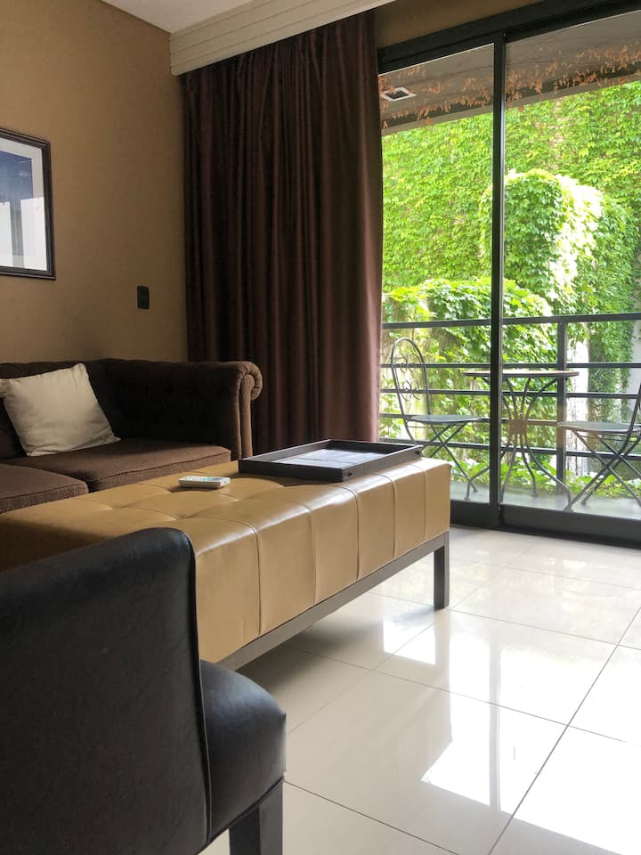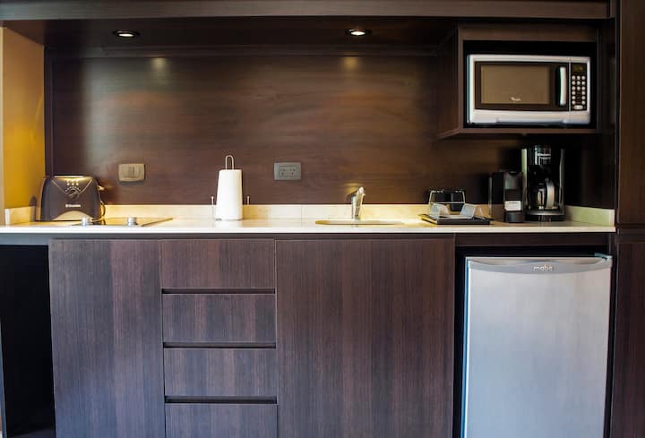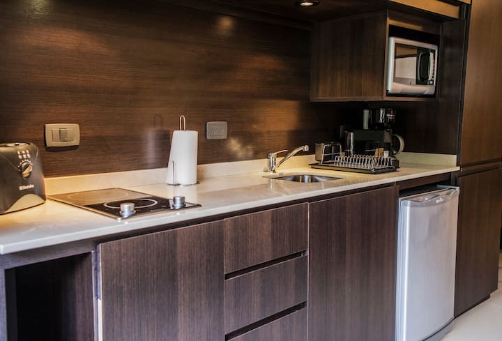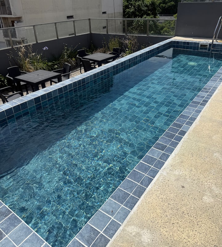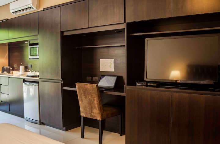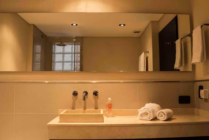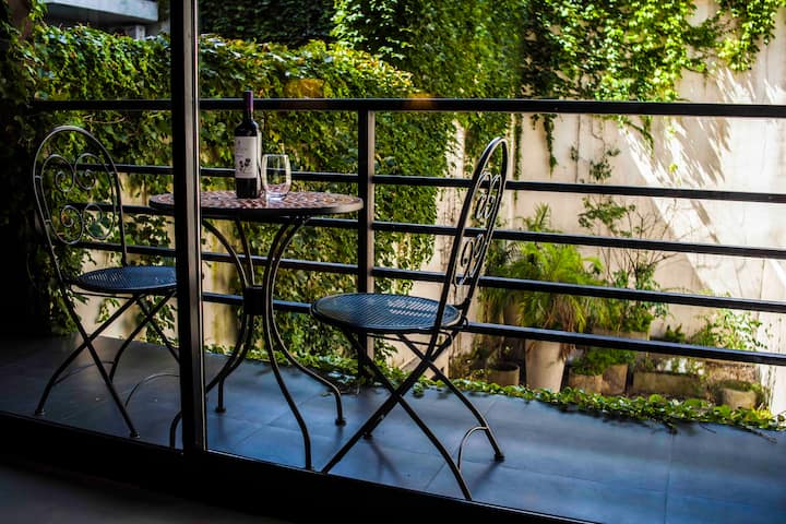 Monoambiente en Palermo con balcón, totalmente amoblado y con aire acondicionado. Cocina completa con heladera, microondas y cafetera Nespresso; conexión WiFi de 300 Mb y TV HD con Netflix, con cama king size y sofá cama. El baño cuenta con ducha y bañera con hidromasaje. El edificio dispone de pileta, gimnasio, terraza y sector de laundry.