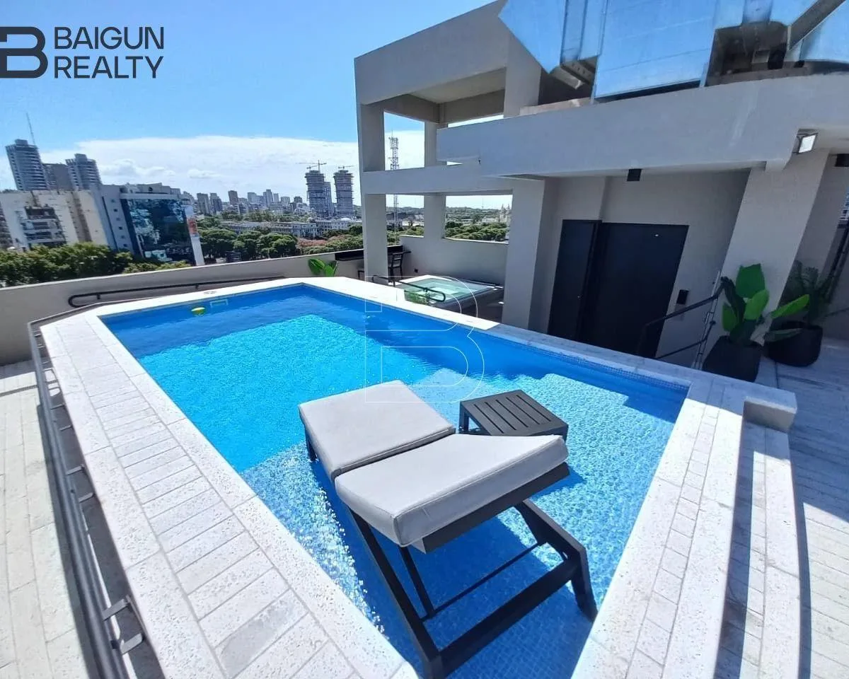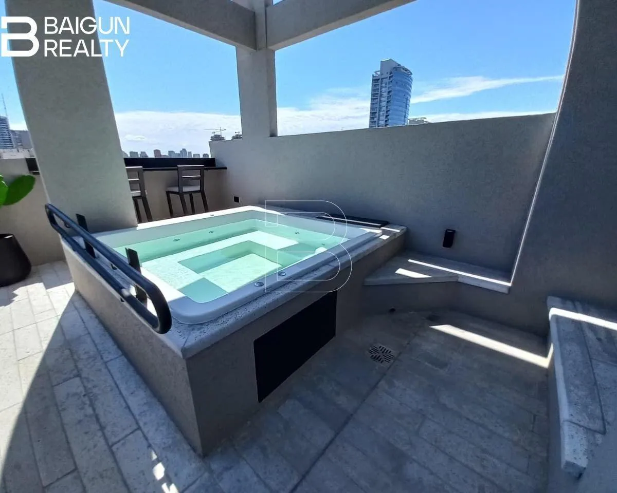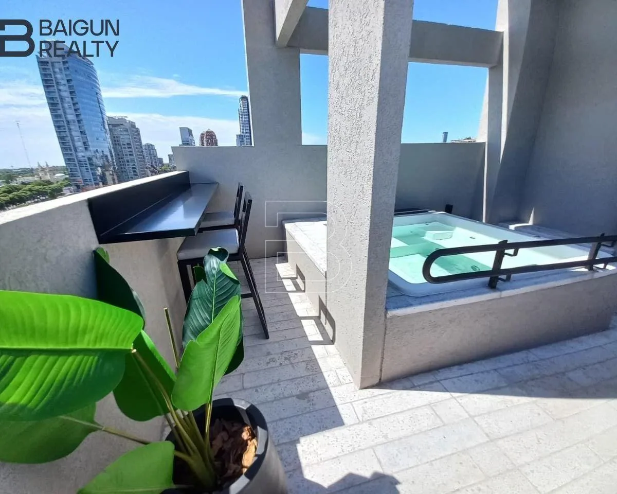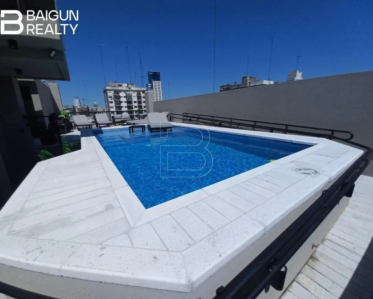 Monoambiente a estrenar de 5° piso al frente, con balcón. Cuenta con cocina incorporada con muebles bajo mesada y alacena, placard, baño completo y conexión para lavarropas. Dispone de agua caliente central, aire acondicionado frío/calor y cerradura digital. El edificio ofrece piscina y jacuzzi climatizado, solárium, SUM/lounge, parrilla, gimnasio, laundry y seguridad 24 h. Apto profesional.