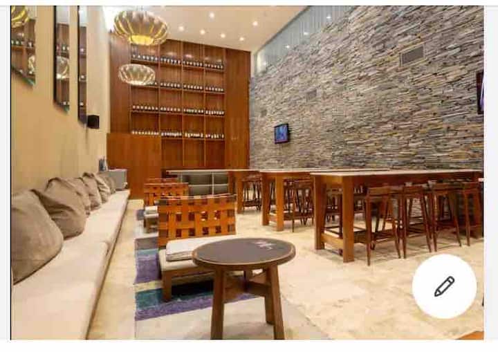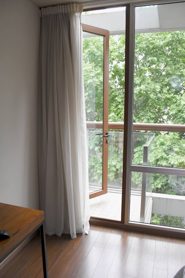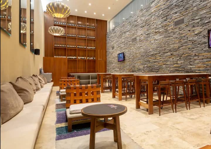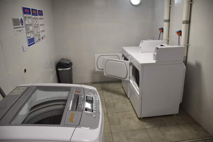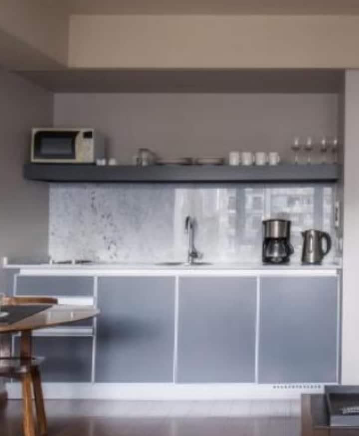 Monoambiente en Palermo Soho, en un edificio moderno. Dispone de cama Super King y cocina integrada equipada, con amenities para estancias prolongadas. El edificio cuenta con piscina en la terraza, gimnasio, áreas de coworking y seguridad 24 hs; también hay lavandería 24 hs con lavarropas y secarropas. La recova/parking está a una cuadra y media y no está incluido en el alquiler.
