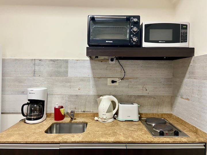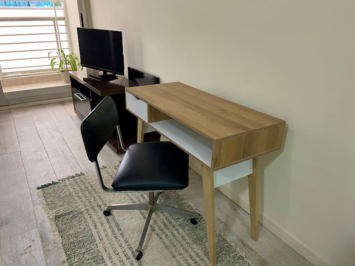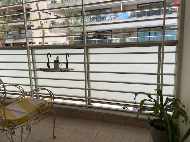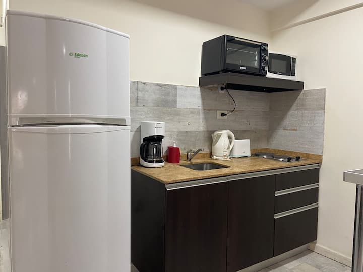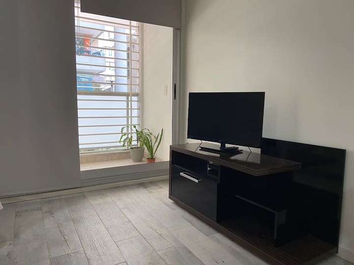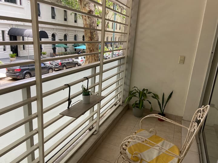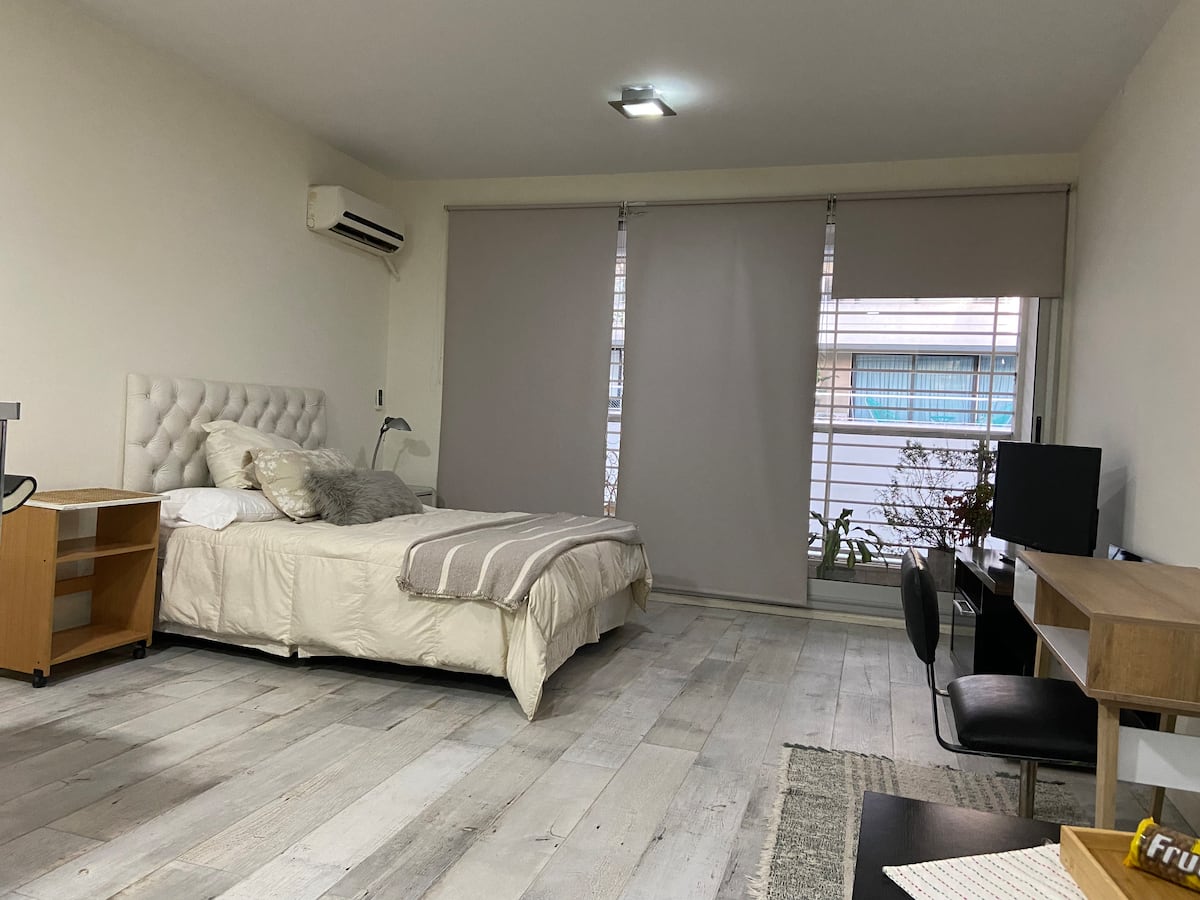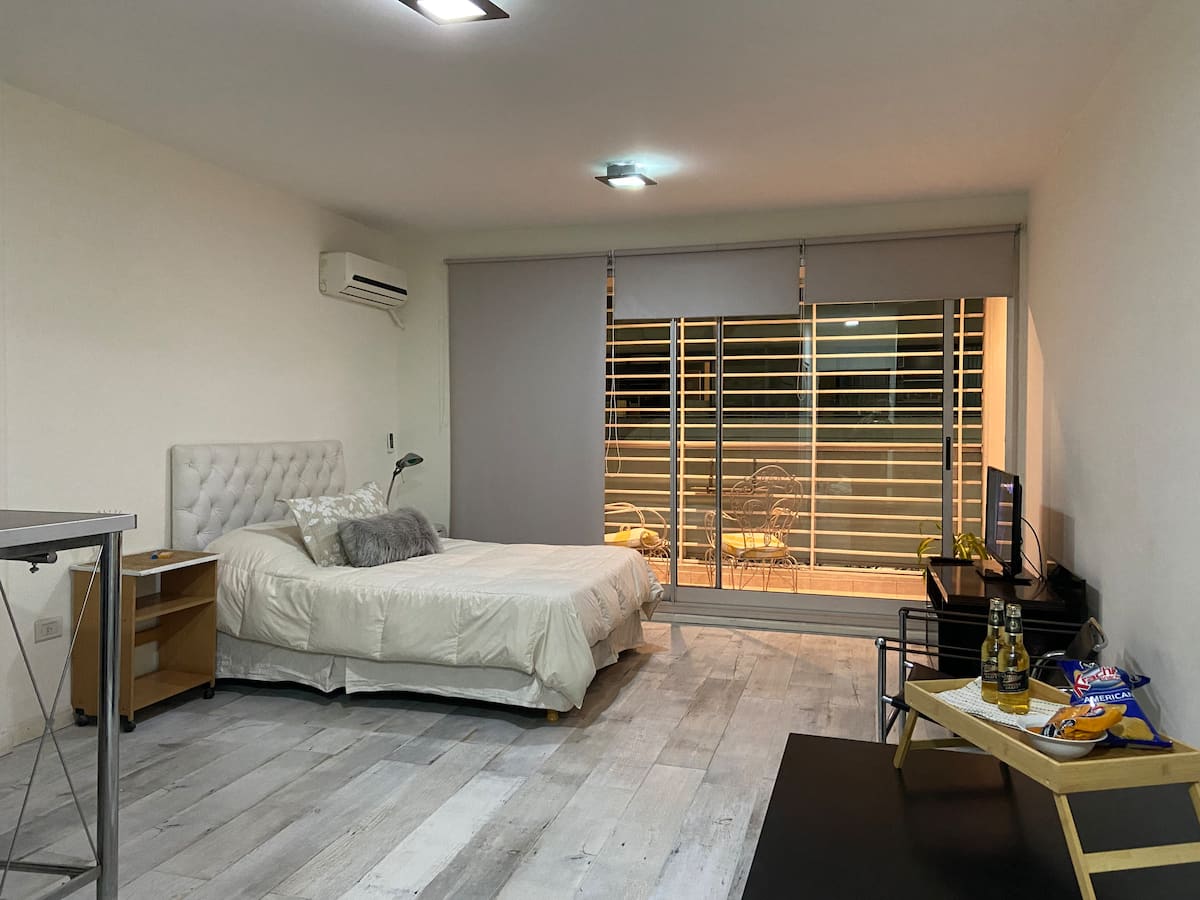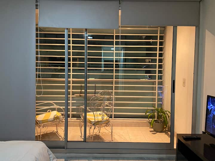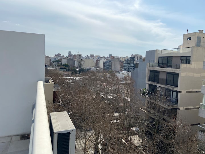 Departamento monoambiente en Palermo, en 1er piso. El edificio cuenta con lavandería, terraza y pileta. El monoambiente tiene cama doble, cocina completa, baño privado y balcón propio. Incluye conexión Wi-Fi.