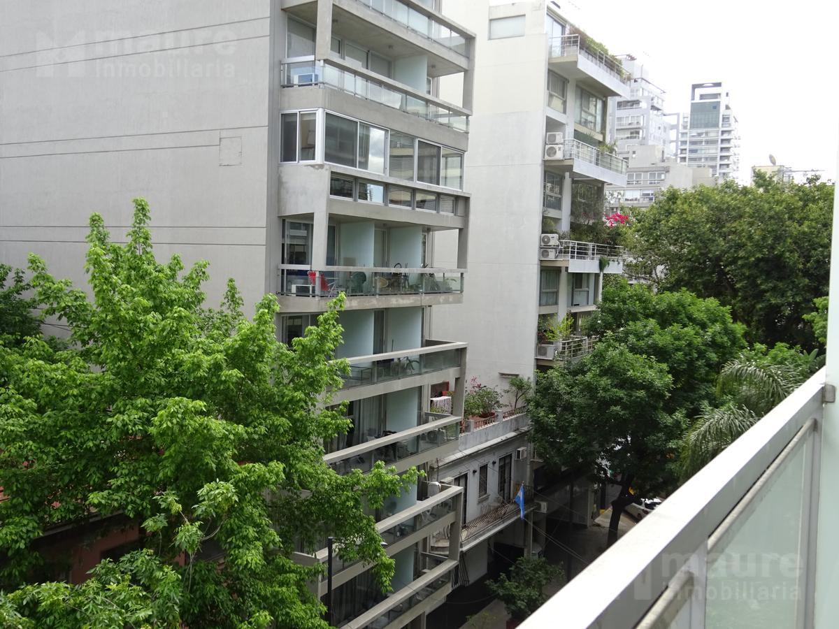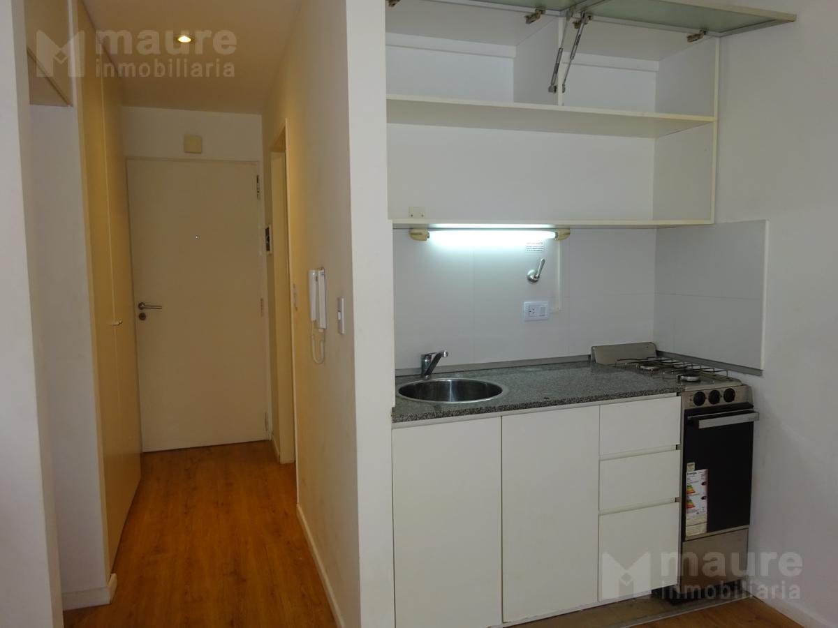 Monoambiente al frente de un edificio en esquina, con balcón y placard. Cocina integrada al ambiente con barra con rueditas; agua caliente central y calefacción individual. Aire acondicionado frío/calor, placard y blackout en ventana; edificio con piscina, solarium en terraza, SUM con parrilla y laundry en el subsuelo. Expensas con vencimiento en marzo e informe: ABL $22.566 (marzo); AYSA a cargo del inquilino. No se aceptan mascotas.