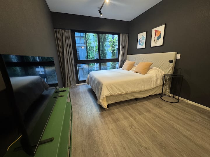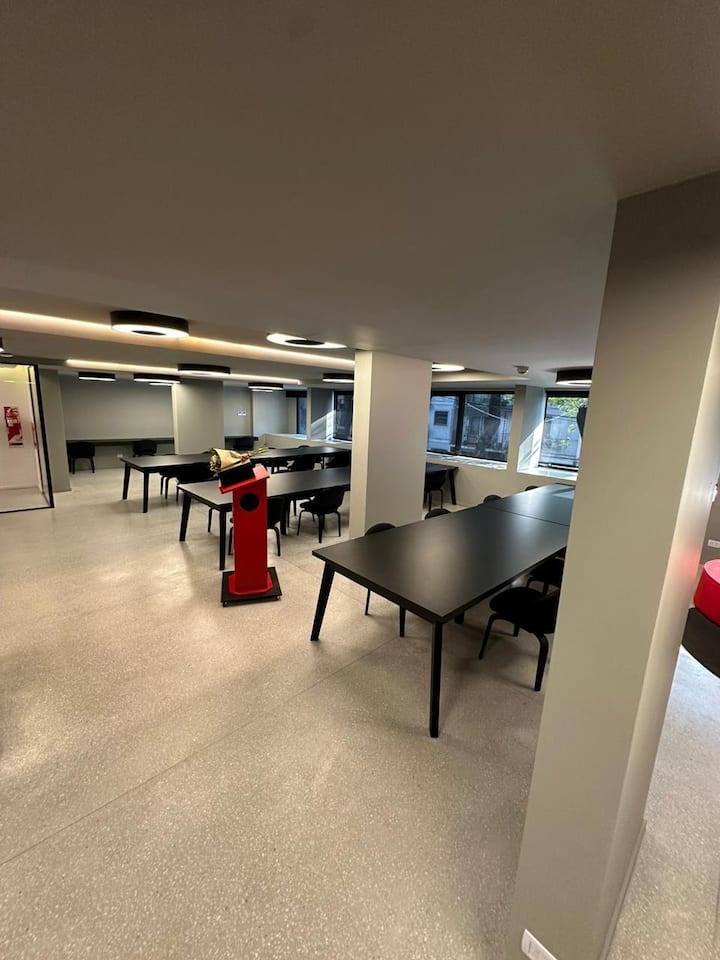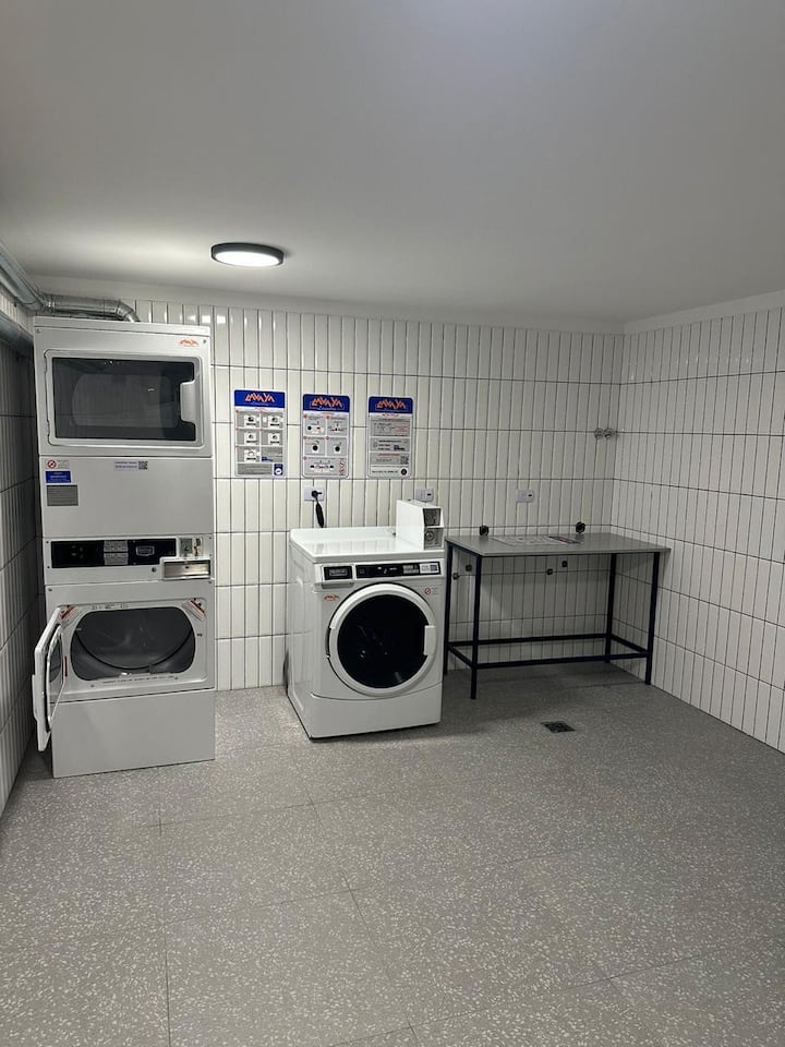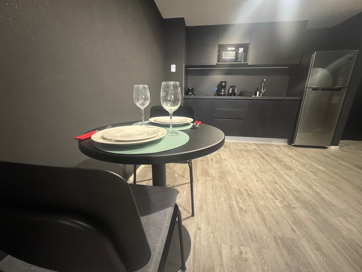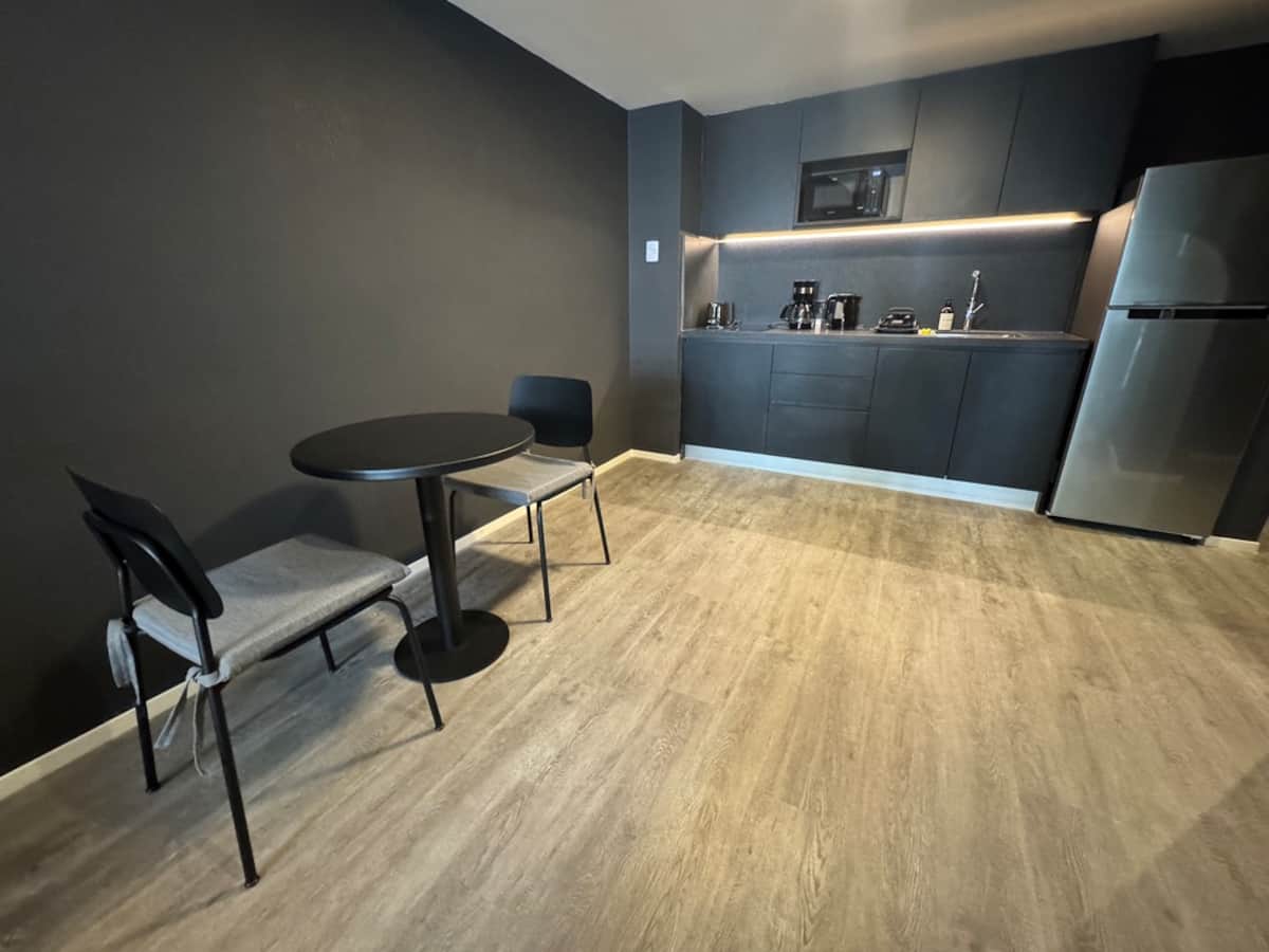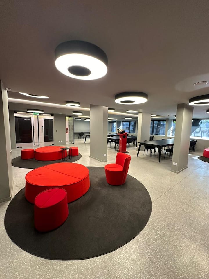 Monoambiente amoblado en Palermo, entre Palermo Hollywood y Colegiales. Cuenta con cama doble, placard, 1 baño completo y cocina equipada con heladera, vajilla y electrodomésticos. Incluye aire acondicionado y calefacción central con control individual, TV y WiFi, cerradura digital y equipamiento de cocina como cafetera Nespresso, tostadora y pava eléctrica. El edificio dispone de pileta semiolímpica climatizada, pileta exterior, gimnasio de 500 m², área de co-working, espacios de yoga y meditac
