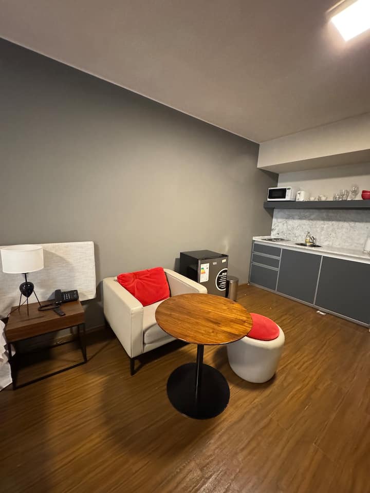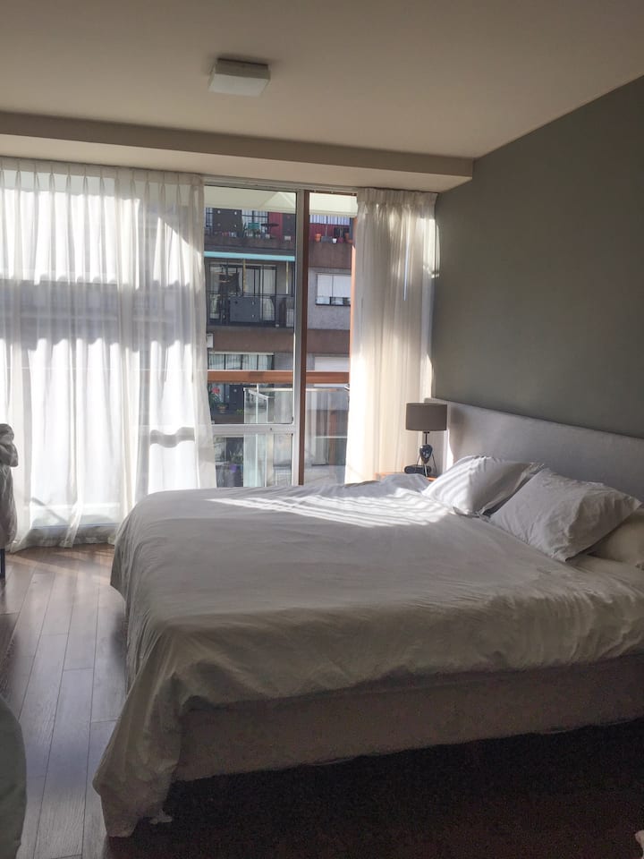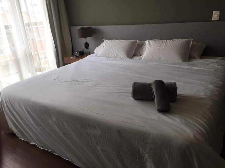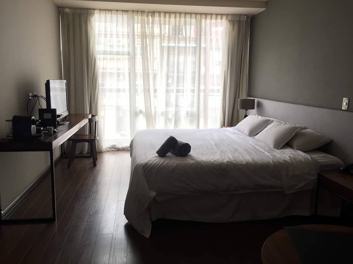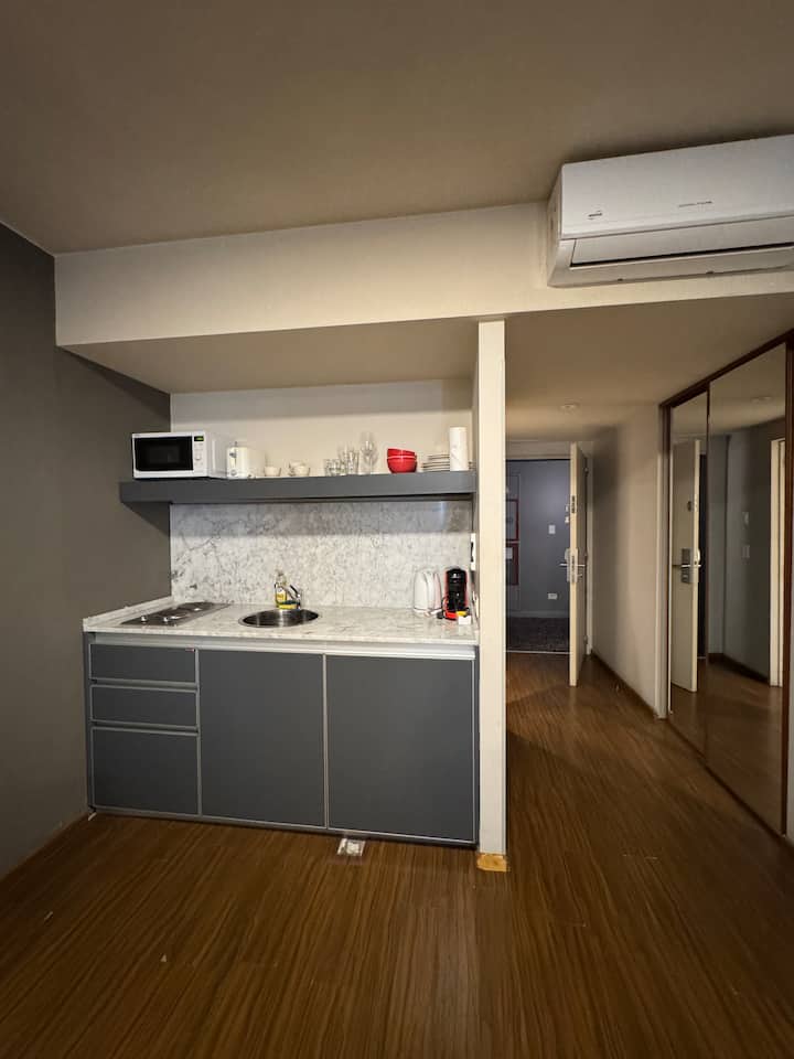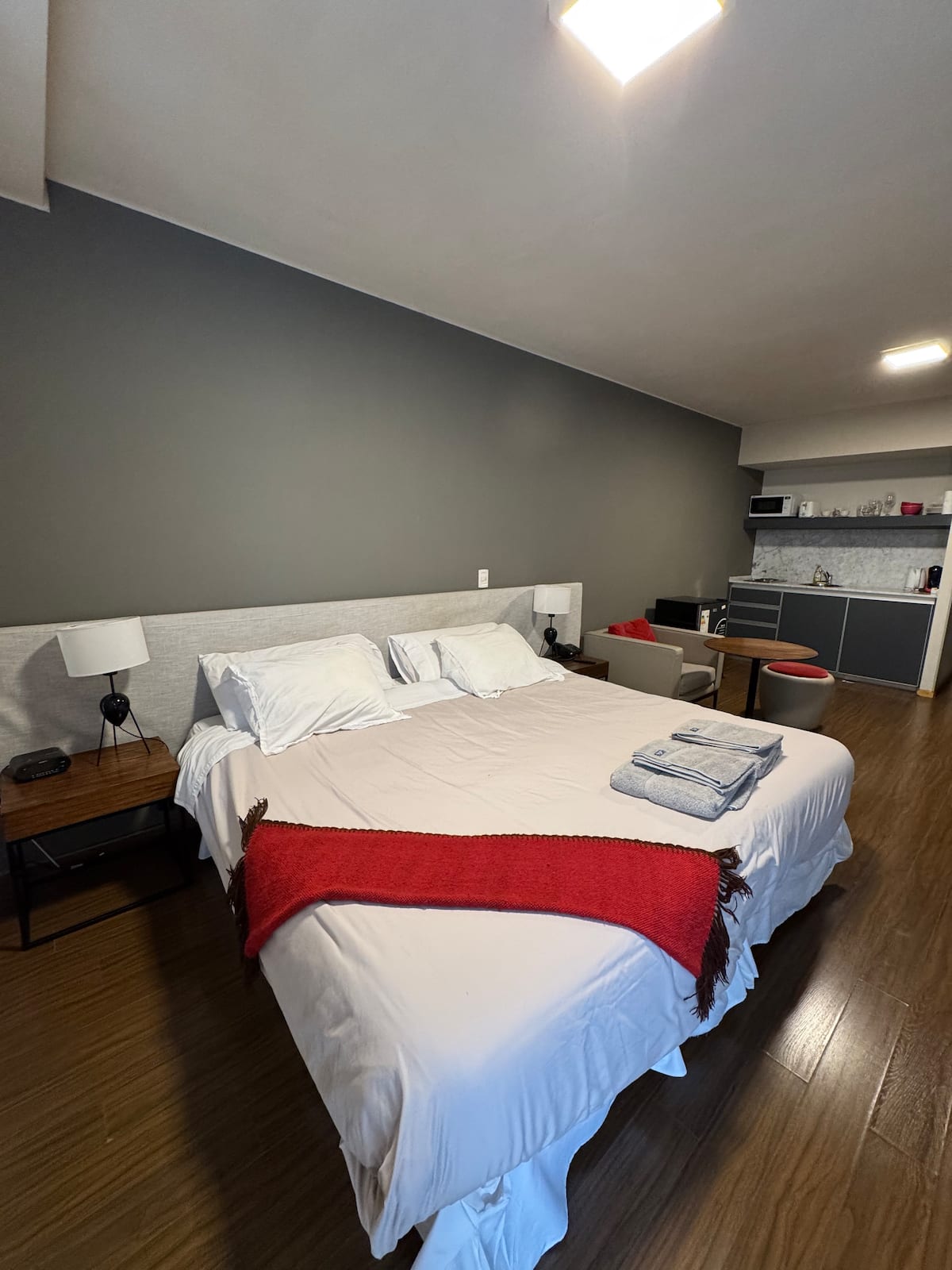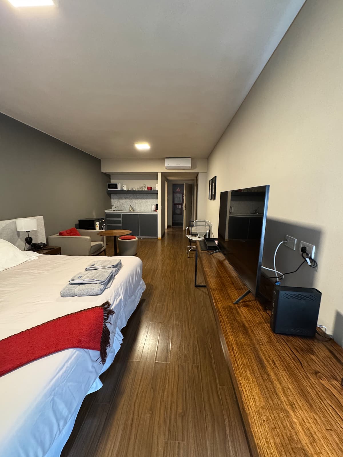 Departamento tipo studio amoblado y equipado, en Palermo Soho. Incluye cama superking de 2,10 x 2 m, ropa de cama y toallas. El edificio tiene pileta, gimnasio y lavandería, con lavarropas y secadoras en el subsuelo. Cuenta con WiFi y cable local, y el acceso al departamento se realiza por 2 ascensores.