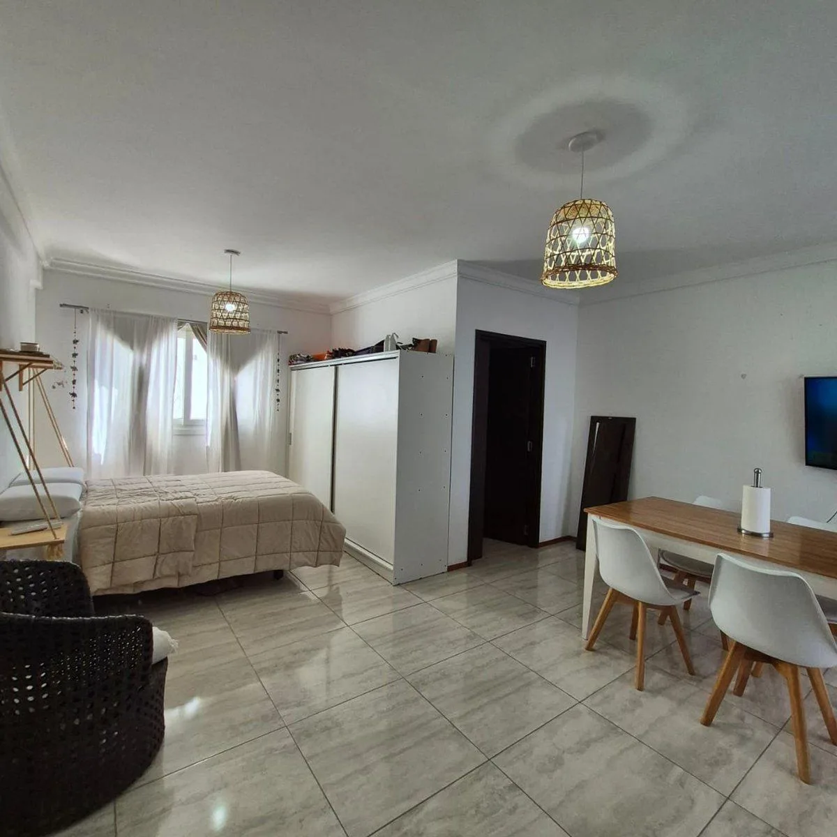 Departamento de 1 ambiente de planta divisible, amoblado, con cocina integrada, artefacto de cocina a gas y baño completo. Cuenta con aire acondicionado frío/calor y balcón. Alquiler en Av. Directorio y Hortiguera, con contrato a 12 o 24 meses, con aumento trimestral por índice IPC. $750.000 por mes más luz, gas y ABL. Requiere mes adelantado, mes de depósito y seguro de caución; no admite mascotas.
