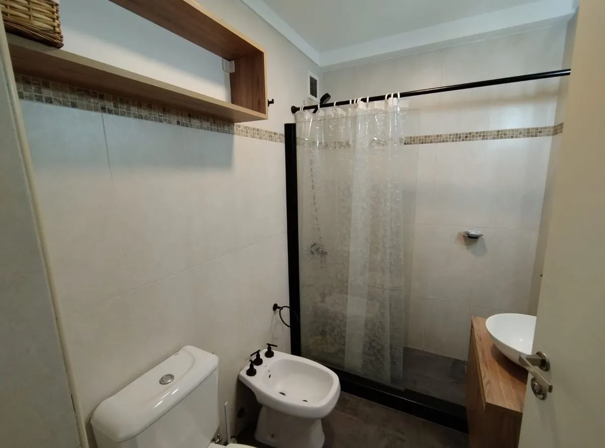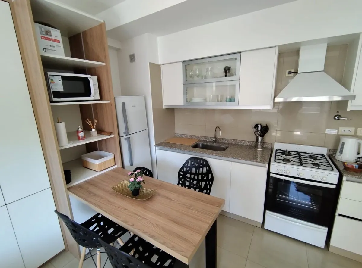 Monoambiente amoblado en alquiler de 34 m² totales (31 m² cubiertos y 3 m² semicubiertos) en el segundo piso, con balcón. Se encuentra en un edificio moderno construido en 2011, con ascensor. Incluye heladera, lavarropas, cocina a gas con horno, microondas, mesa comedor con sillas, espacio de guardado y Smart TV, además de baño completo y balcón.
