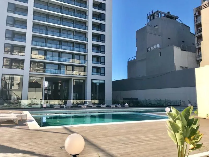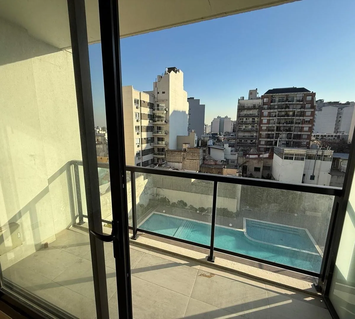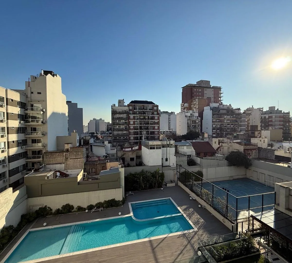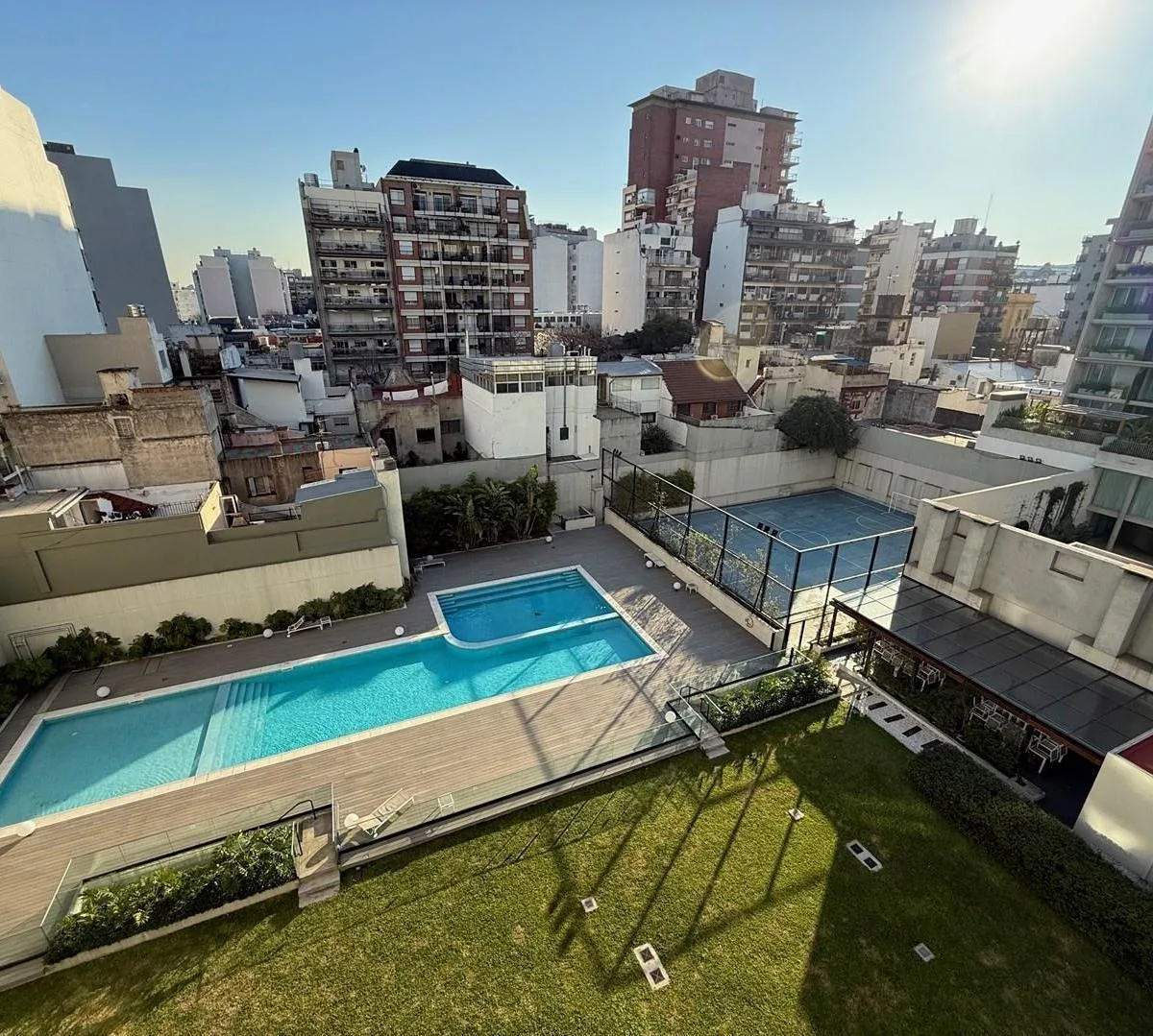 Departamento monoambiente de contrafrente, con orientación Oeste. Cuenta con vista a gran pulmón de manzana y también al jardín y a la piscina del edificio. Incluye seguridad 24 h y grupo electrógeno. El edificio dispone de piscina, cancha de fútbol 5, gimnasio, SUM, SUM de niños, laundry, cava, microcine, parrillas, SPA, salas de reuniones y playroom. Cochera y baulera son opcionales y se deben consultar aparte.