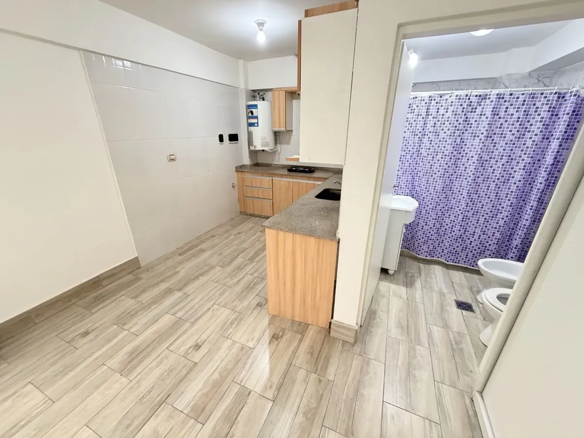 Departamento de 1 ambiente en Parque Chacabuco, refaccionado a nuevo. Segundo piso por escalera; ambiente principal con cocina integrada en L y baño completo con sanitarios nuevos. Incluye terraza con parrilla. Expensas incluyen ABL, AYSA y luz. No se admiten mascotas; se acepta únicamente seguro de caución. Accesibilidad: no es accesible para personas con movilidad reducida, conforme Ley 515 GCBA.