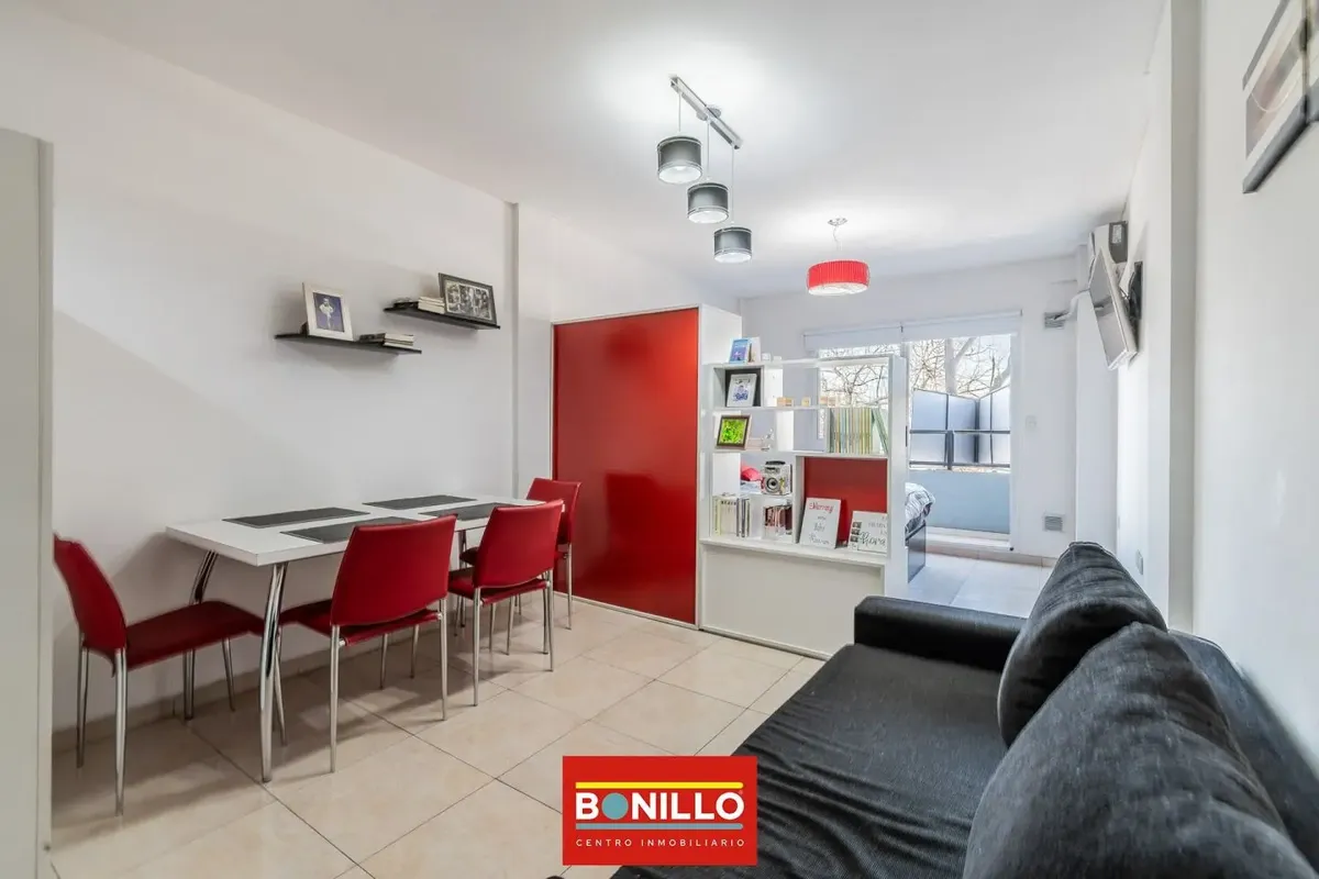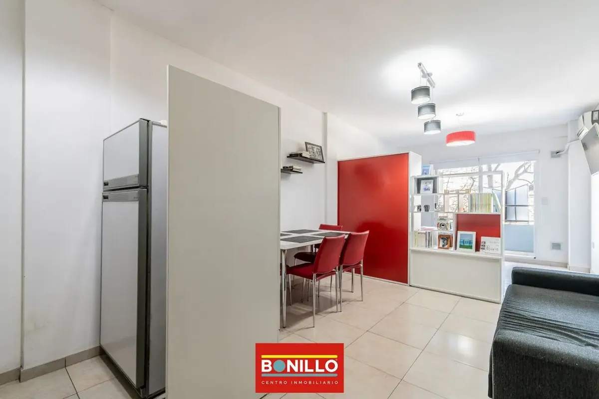 Monoambiente de alquiler sobre Salvador del Carril, en Villa Pueyrredón, con balcón al frente. Ingreso por living-comedor; cocina integrada con espacio de guardado; baño completo. Tiene conexión para lavarropas y orientación sureste, con ingreso de luz por la mañana. Expensas de enero 2026: $220.000, incluye Aysa.