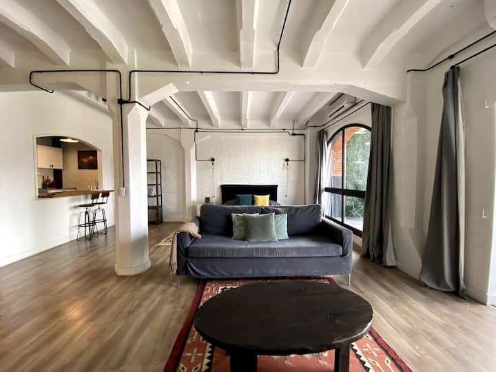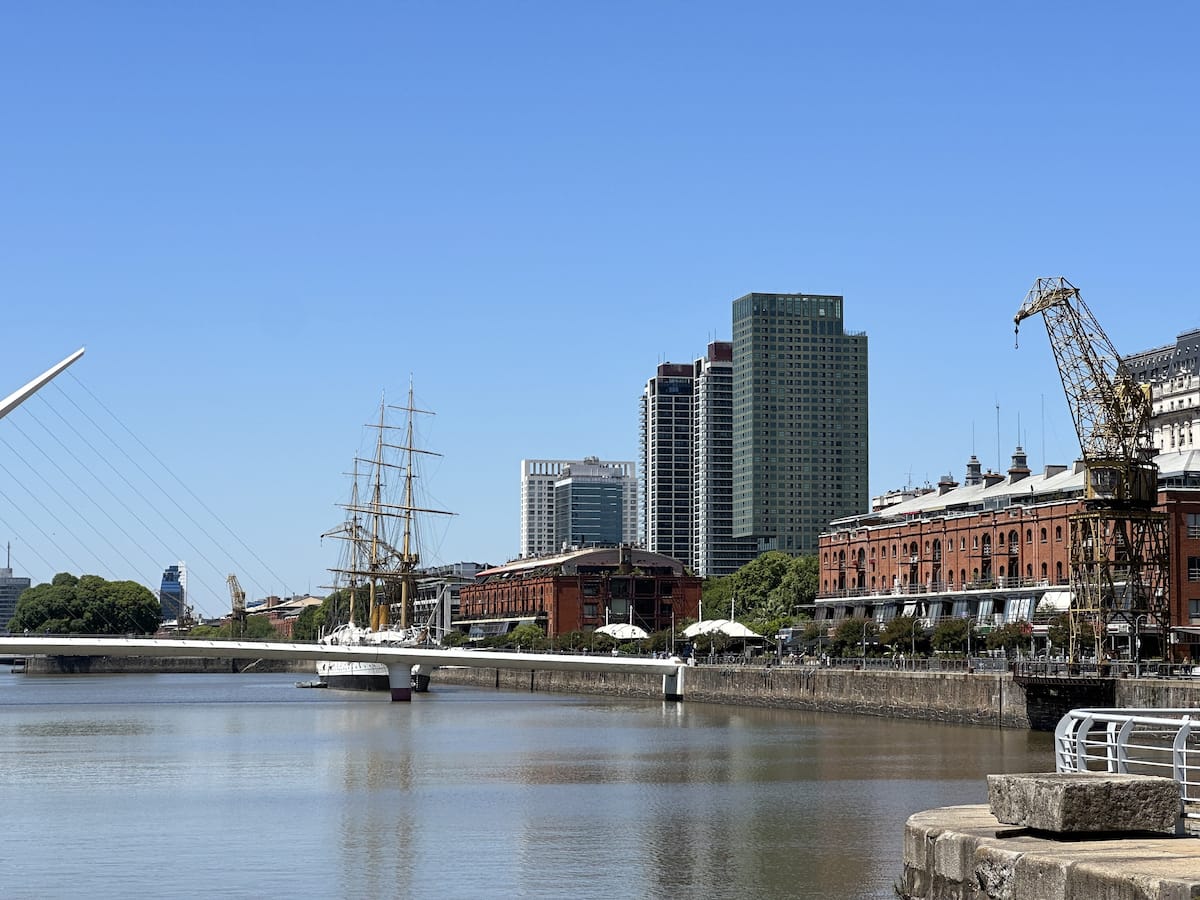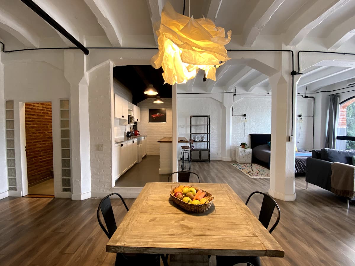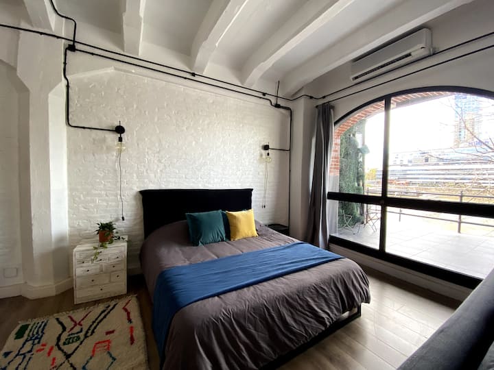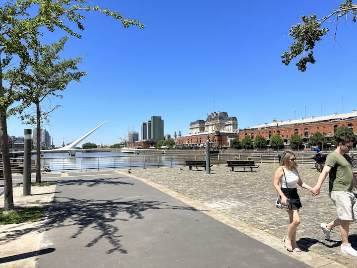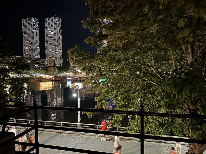 Loft tipo estudio en Puerto Madero con balcón y vista al río. Dispone de cama king, sofá, TV smart grande, cocina completa y baño. Tiene entrada independiente.