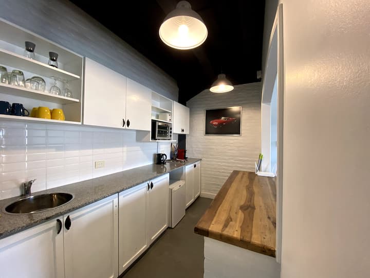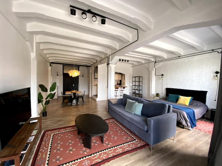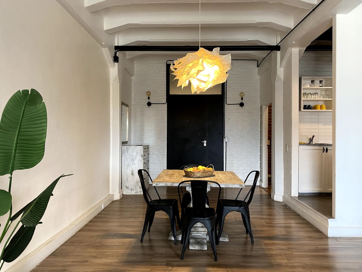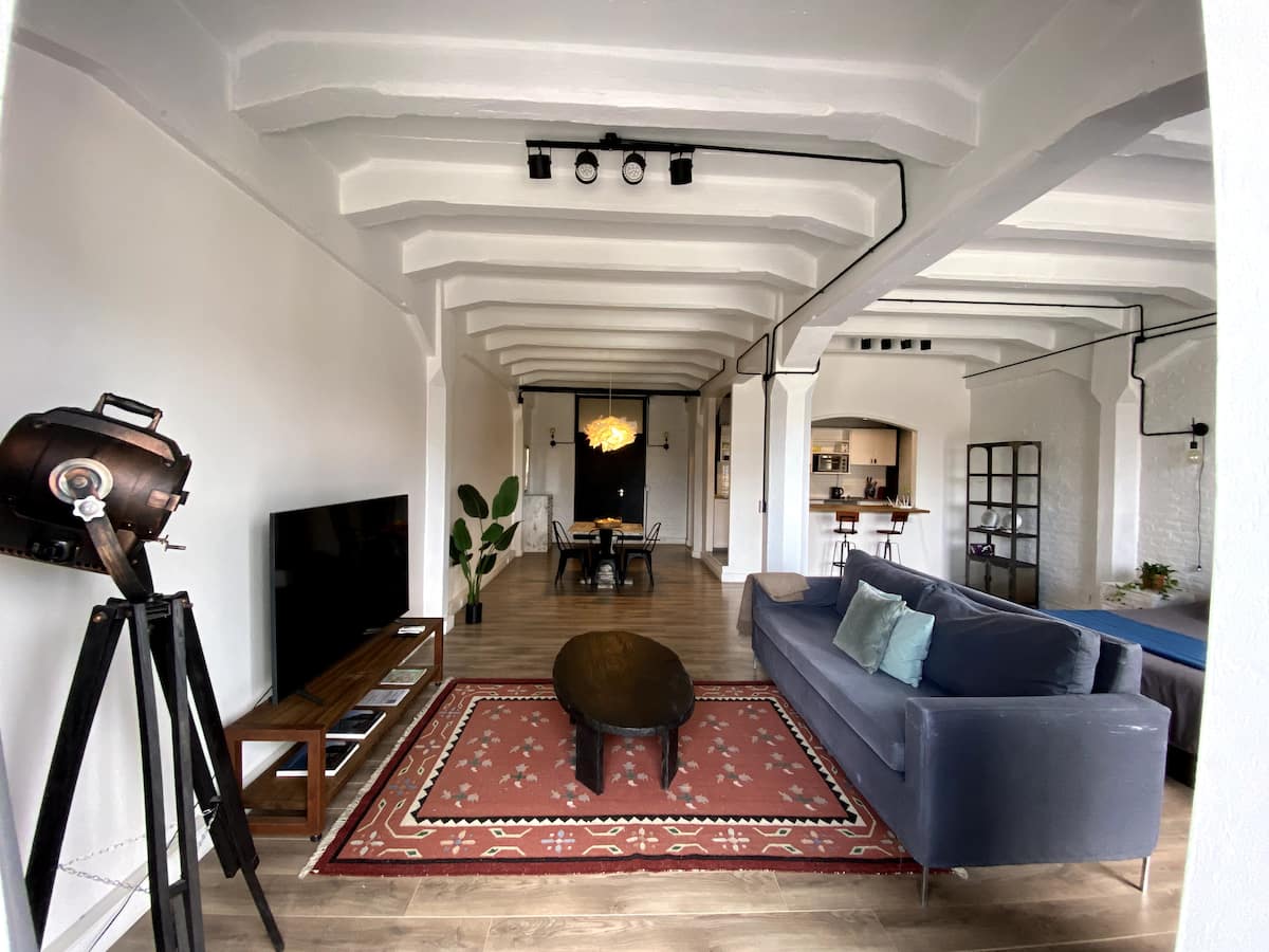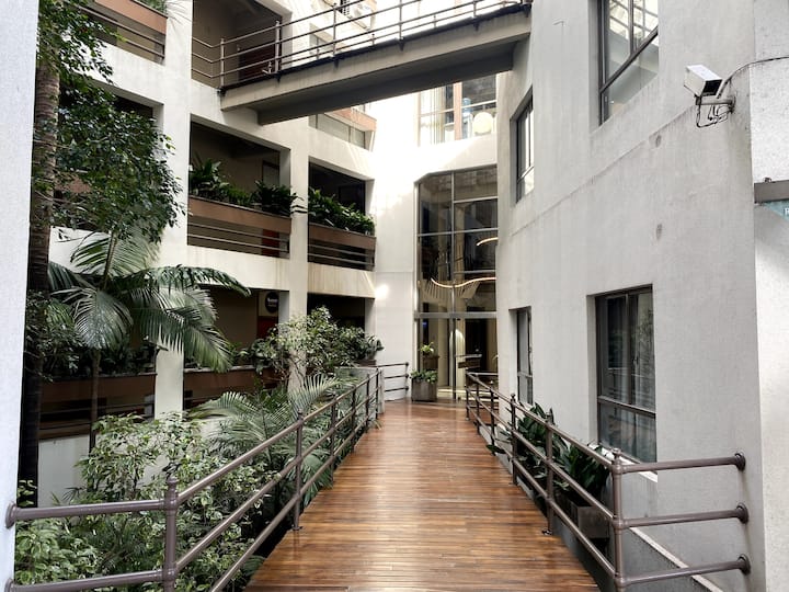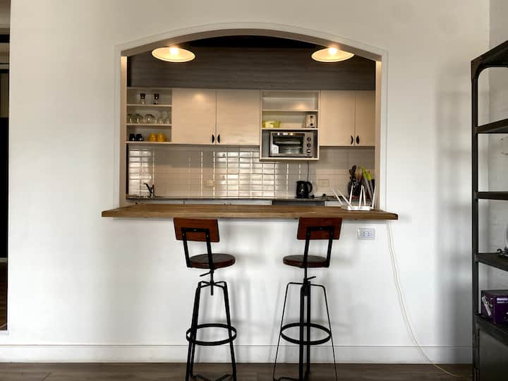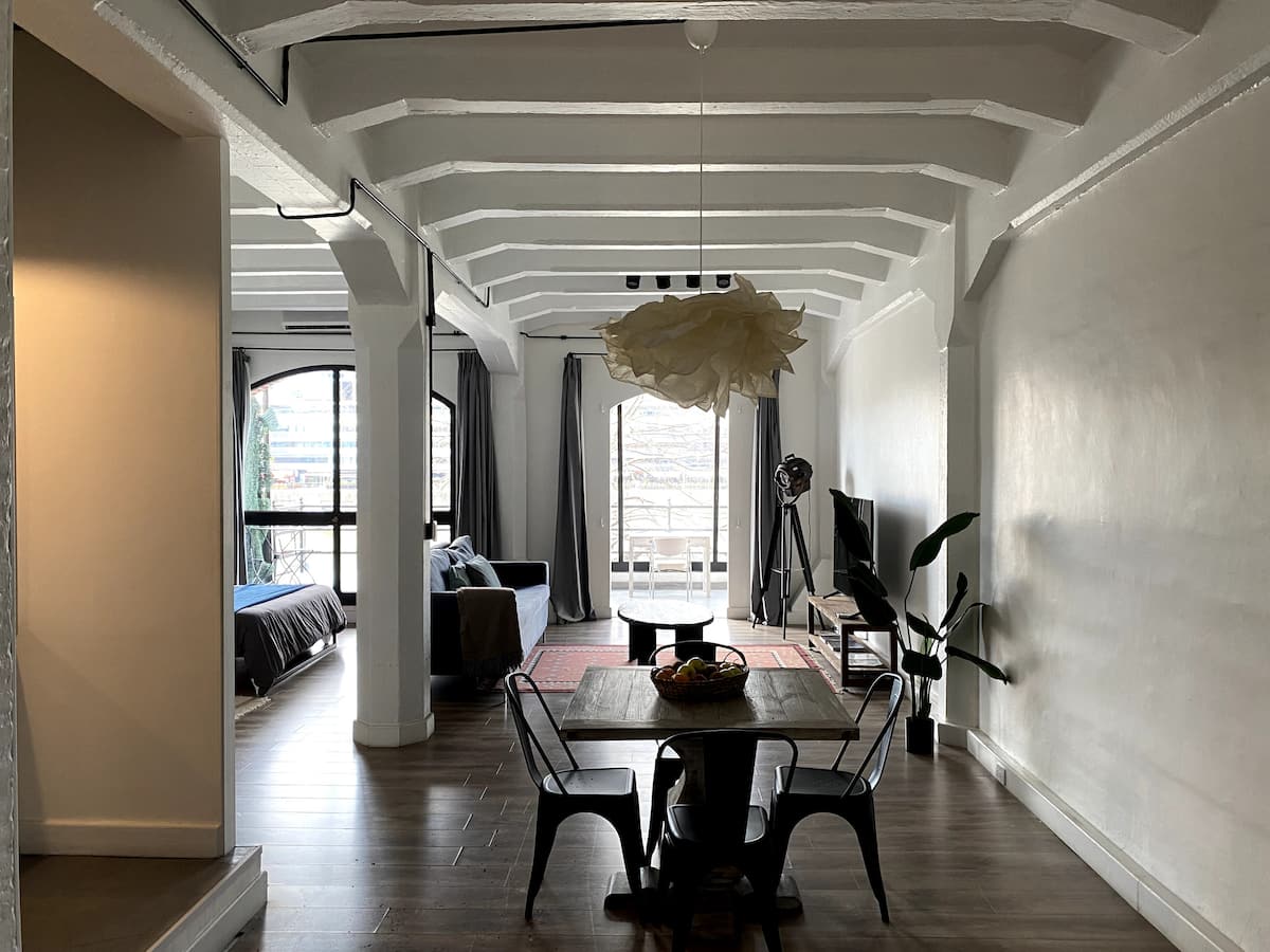 Loft tipo estudio en Puerto Madero con balcón y vista al río. Dispone de cama king, sofá, TV smart grande, cocina completa y baño. Tiene entrada independiente.