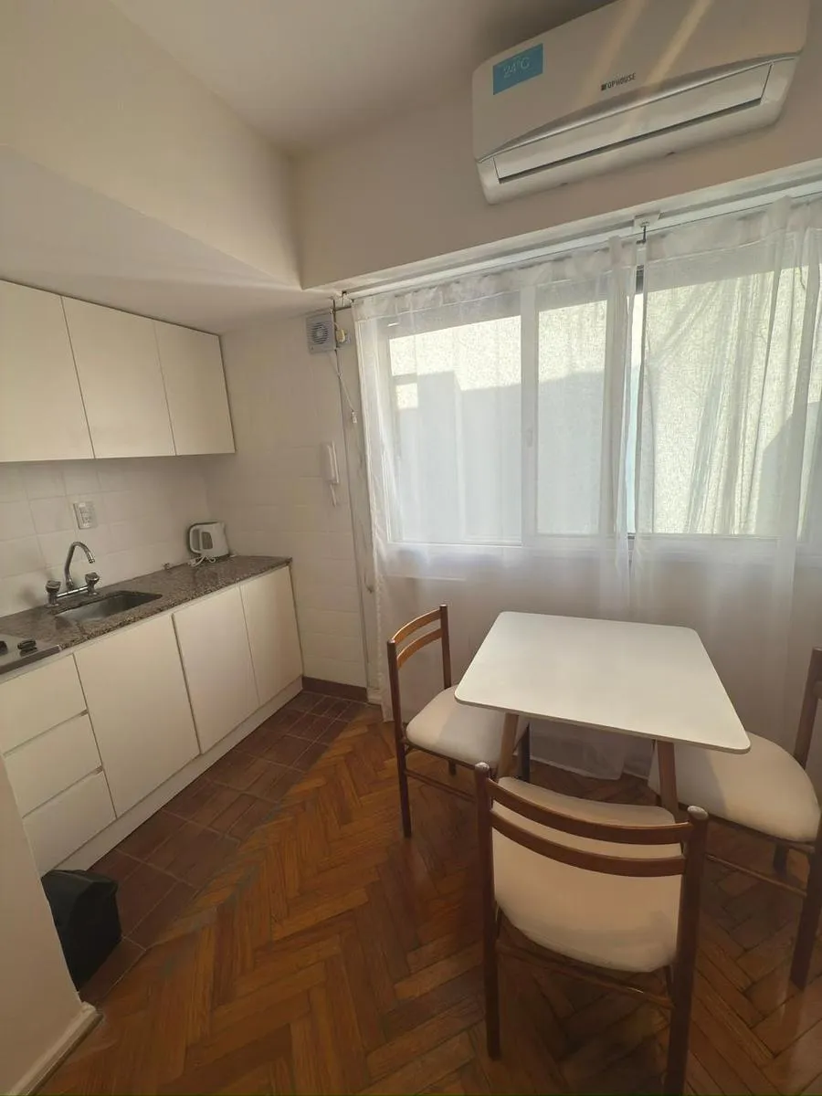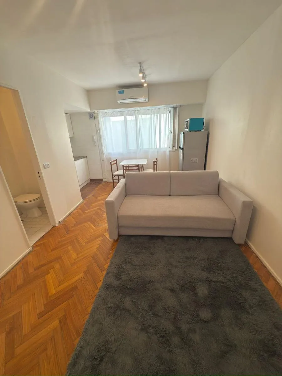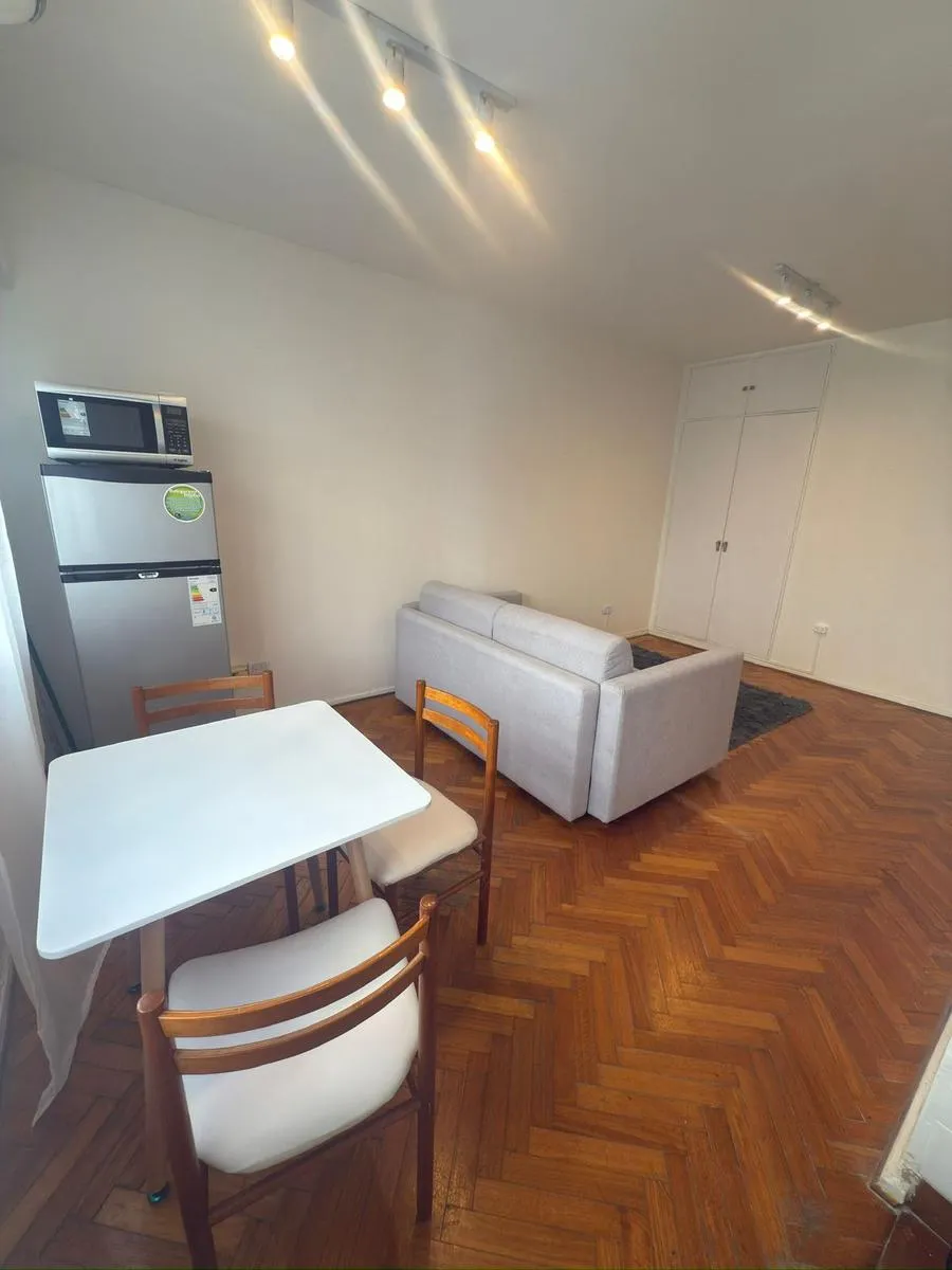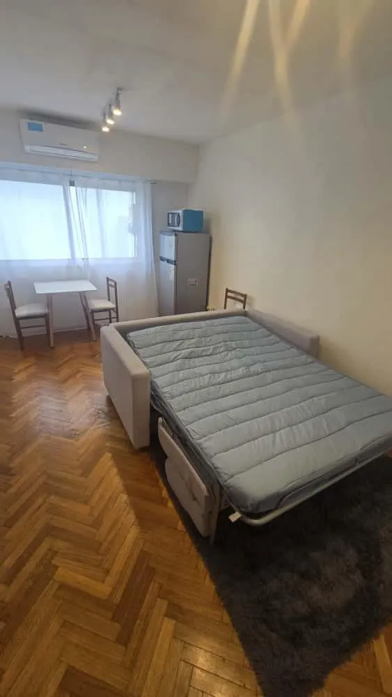 Monoambiente en alquiler temporal en Recoleta, totalmente equipado. Incluye sillón cama doble, cocina completa con vajilla, heladera y microondas, y aire acondicionado. Cuenta con baño completo, placard empotrado y piso de parquet.