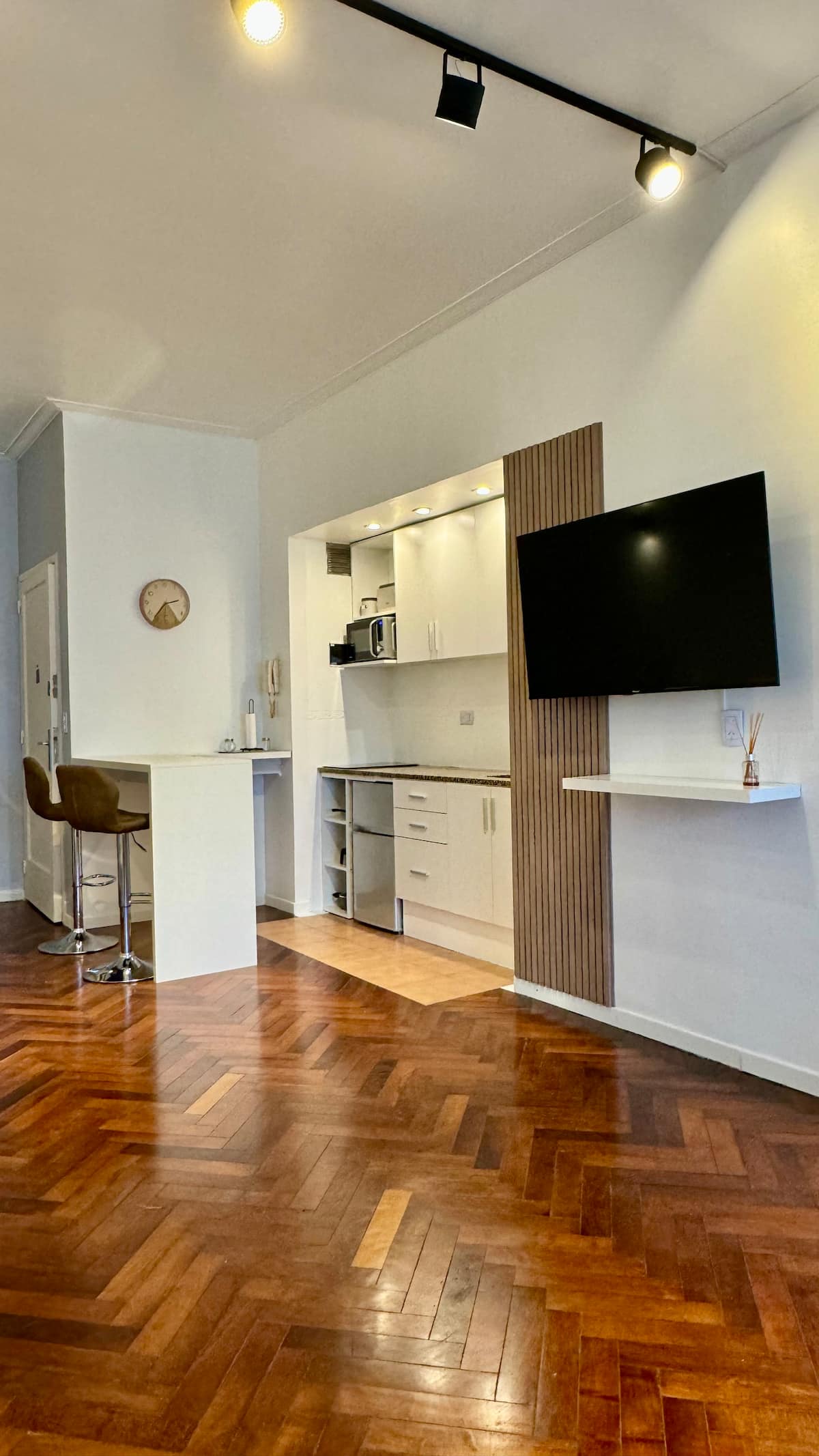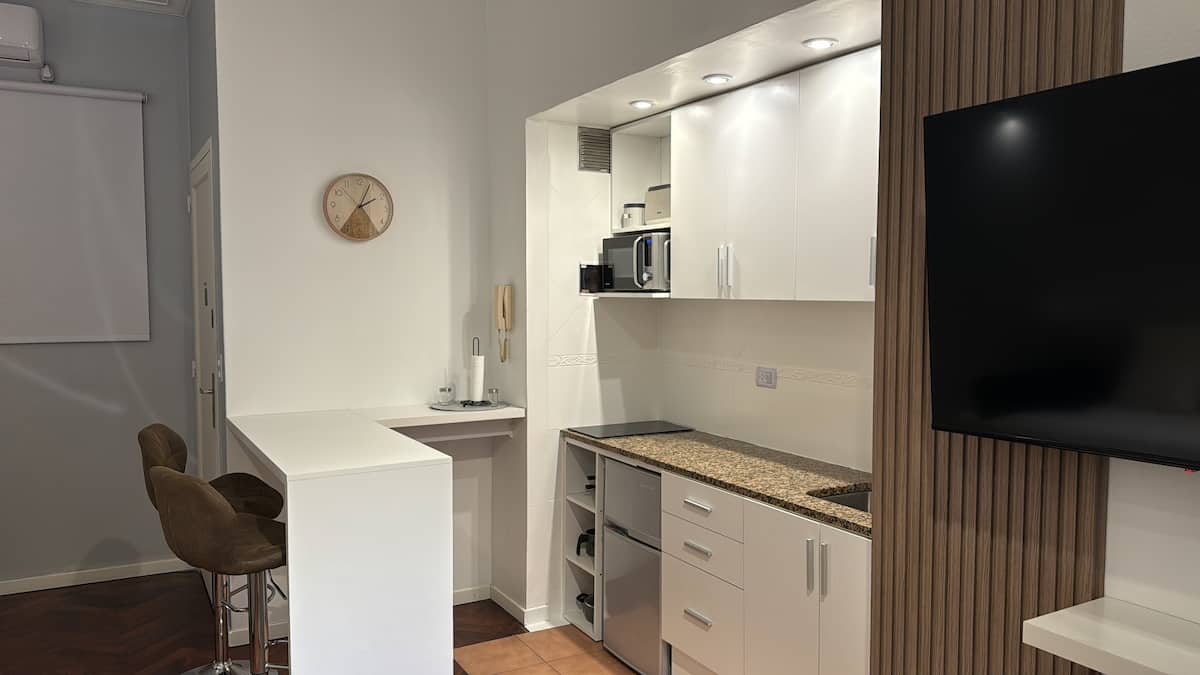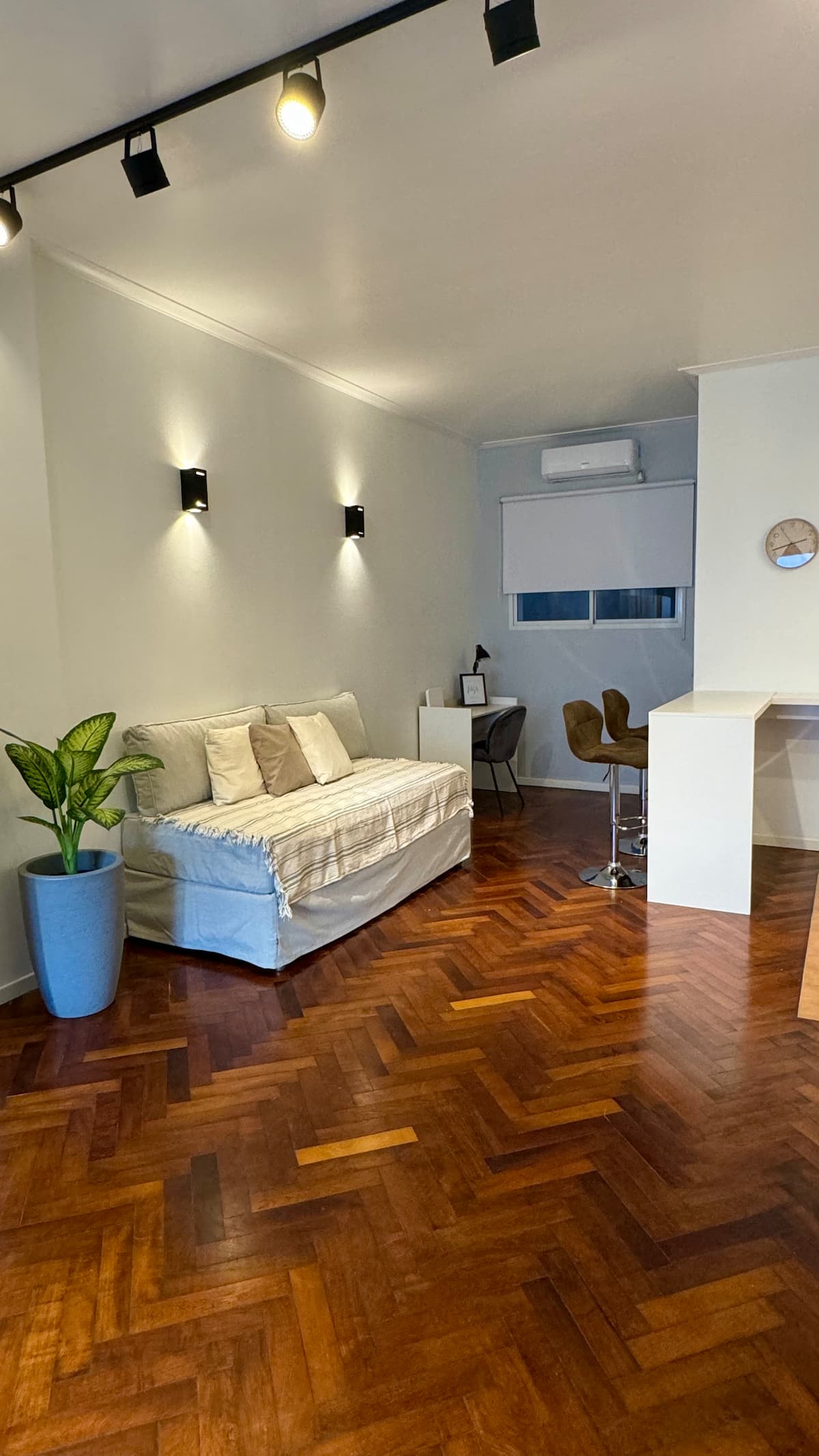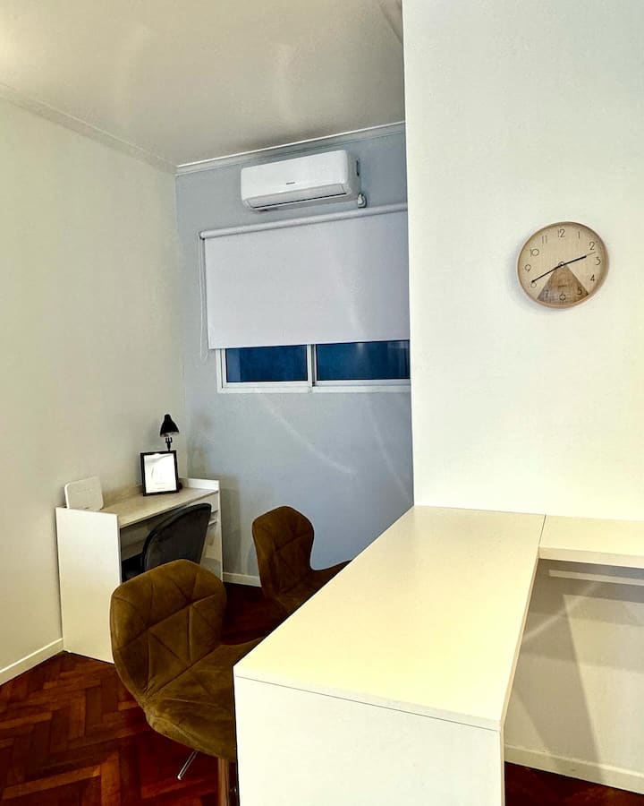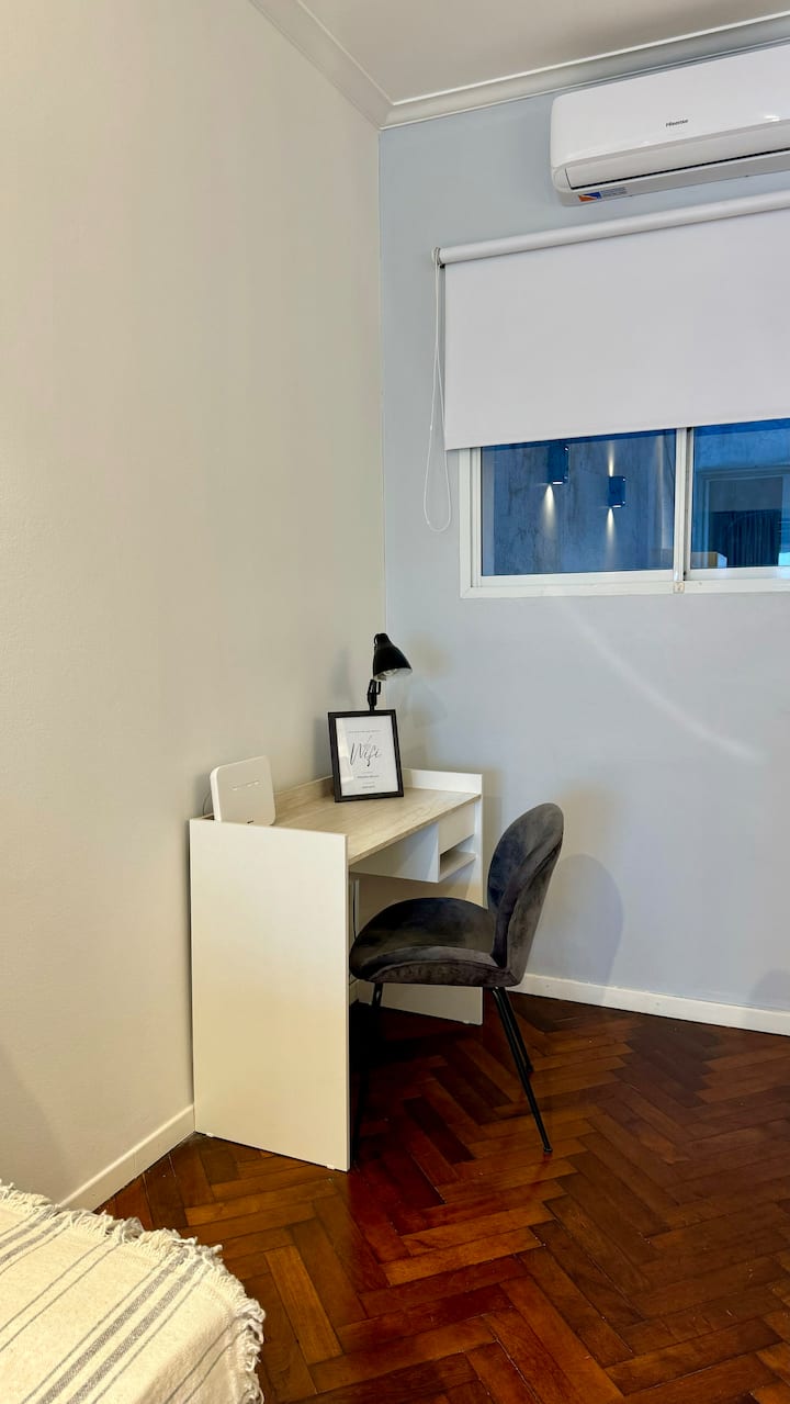 Monoambiente en alquiler temporario en Recoleta. Ambiente único, amoblado y equipado. Cuenta con sofá cama, y un escritorio para trabajo o estudio. Se ubica a metros de Av. Santa Fe, en la esquina de Agüero y a una parada de la línea D del subte. El acceso se coordina por chat para entrega de llaves; el check-out es autónomo mediante un botón en la puerta de ingreso. Ingreso a las 14:00 y egreso a las 11:00.