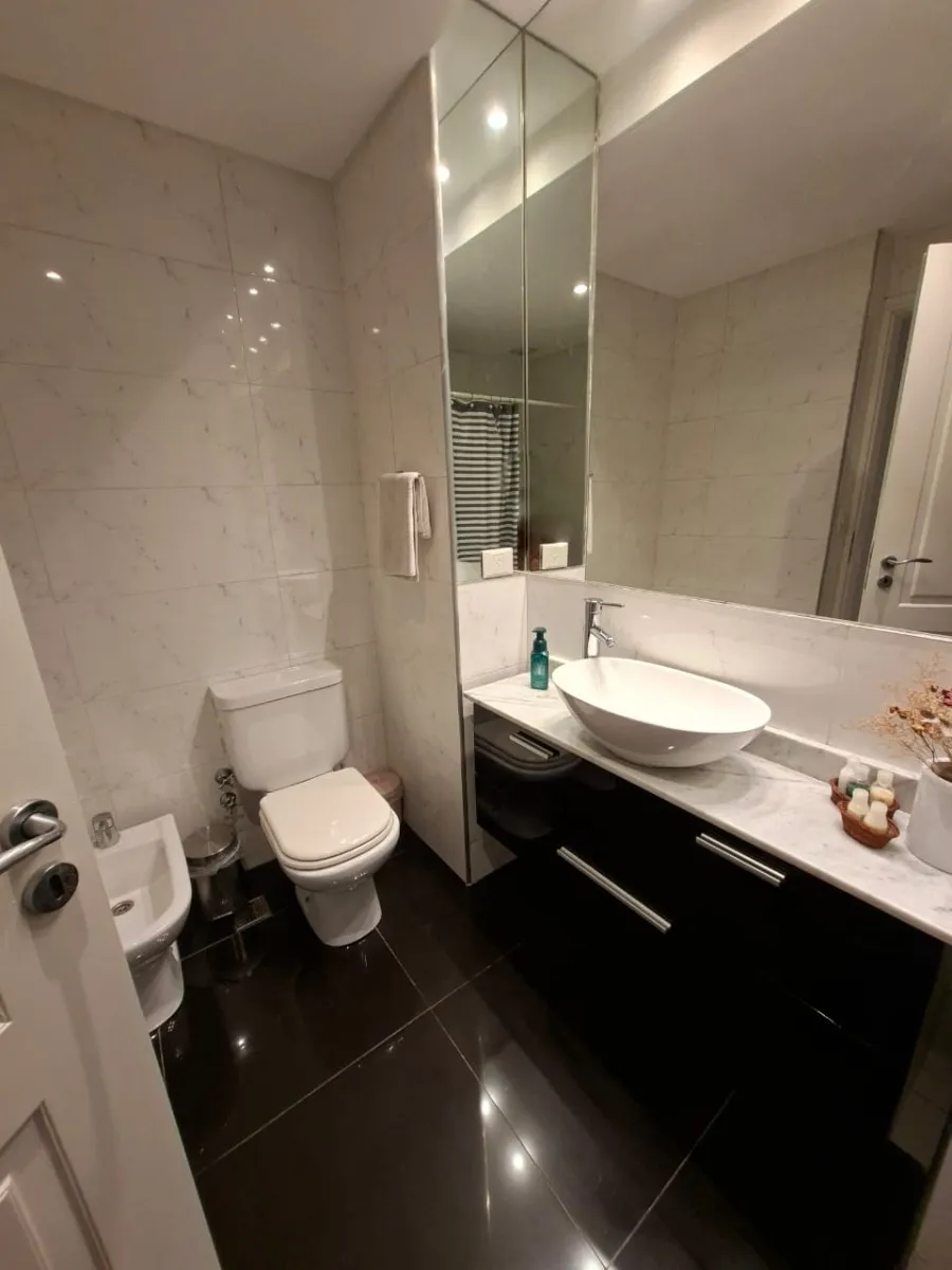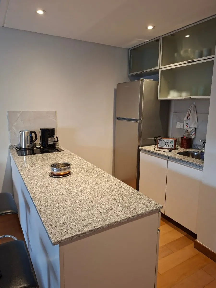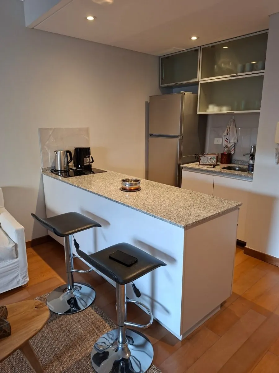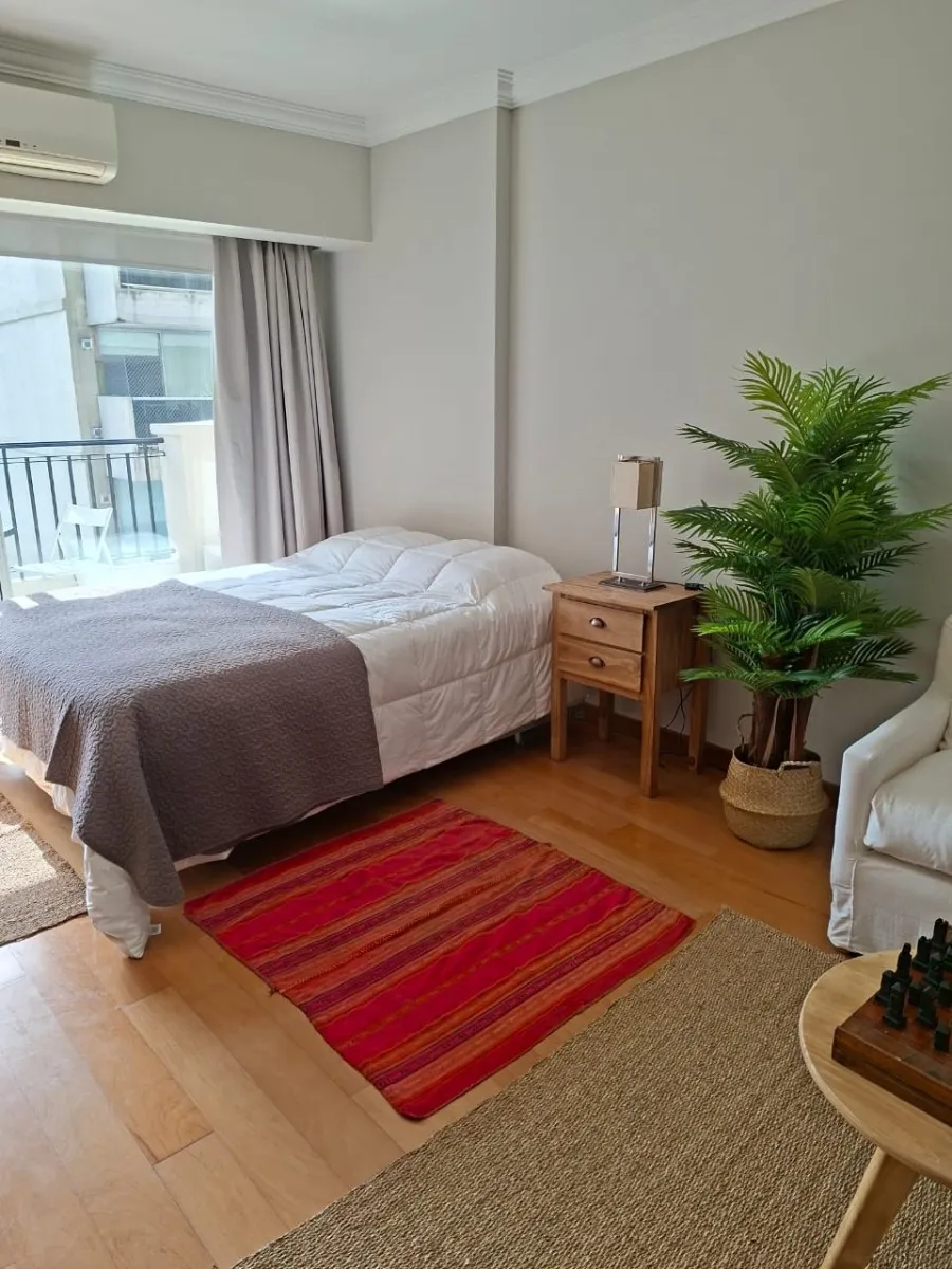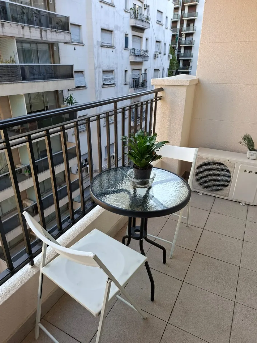 Departamento monoambiente de 43 m² totales, con 39 m² cubiertos, en el 6° piso al frente. Orientación Este, con balcón y cochera fija cubierta. Se entrega amoblado y equipado; cocina integrada eléctrica con barra desayunadora, baño completo con ducha escocesa y aire acondicionado split frío-calor. El edificio tiene seguridad 24 h, SUM, sauna, gym, solarium y laundry en cada piso de uso libre. Alquiler U$S 1.000 con gastos incluidos; entre Av. Pueyrredón y Laprida, a 2 cuadras de Plaza Mitre.