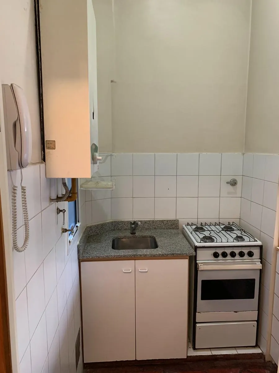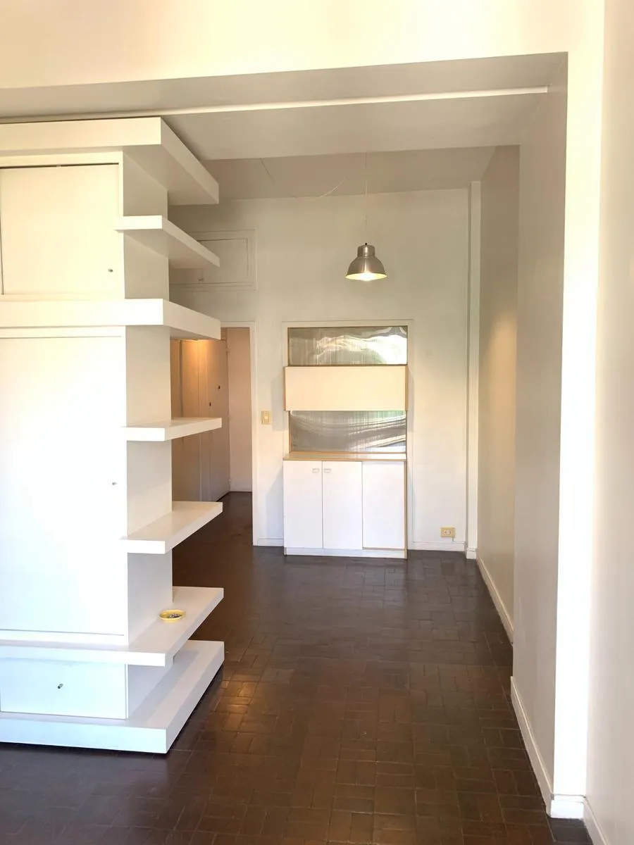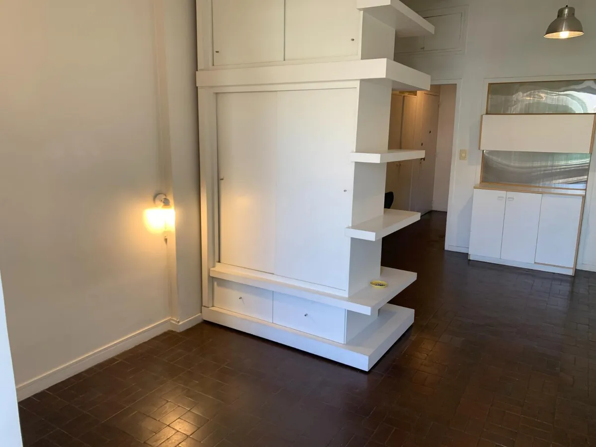 Departamento monoambiente en Recoleta, a contrafrente con vista verde. Cuenta con baño completo con ventilación al exterior y cocina separada. Incluye un mueble con armario divisor. El edificio tiene ascensor. A metros de Av. Santa Fe. APTO PROFESIONAL.