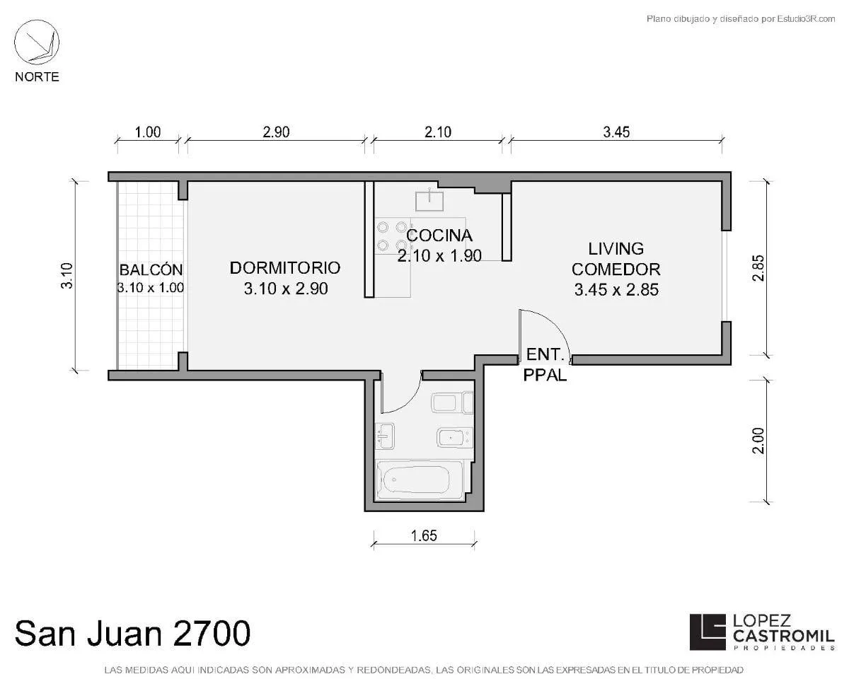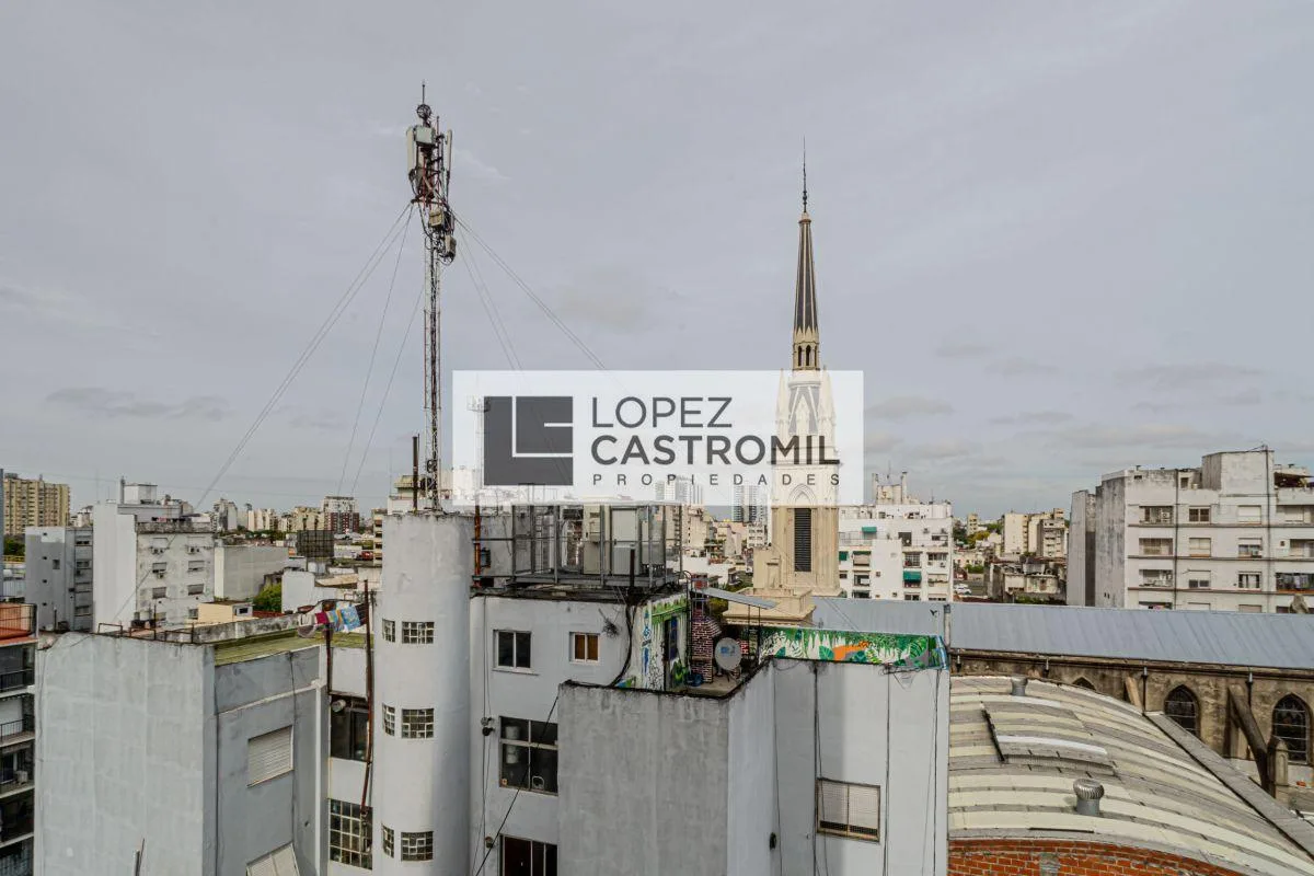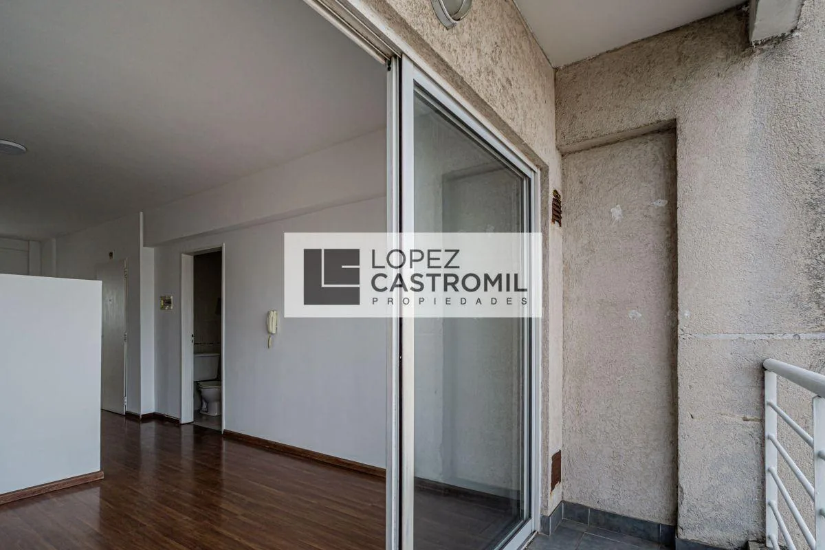 Monoambiente divisible con balcón, cocina completa y baño completo. Cuenta con 1 split frío-calor, pisos de madera y agua caliente central. El edificio tiene 2 ascensores y servicio de limpieza; hay posibilidad de cochera en el edificio y el inmueble es apto profesional.