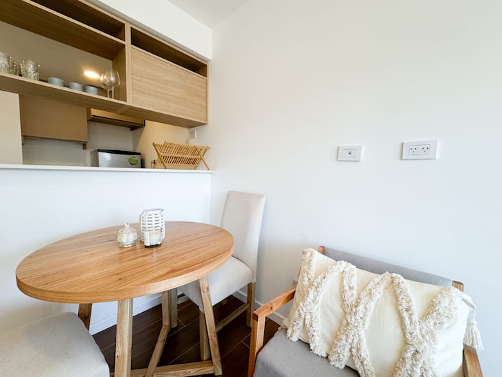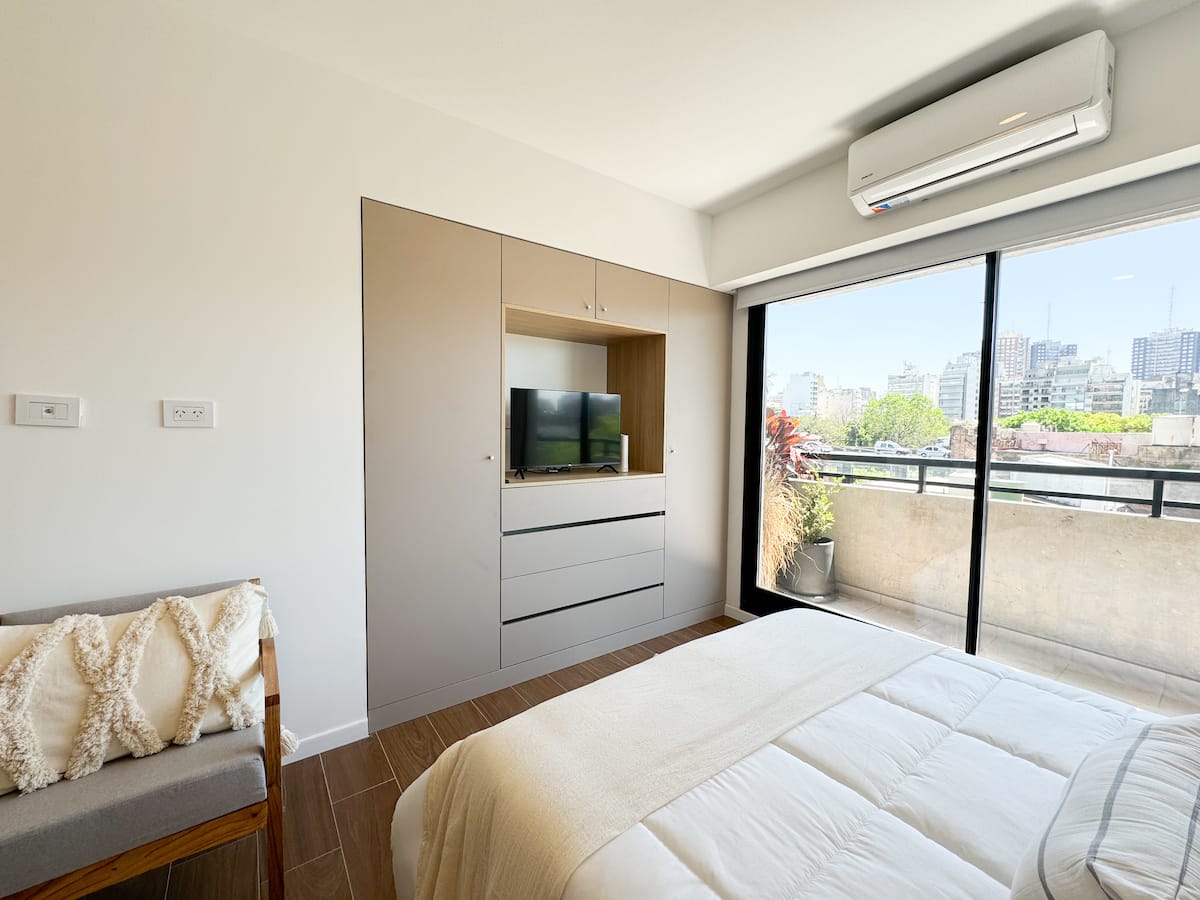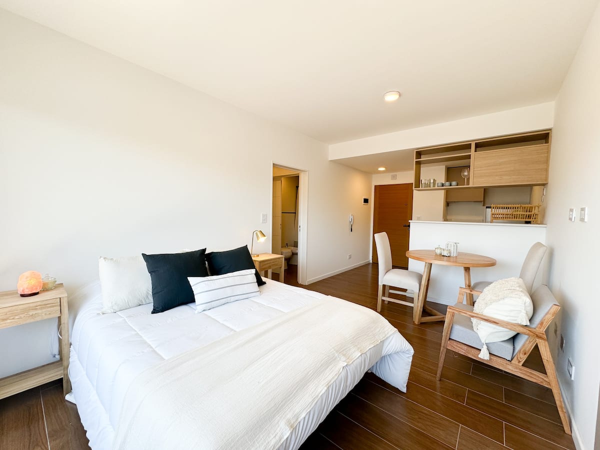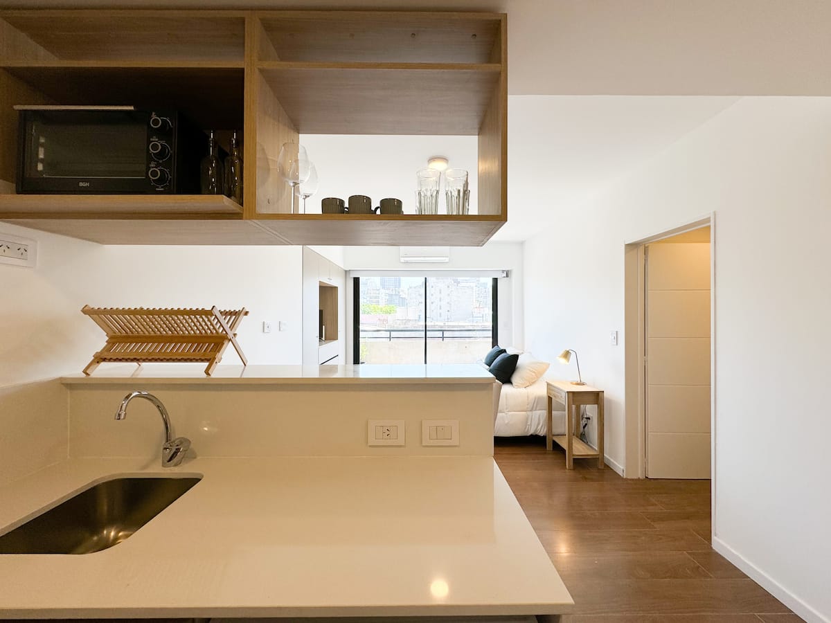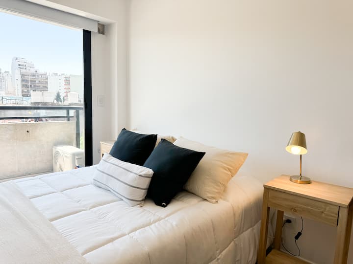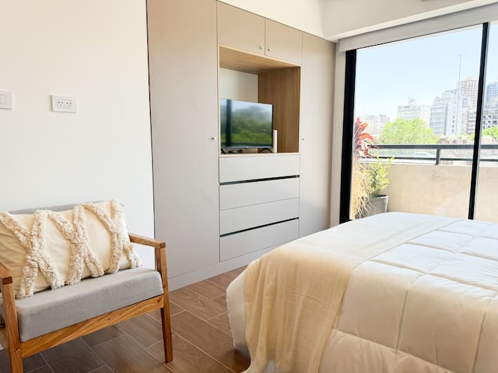 Departamento tipo estudio a estrenar en San Cristóbal. Edificio de construcción nueva. Está equipado para la estadía. Ubicado en una zona residencial con acceso a transporte público y con acceso rápido a la autopista para viajes al Aeropuerto Internacional de Ezeiza.