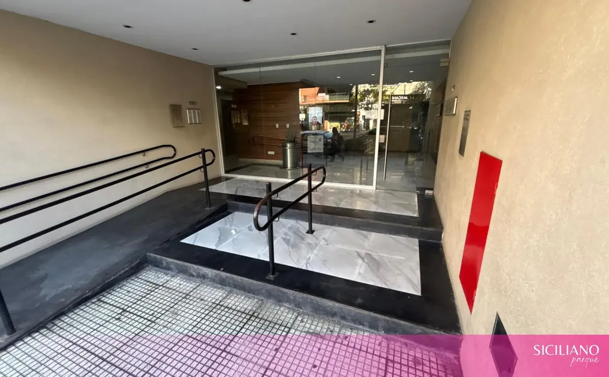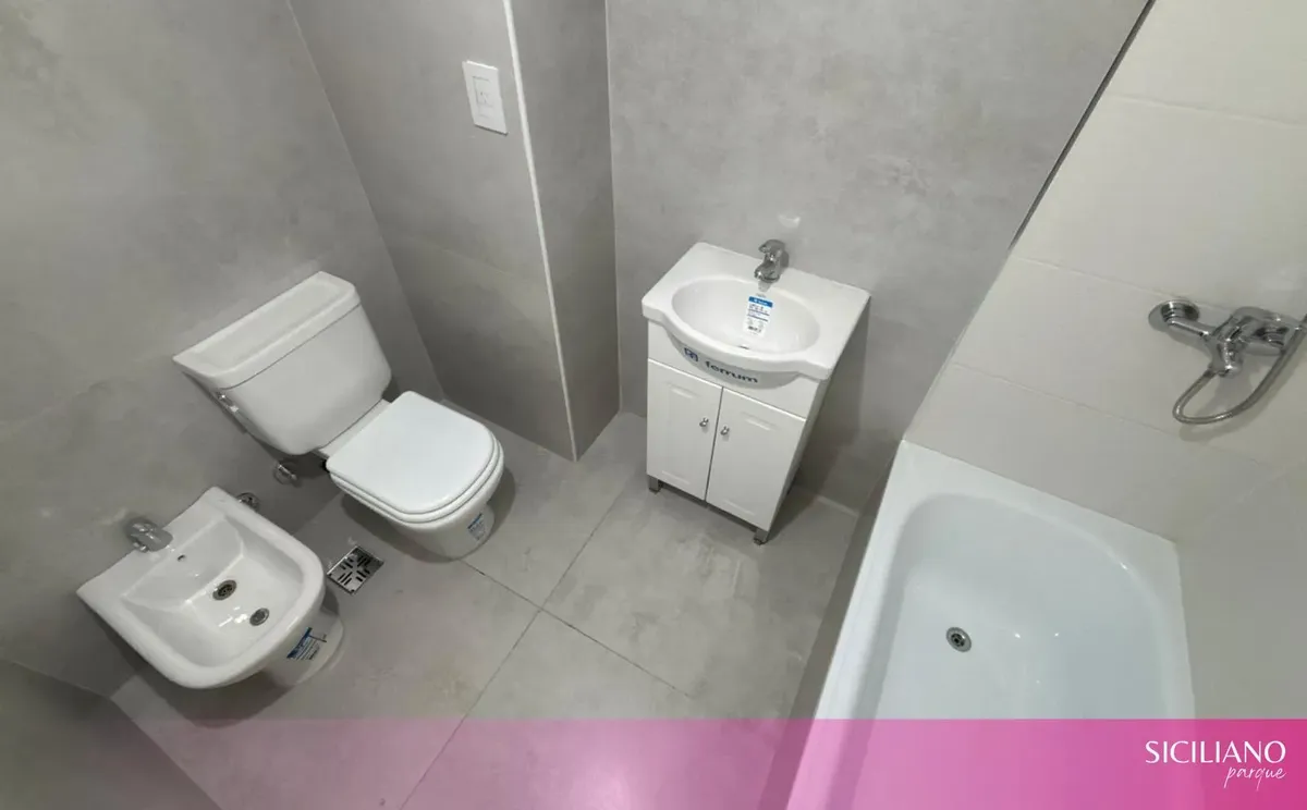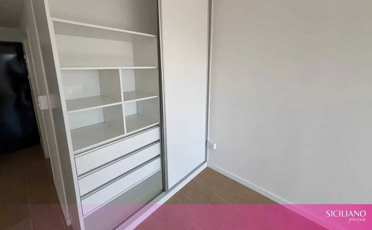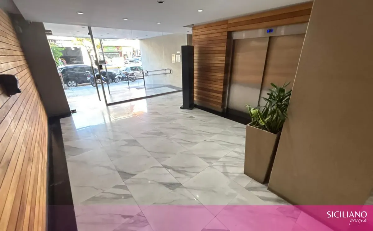 Departamento monoambiente a estrenar de 26,5 m² cubiertos y 3,5 m² descubiertos, en el 10º piso, orientación norte, con balcón al contrafrente y vista abierta. Cuenta con placard en el ambiente principal, cocina integrada y baño completo con bañera. Tiene aire acondicionado frío-calor, agua caliente individual por termotanque eléctrico y pisos flotantes; no posee instalación de gas. El edificio cuenta con PB + 15 pisos, 2 ascensores, seguridad 24 h, servicio de limpieza, 2 piscinas, solarium, gi