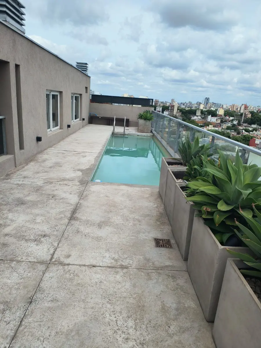 Departamento en 4to piso en Pavón 3164, con balcón terraza al pulmón de manzana. Ambiente con cocina integrada: anafe de vitrocerámica, horno empotrado y purificador; placard. Pisos radiantes, aire acondicionado, aberturas herméticas y cortinas black-out; pisos de porcelanato. El edificio cuenta con piscina, solarium, coworking y encargado permanente; apto profesional. Expensas $160.000 que incluyen AYSA y ABL. Alquiler $630.000.