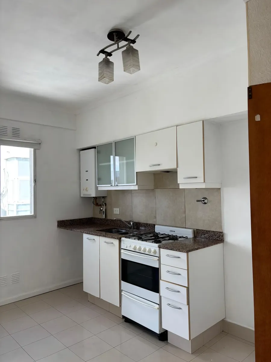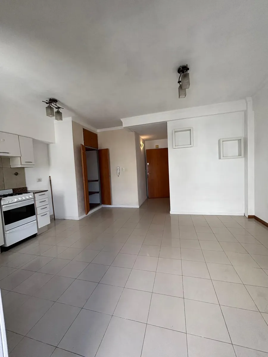 Monoambiente en 7° piso en Tres de Febrero, con cocina equipada y 1 baño. Dispone de ascensor y pisos cerámicos. El contrato contempla ajuste trimestral por IPC y garantía propietaria o seguro de caución, además de recibo de sueldo.