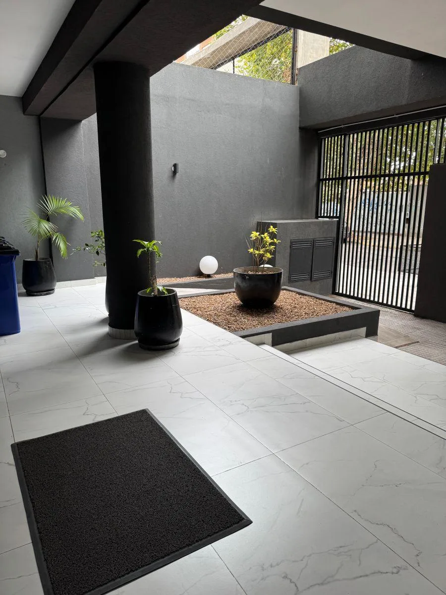 Departamento de 38 m² construidos y 42 m² totales, en Caseros, al contrafrente con orientación N. Cuenta con 1 baño completo y balcón. El ambiente integra sala de estar y cocina; tiene ascensor y parrilla.