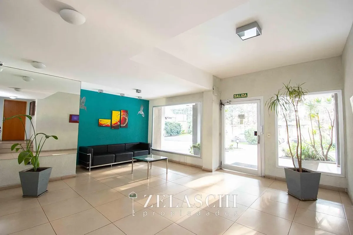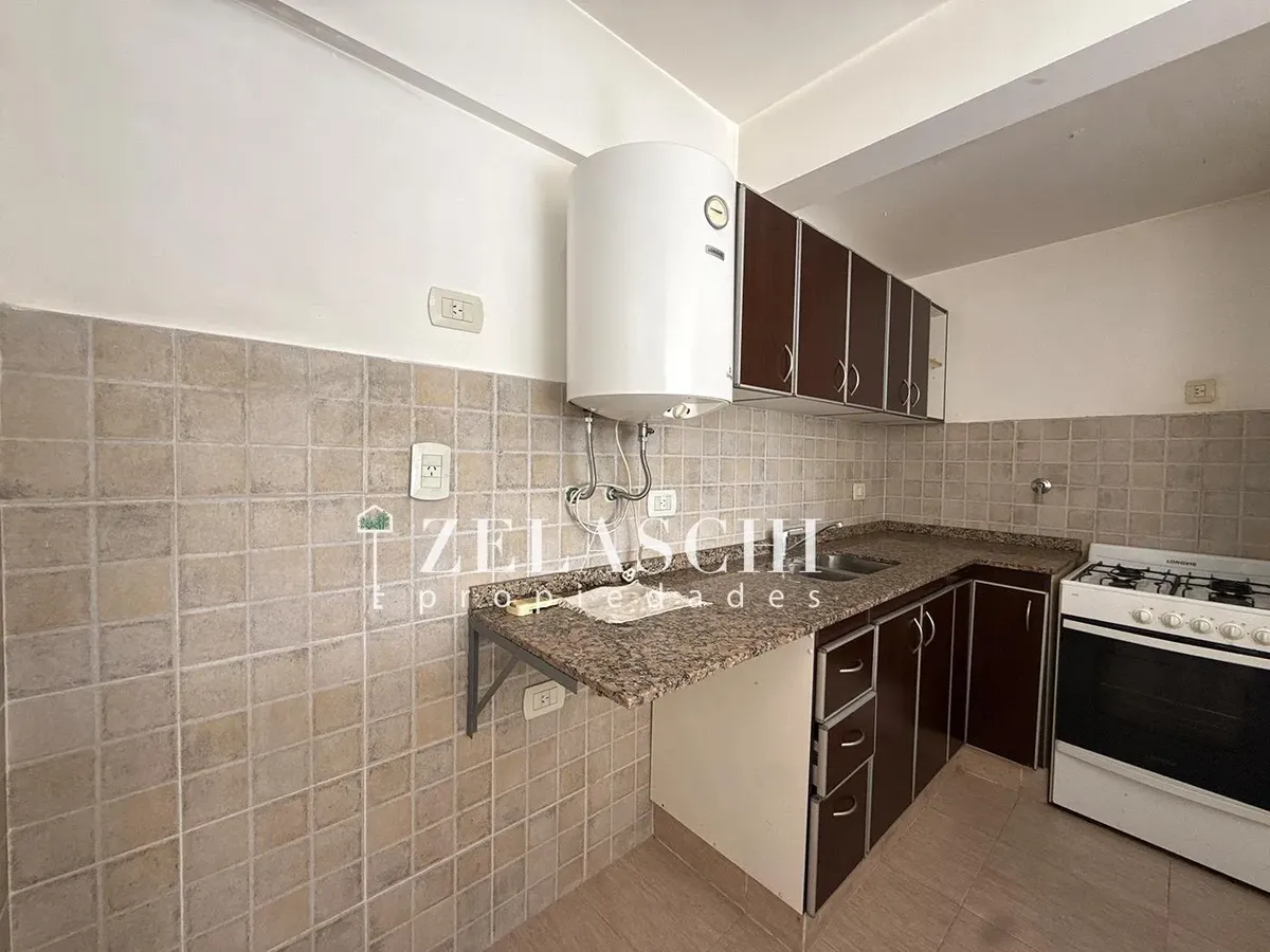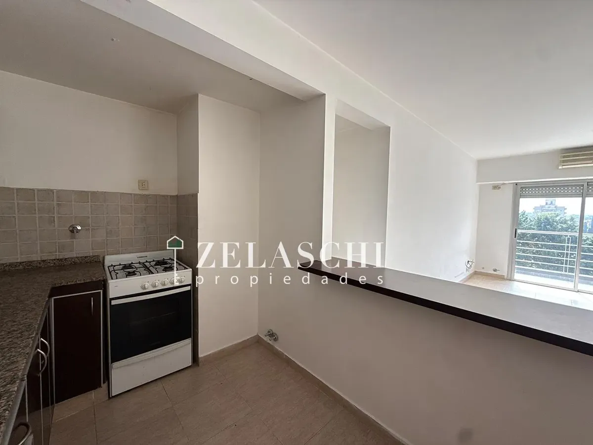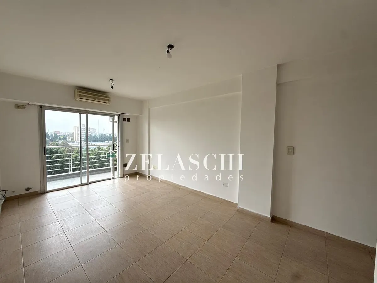 Departamento monoambiente en alquiler sobre calle Pte Peron, en Martín Coronado, Tres de Febrero. Está en el 6o piso, da al lateral del edificio y cuenta con un ambiente único, cocina completa y baño. El edificio tiene 4 ascensores y grupo electrógeno. El alquiler se ajusta trimestralmente según IPC y el contrato es por 2 años.