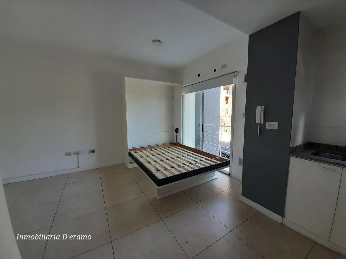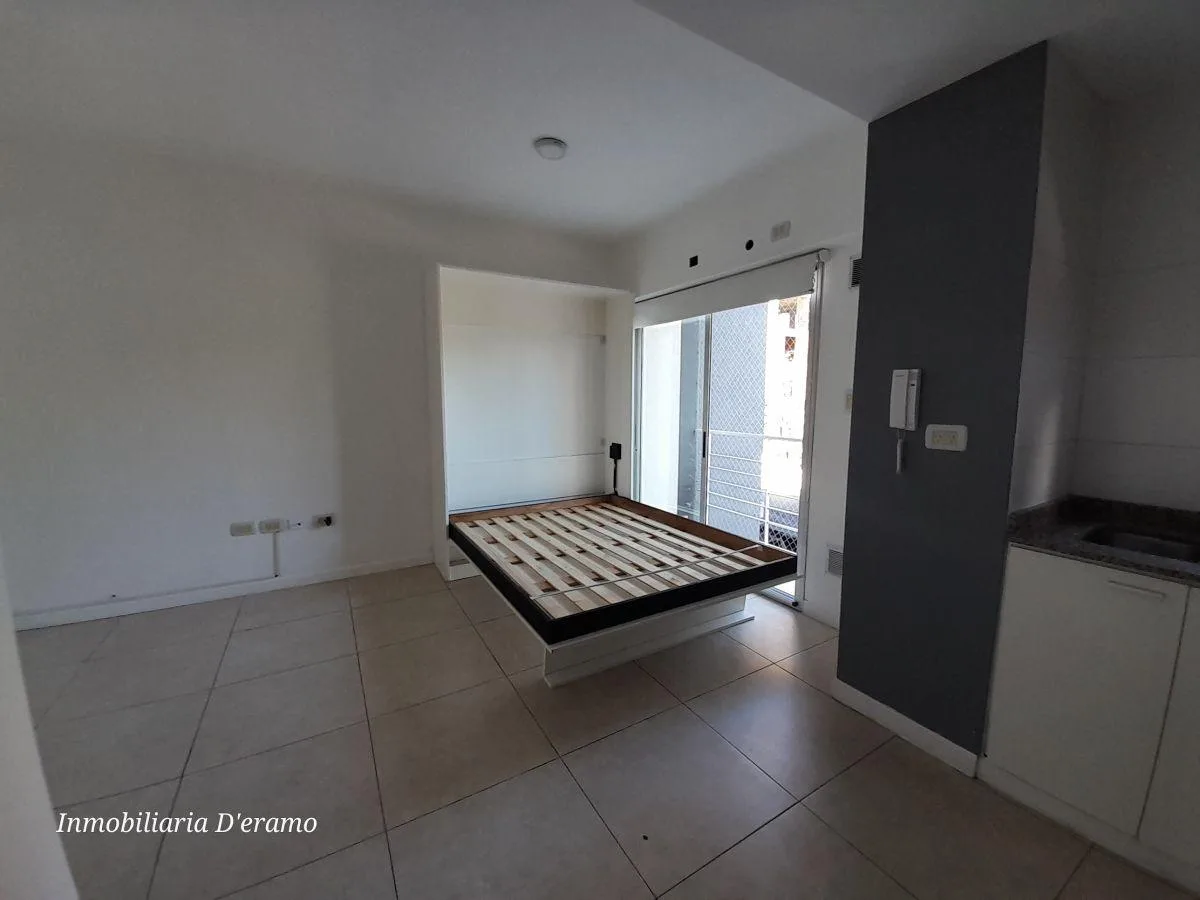 Departamento monoambiente de contrafrente con balcón. Se ubica en el primer piso, con acceso por ascensor y rampa. Incluye cama rebatible. El contrato es por 2 años con aumento cada 4 meses según ICL.