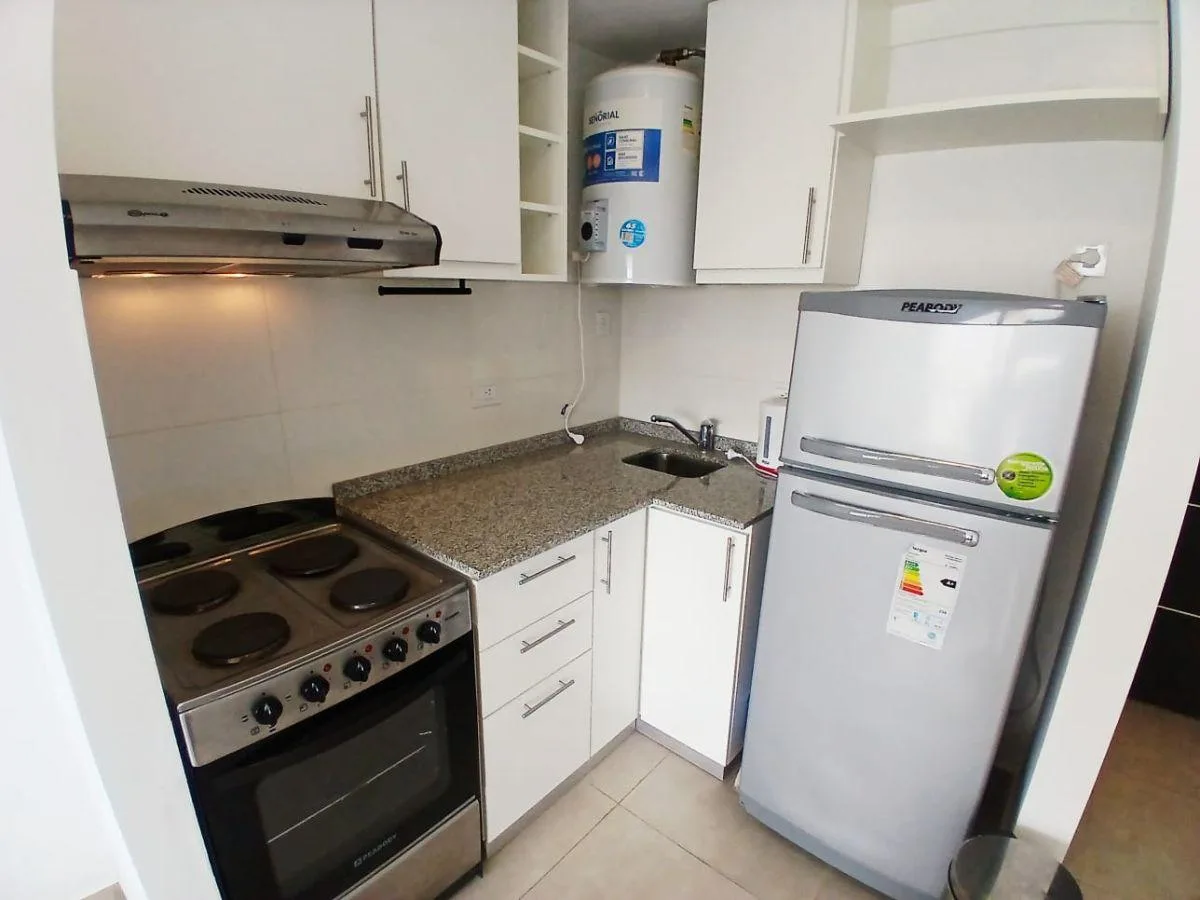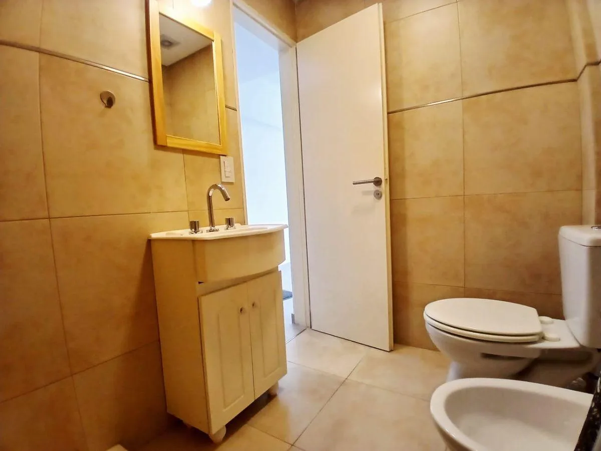 Departamento monoambiente en alquiler en Tres de Febrero, con cocina integrada y baño completo. Tiene balcón, aire acondicionado frío calor y cocina eléctrica de 4 hornallas con horno. El edificio cuenta con SUM. Contrato por 2 años con aumento cada 3 meses por IPC; valor inicial $450.000 y depósito U$S 400.