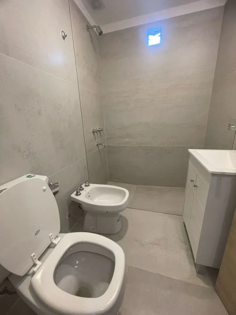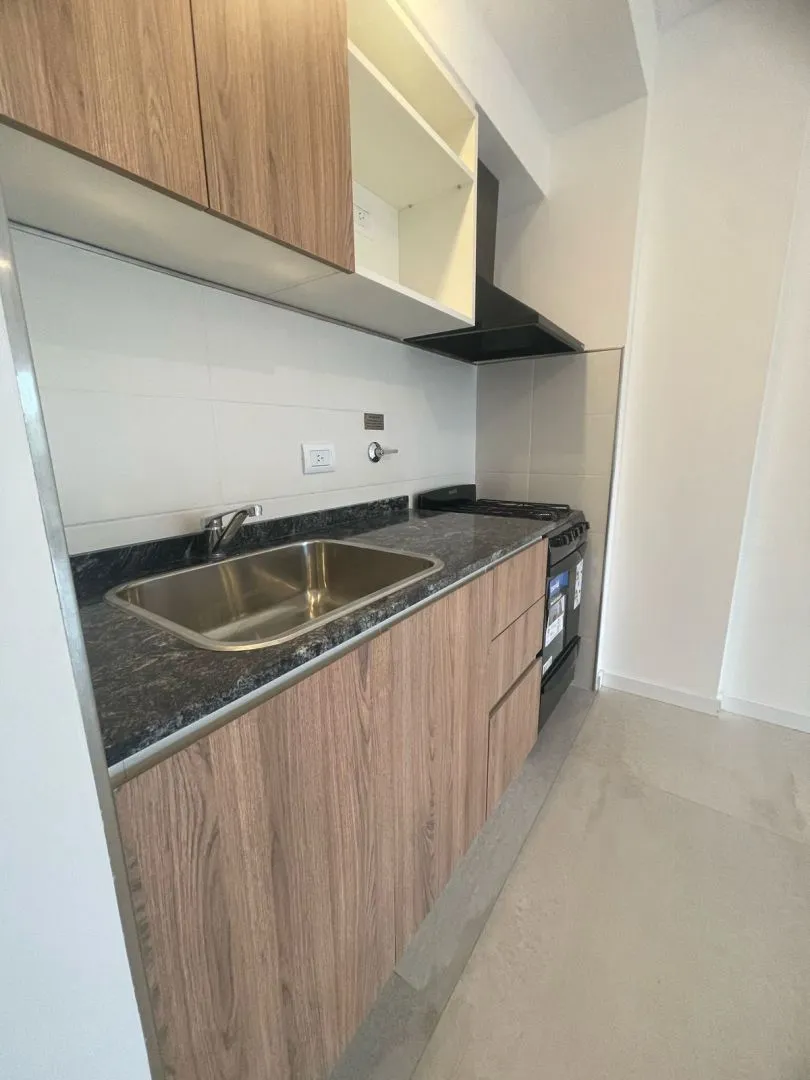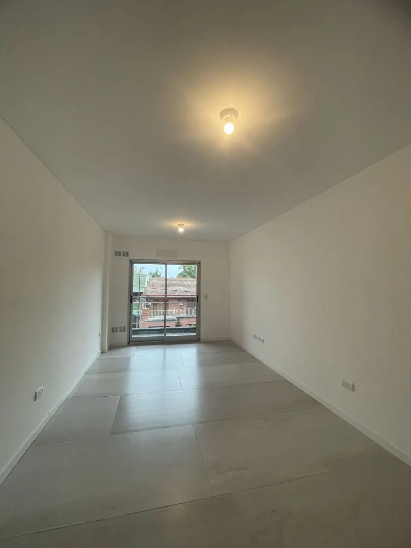 Departamento a estrenar en Caseros, monoambiente, con SUM, parrilla y jacuzzi. Cuenta con cocina completa con alacena y bajo mesada, termo eléctrico, baño completo con ducha y balcón al frente. El alquiler no admite mascotas e incluye cámaras de seguridad y portero con lector QR; el ajuste es trimestral según IPC más tasa municipal, con expensas y seguro a cargo del inquilino.