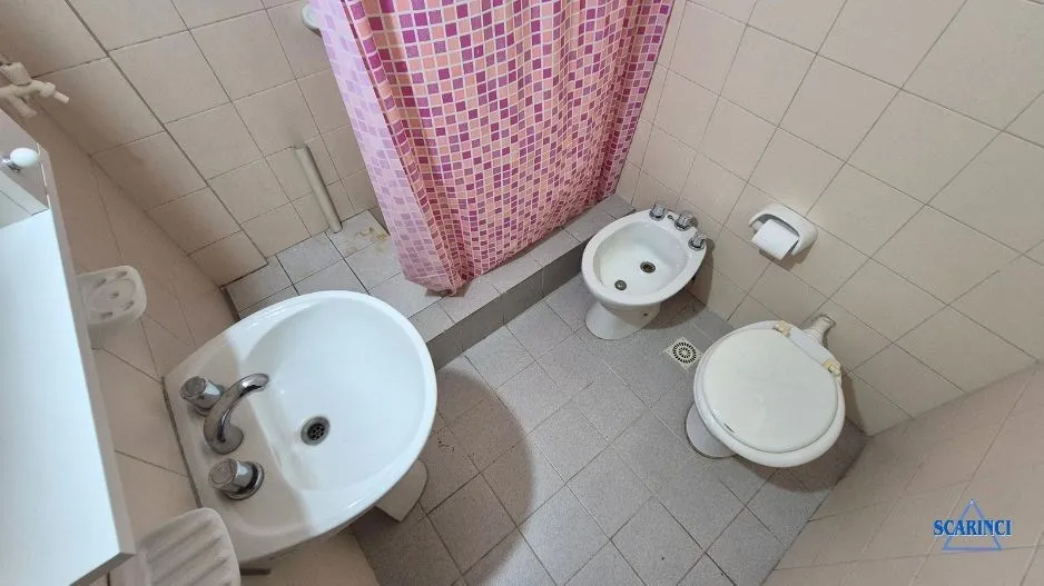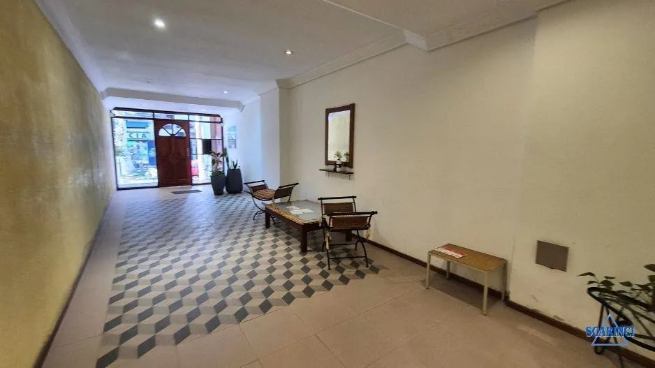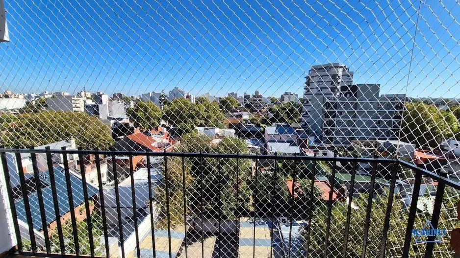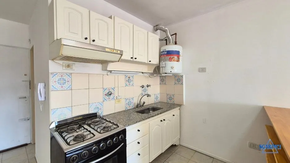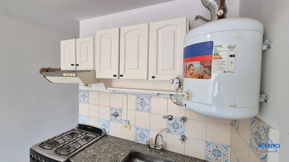 Monoambiente de 34 m² totales, 30 m² cubiertos, en un 6º piso al contrafrente con orientación noroeste, en Sáenz Peña, Tres de Febrero. Cuenta con balcón con red de seguridad y piso de cerámica. La cocina integrada incluye termotanque a gas y artefacto de cocina a gas, con alacena y bajo mesada. Tiene baño completo con ducha y terraza de uso común; antigüedad de 20 años.