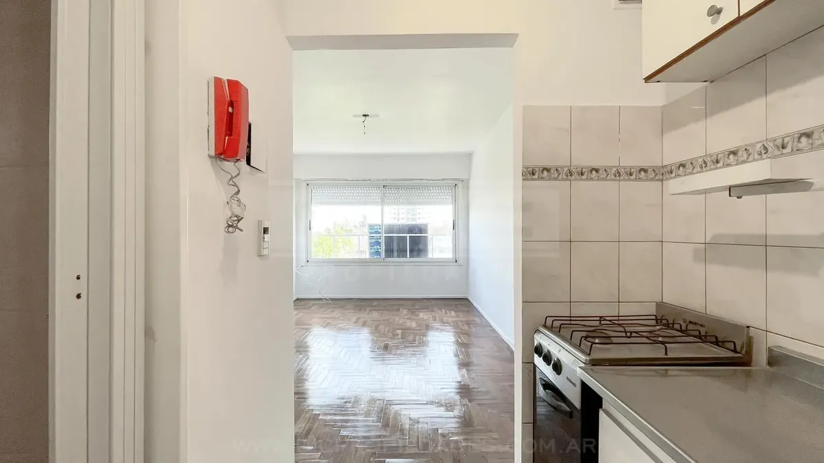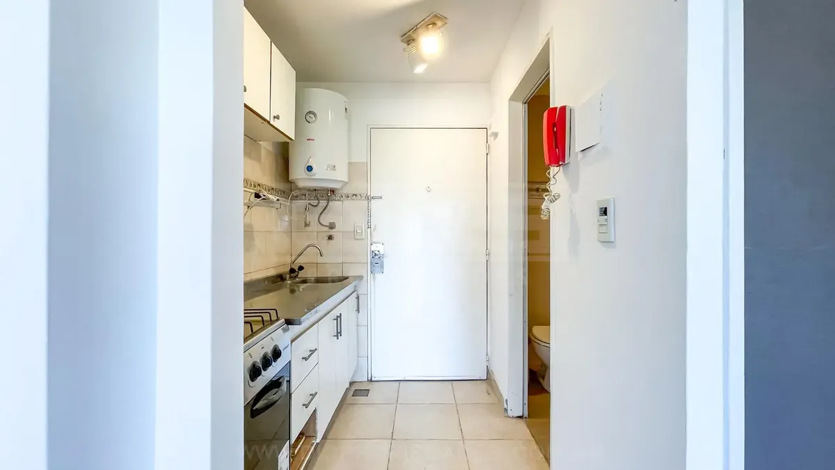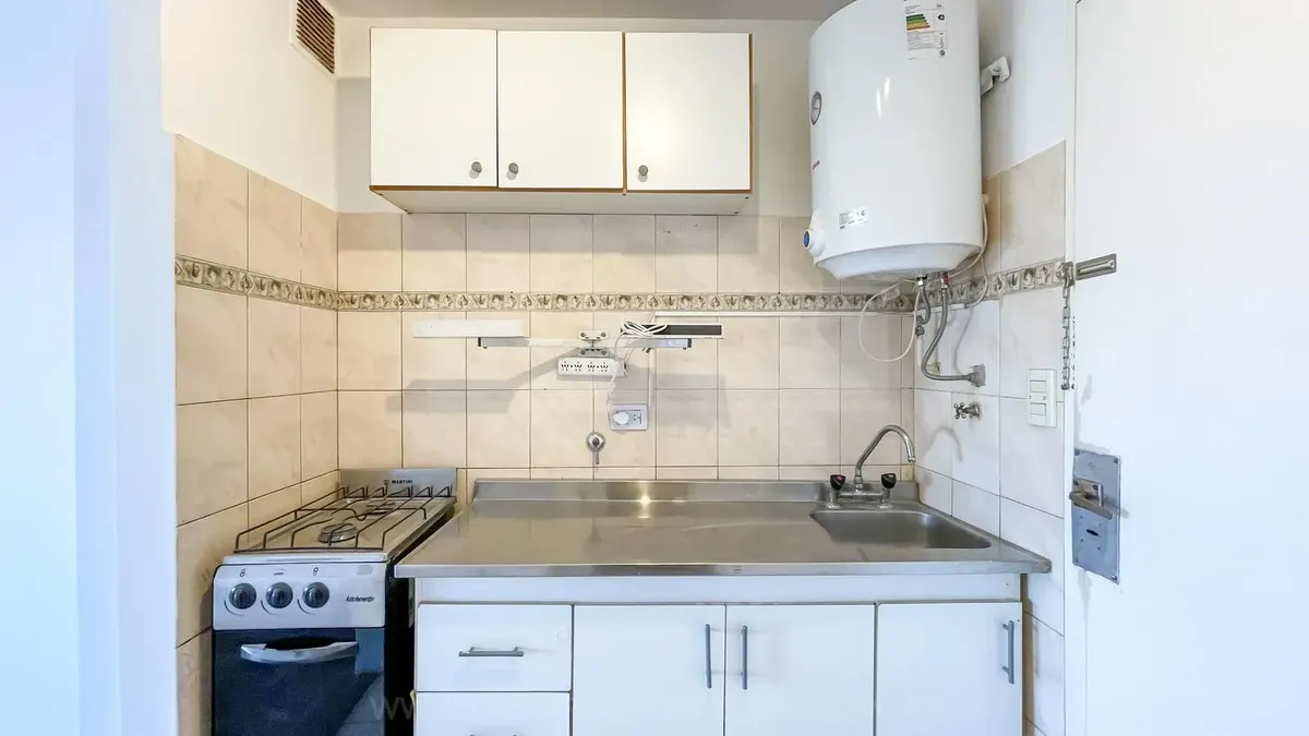 Departamento monoambiente al contrafrente, en piso alto. Cocina con muebles completos y termo eléctrico, con artefactos de cocina nuevos. Cuenta con ventanal de piso a techo con DUH y persiana. No apto mascotas.