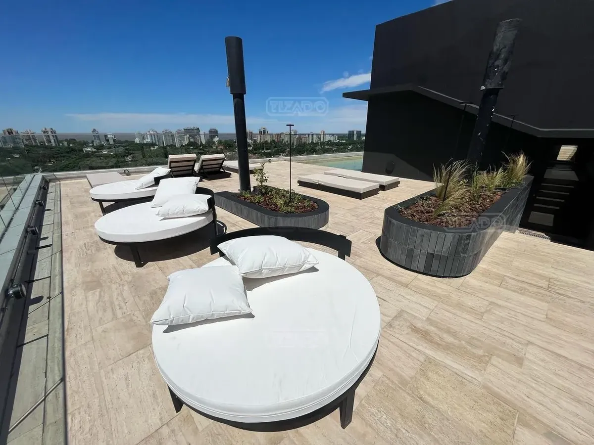 Departamento de monoambiente con entrega inmediata y vista panorámica al este, en Domus Parque, Vicente López. Cuenta con baño completo con bañera y mampara, cocina con muebles a medida (altos y bajos) y Spar, placares con frentes e interiores completos y preinstalación para A/A split. El edificio ofrece parque privado de 3.000 m², seguridad 24 h, estacionamiento, doble SUM, pileta descubierta y pileta climatizada, terraza con parrilla, gimnasio y laundry; la cochera cubierta es una posibilidad