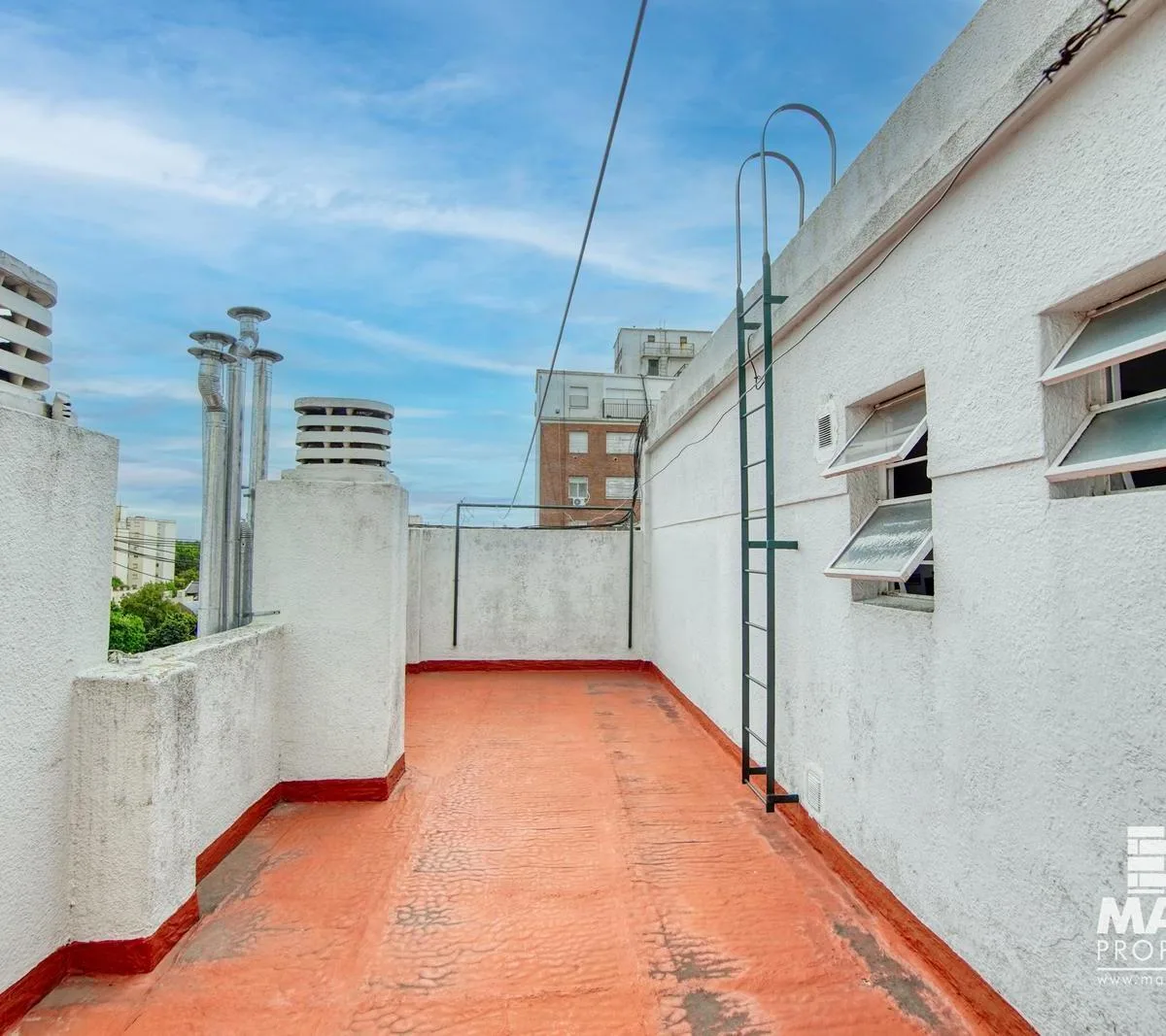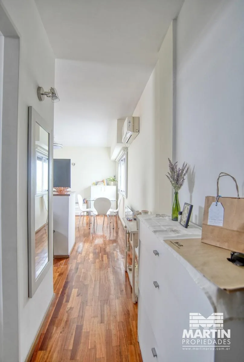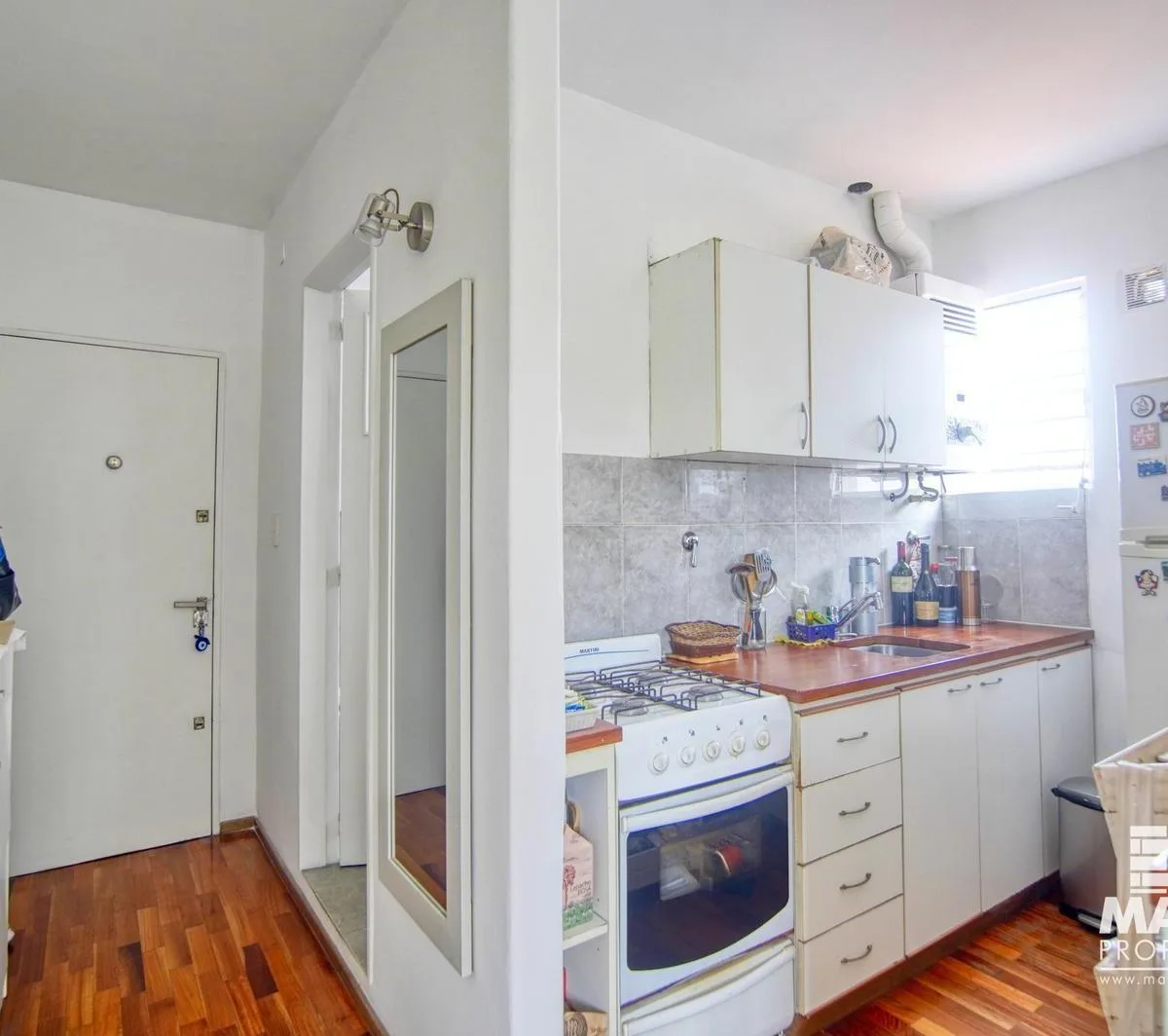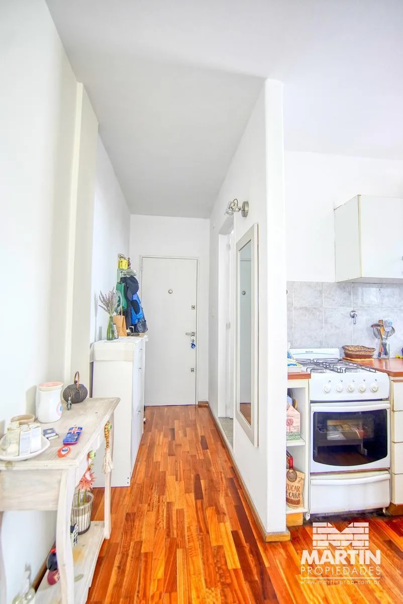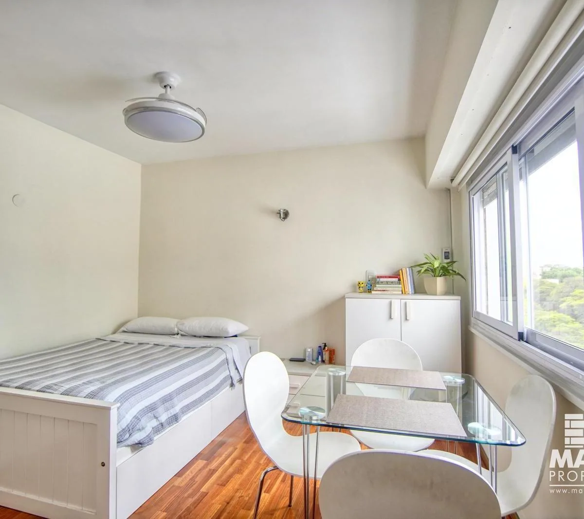 Departamento de 1 ambiente de 25 m², frente a la quinta presidencial, en Olivos. Incluye cocina integrada con barra desayunadora, baño completo y terraza en común. Indica expensas bajas con ajuste trimestral por IPC desde abril de 2026 y contrato a partir del 01/05/2026. Medidas aproximadas y a título informativo.