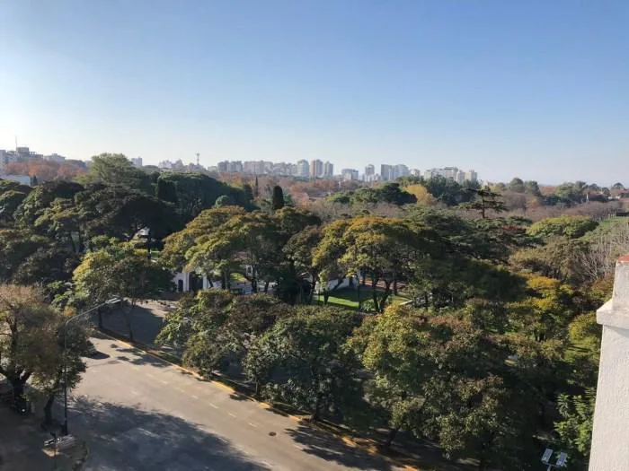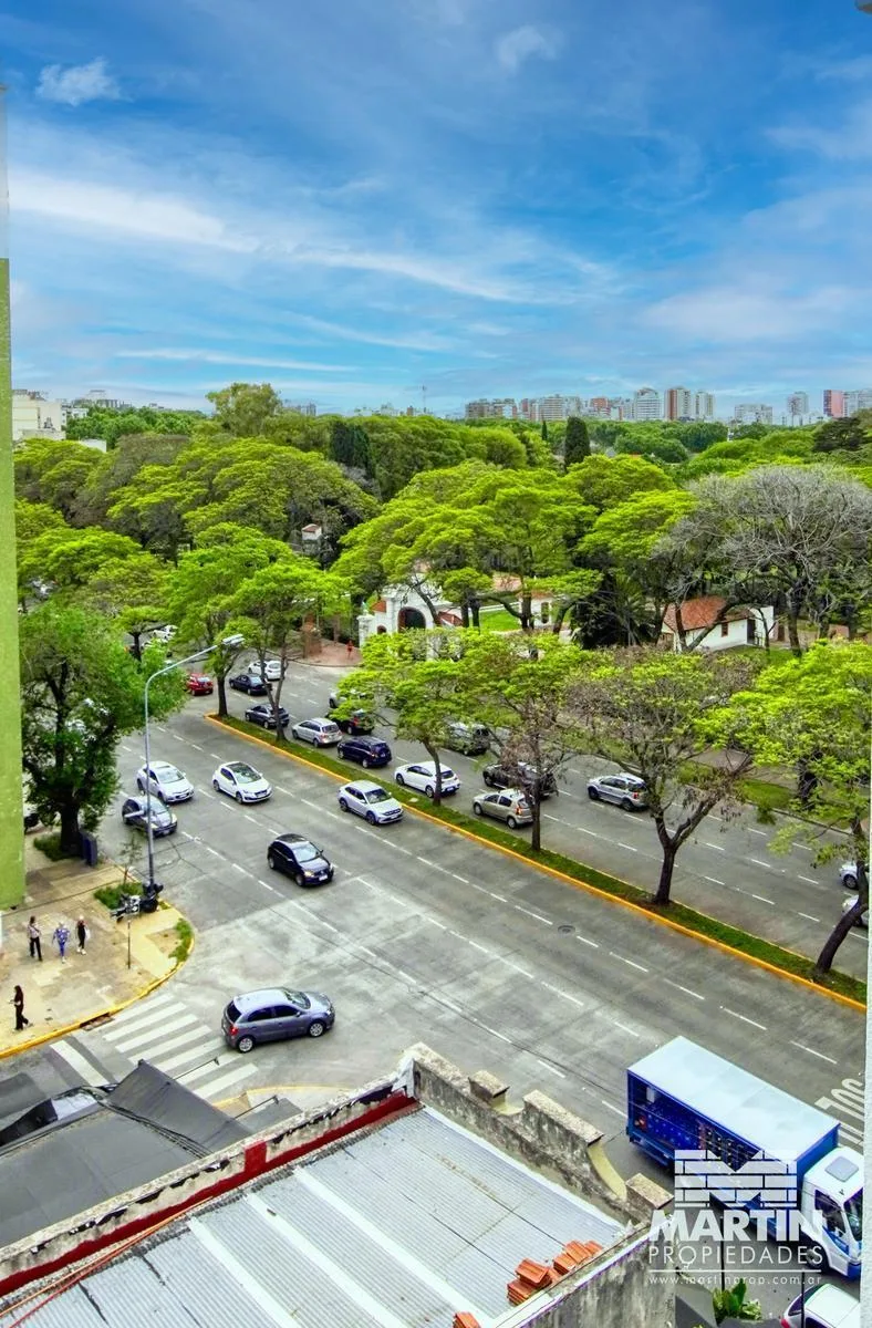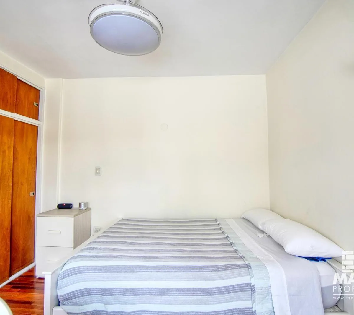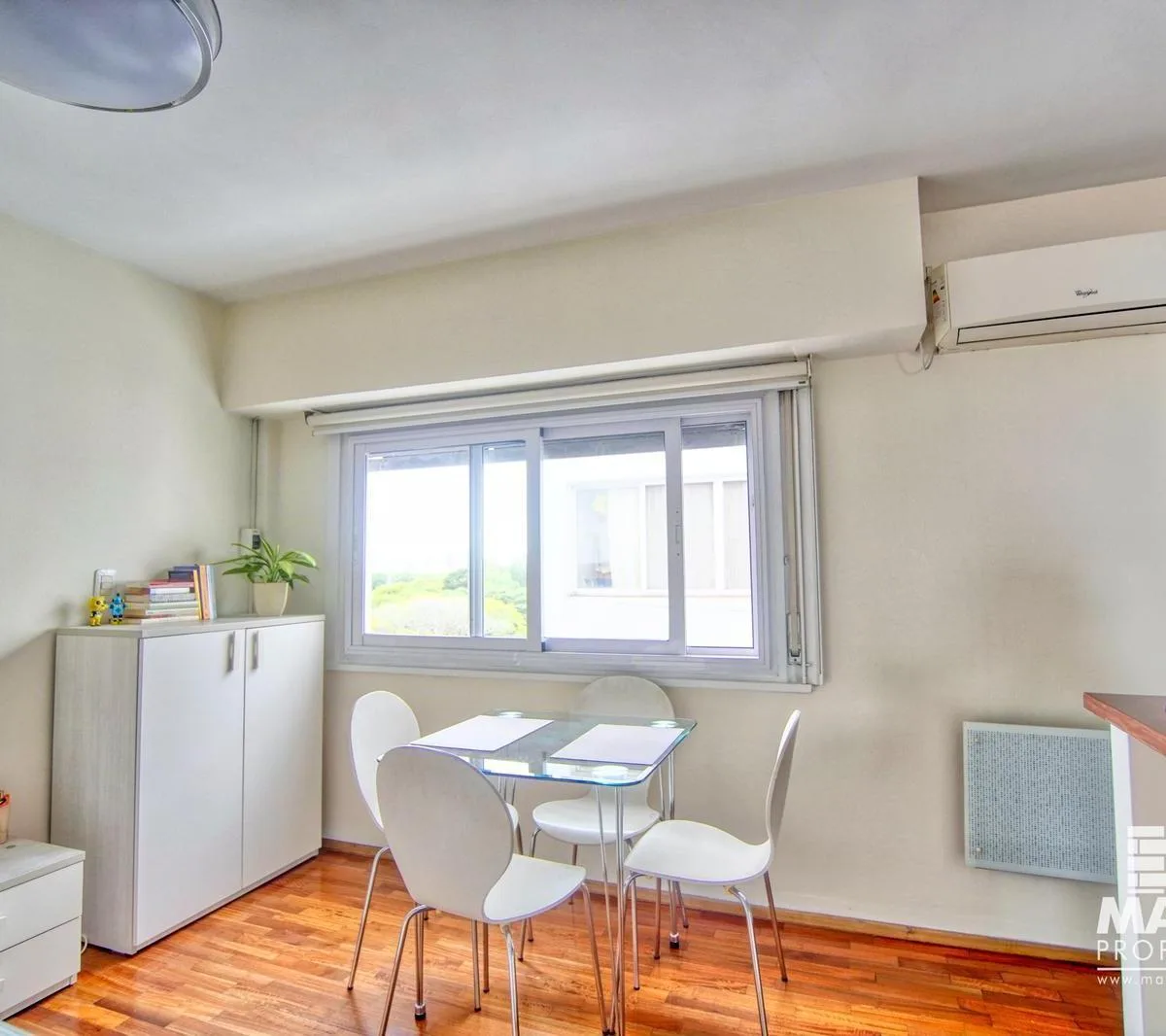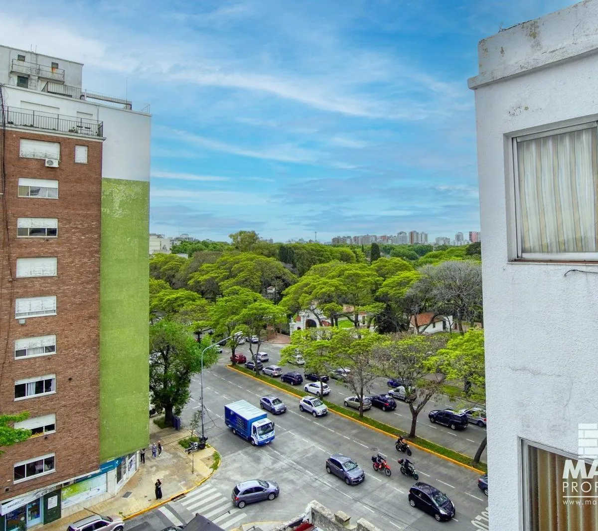 Departamento de 1 ambiente de 25 m², frente a la quinta presidencial, en Olivos. Incluye cocina integrada con barra desayunadora, baño completo y terraza en común. Indica expensas bajas con ajuste trimestral por IPC desde abril de 2026 y contrato a partir del 01/05/2026. Medidas aproximadas y a título informativo.