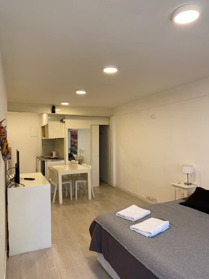 Studio para 2 personas dentro de un espacio de galería de arte. El alojamiento incluye cocina y baño para uso exclusivo. En planta baja funciona una galería con exposiciones y en el primer piso hay un taller vinculado a la creación de obras con materiales reciclados.